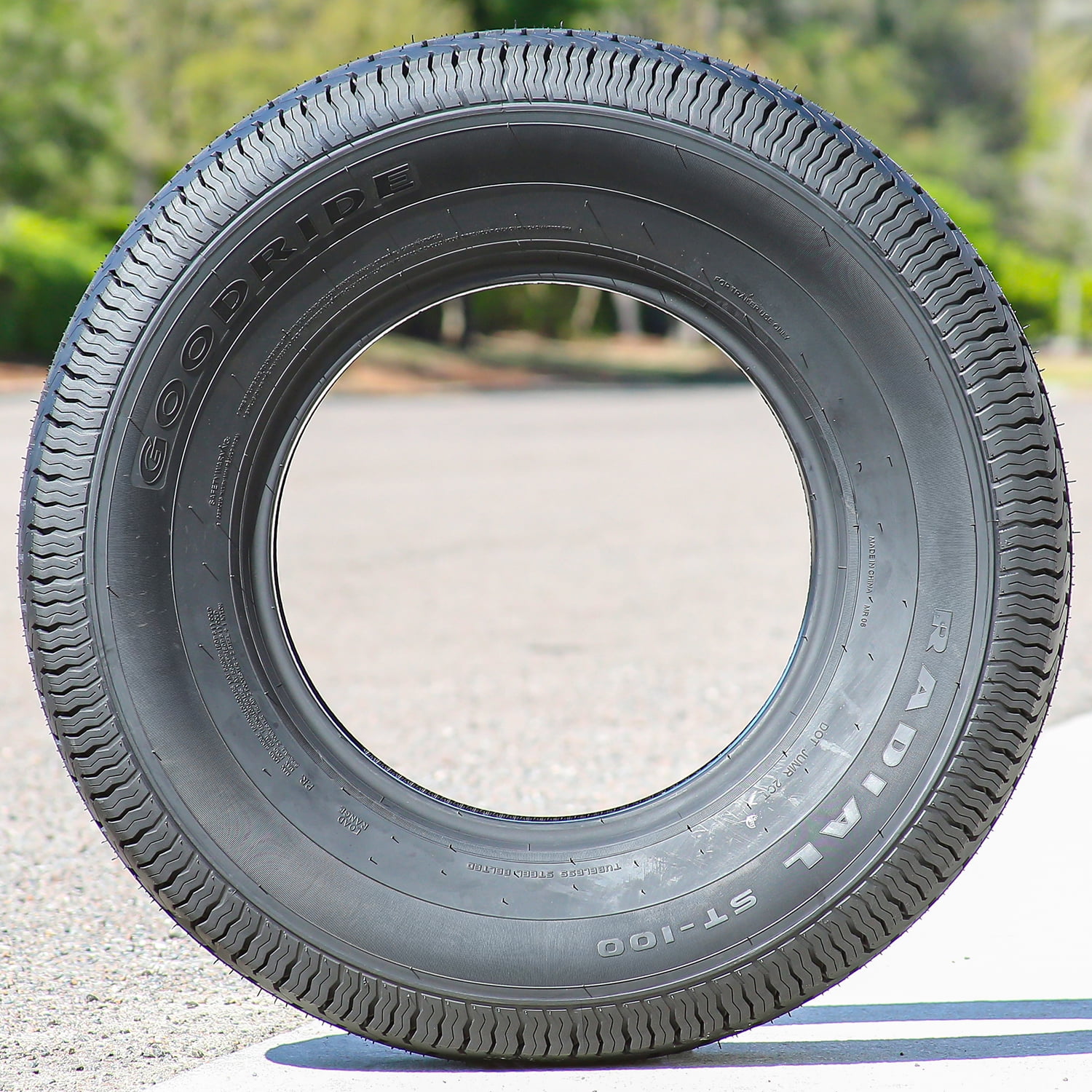 Goodride ST100 FEATURES AND BENEFITS Fuel efficient performance Longer lasting tread life Enhanced controllability Upgraded load durability OVERVIEW The Goodride ST100 is a highway terrain, all season tire manufactured for trailers. This tire is NOT MEANT TO BE MOUNTED ON LIGHT TRUCKS, as its construction will not support the weight and performing style of such vehicles. It can ONLY BE MOUNTED ON TRAILERS. The tire utilizes its all season traction to ease the pressure off the tire. As a result, the tire is able to greatly reduce the rolling resistance – which is the pressure regulating the towing vehicle’s necessary fuel intake. Lowering the rolling resistance, lessening the towing vehicle’s fuel consumption and CO2 emission levels. This promotes a fuel efficient and environmentally friendly driving experience. The stronger internal structure, the durable compound, and the ribbed tread design upgrade the usability. The reinforced steel belt structure and the symmetric ribbed pattern work together to prevent tread flexing. This allows the tire to evenly circulate the driving pressure across the tread area, avoiding irregular wear formations. The durable compound also slows the treadwear rate down with the wear-resistant elements. The slow and even wear boosts the tire’s overall tread life. The symmetric ribbed tread design with the continuous center rib ensures the surface contact. These tread elements allow the tire’s surface grip, improving the steering responsiveness and the driving stability. In other words, the tire is quick and precise in its response to the towing vehicle’s commands, while the structure is secured against the driving pressure. As a result, the tire is able to greatly upgrade the towing vehicle’s control over the trailer at all times. The ST100 boosts the load capacity as well. The reinforced full nylon cap structure maintains the ideal tire shape under the load and driving pressure. As the tire does not deform, it is able to securely carry and handle heavy loads. This upgrades the overall load durability, while also protecting the casing from external damage. The structure prevents punctures, cuts and impact damage from shortening the service life. Manufacturers recommend changing tires every 10 years. As long as tires are properly stored before they are sold, the year of their manufacture will not shorten their service life.