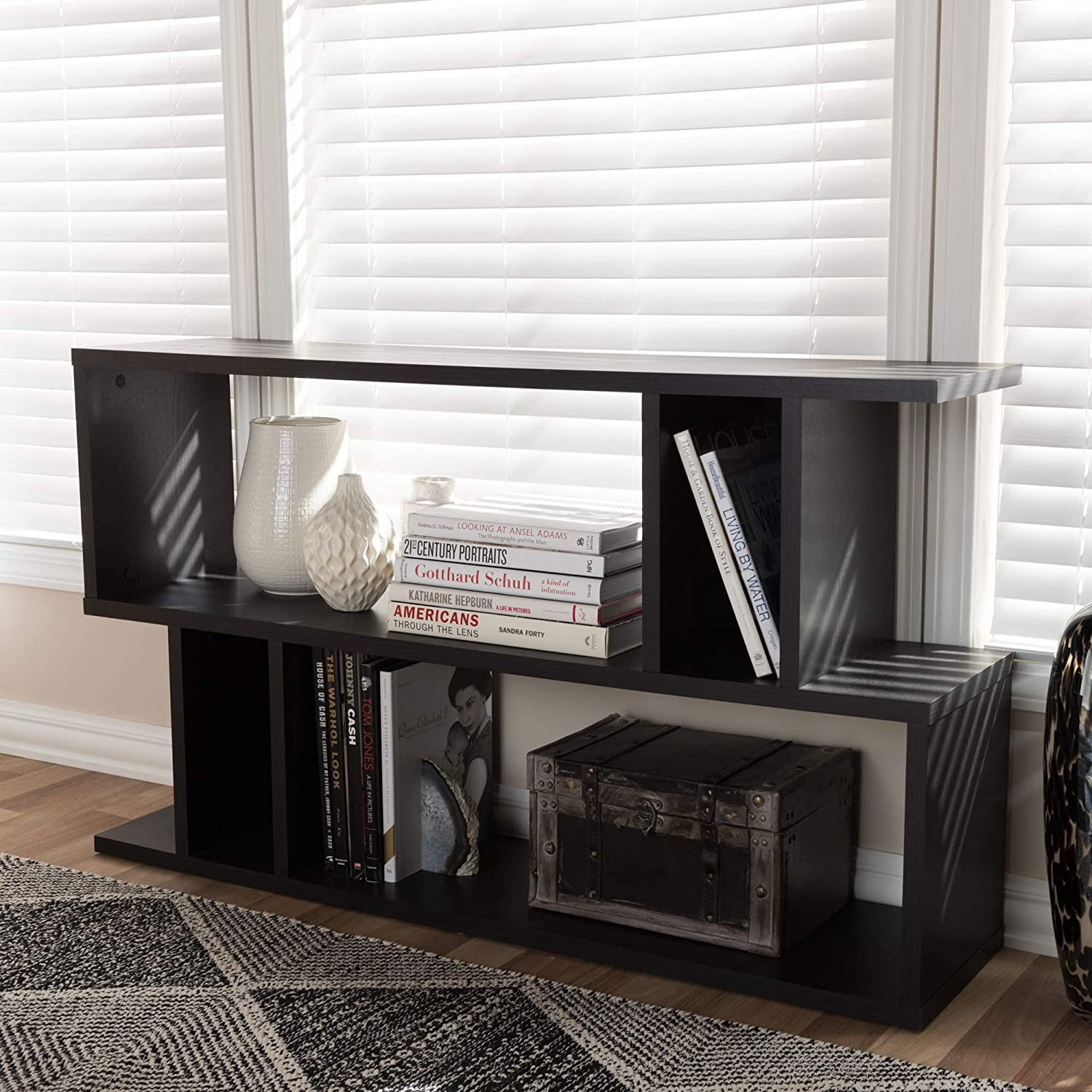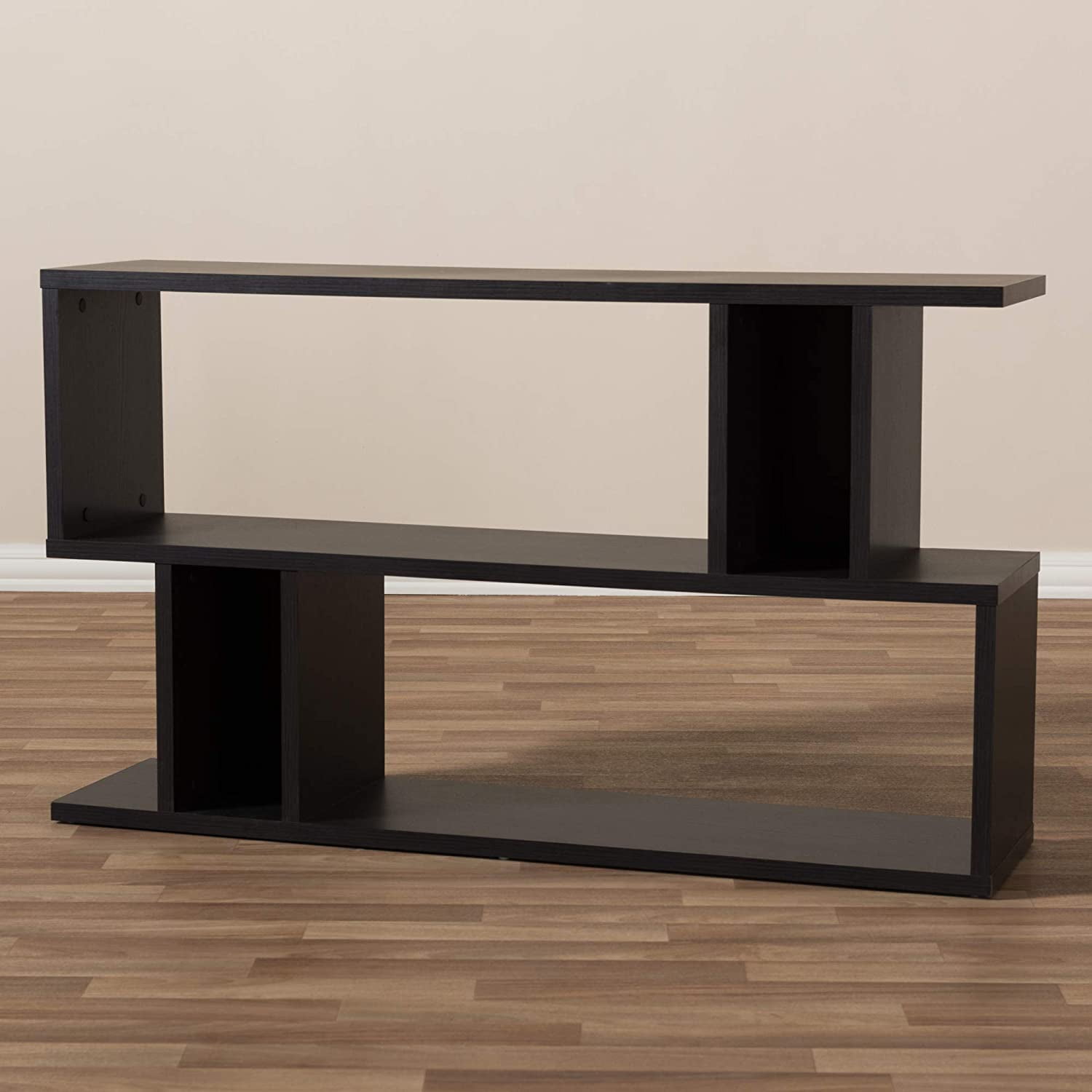 Clutter is a thing of the past where the Goodwin Modern Display Shelf is concerned. This 2-level Malaysian-crafted engineered wood contemporary bookshelf is fit to hold your prized collection of reading materials or decor within its dark brown faux(Espresso) wood grain veneered-shelves. A quick swipe of a dry cloth along the shelves will do the trick when it’s time to clean. The Goodwin Bookshelf is also available with 5 levels of shelving (sold separately). Features: Finish: espresso Made of engineered wood and faux wood grain paper veneer Modern style Product Weight: 33lbs Specifications: Product Dimensions: 27.5″ H x 47.5″ W x 11.4″ D