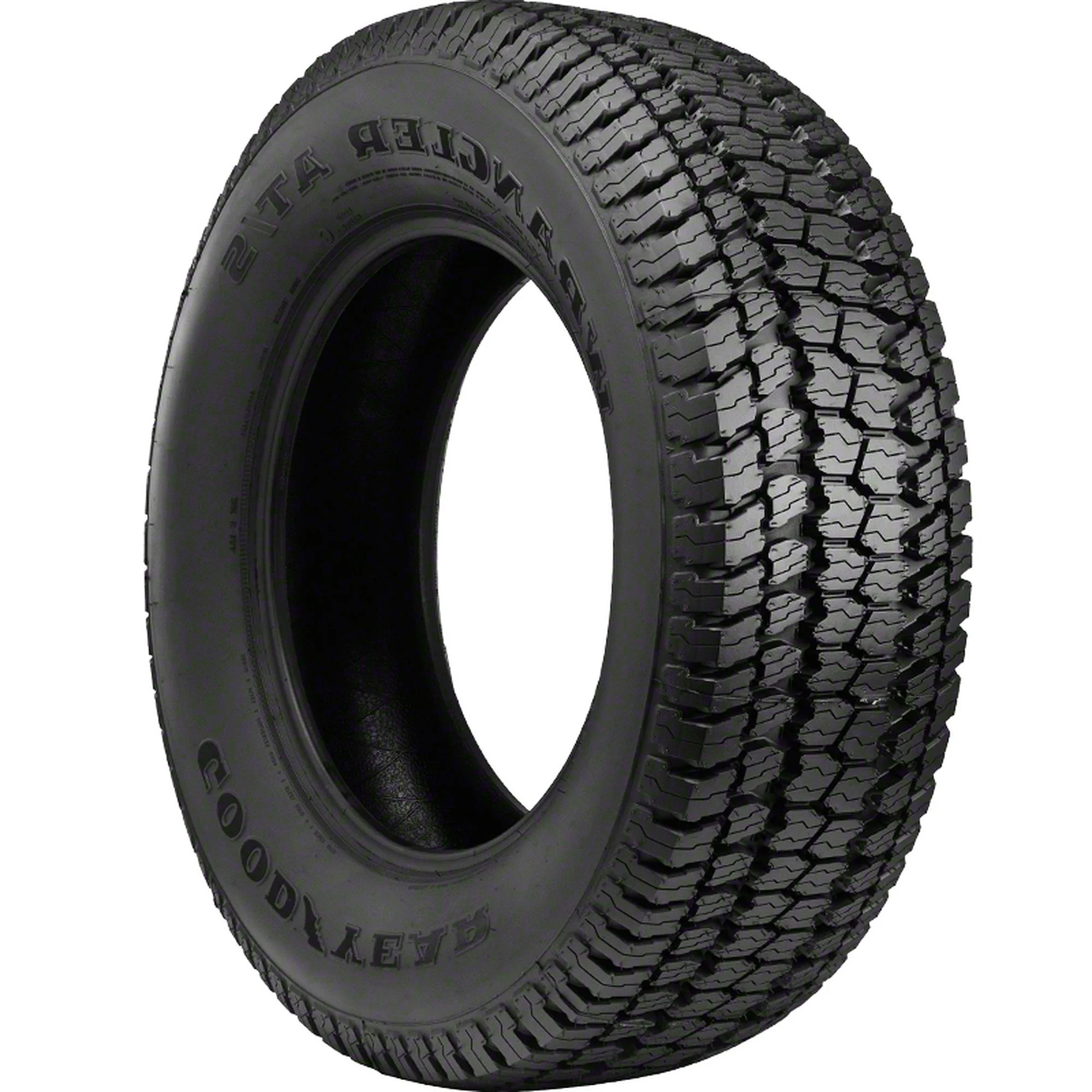 The Goodyear Wrangler AT/S is commonly found on today’s popular trucks and SUV’s ranging from GMC, Chevrolet, and many other manufacturers, also available as a replacement tire. The AT/S is designed for on and off-road traction and handling with a much longer tread life. This tire is also available in sizes ranging from 15-20 inches and load ranges up to E-10ply for heavier loads. The Wrangler AT/S features a tough All-Season All-Terrain tread compound that combines a computer-optimized symmetric tread design with enhanced traction on road or in rough off-road terrains. The tire also has over 7500 biting edges that aid in increasing traction in wet or snow-covered roads. Two high-tensile steel belts combined with a polyester cord body increases strength and durability at all speeds.