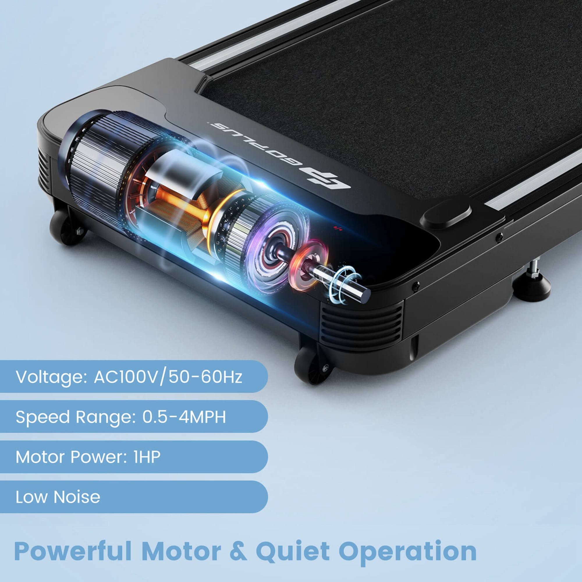 Our new electric walking treadmill is a great way to exercise and relax. It can help you improve cardiovascular health, burn fat and regulate lower body muscles. Therefore, whether you want to exercise or maintain your body shape, this walking treadmill is an ideal choice. Equipped with an LED display, you can visually see the time, speed, distance and calories burned. And the 6.5” thickness can help you save space, and the widened running belt can meet your needs. In, addition, the lightweight design and two flexible wheels allow you to move it to any desired location. For those people who don’t have time to go to the gym, it is a great choice. Come on, choose it and you will have a healthy lifestyle! Feature Heavy-duty construction allows it to withstand 220 lbs of weight 41” x 17” walking area provides you a more comfortable sports experience Available in 0.5-4 MPH speed levels and P01-P12 program Compact size makes it easy to store in any ideal place Lightweight design and flexible wheels make it easy to move Touchable LCD display for better watching and operating experience Rubber feet and columns effectively reduce noise and vibration and protect floor Wireless remote control with 15m effective distance is easy to operate Emergency brake button guarantees user safety LED Display Screen: Time/Speed/ Distance/Calories Help to improve your cardiovascular fitness, boost your health, and burn fat Suitable for office crowds and people who need to exercise Specification Color: Black Material: Steel + ABS Product Dimensions: 51.5” x 23.5” x 6” (L x W x H) Walking Belt Size: 41” x 17” (L x W) Motor: 1HP Adjustable Speed: 0.5-4MPH Weight capacity: 220LBS Product Weight: 55.5LBS Voltage: AC110V, 50/60Hz Mode: Manual Mode, Auto Mode Function: Distance/Speed/Time/Calorie/Wireless Remote-Control Package include: 1 x Electric Walking Treadmill 1 x Wireless Remote 1 x Silicone Oil 1 x Wrench 1 x Instruction