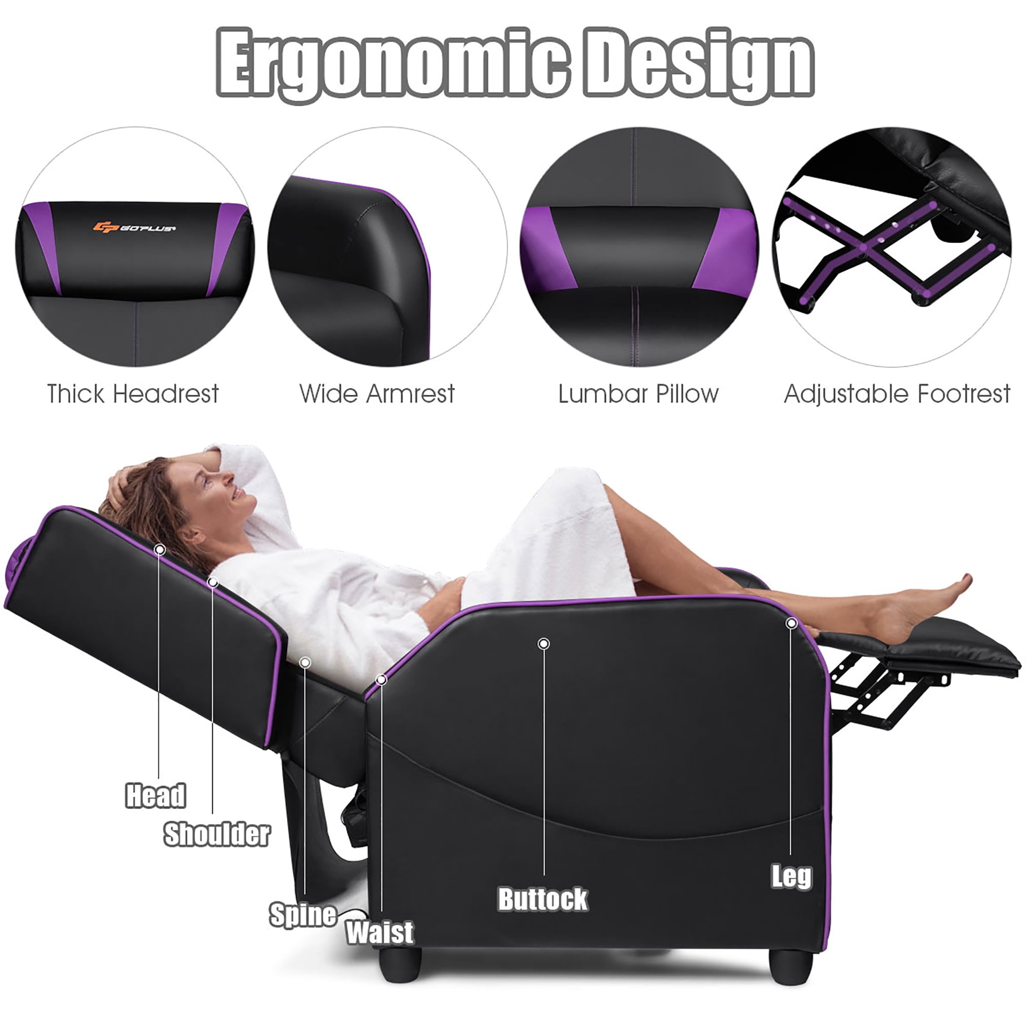 Goplus Massage Gaming Recliner Chair Single Living Room Sofa Home Theater Seat Purple