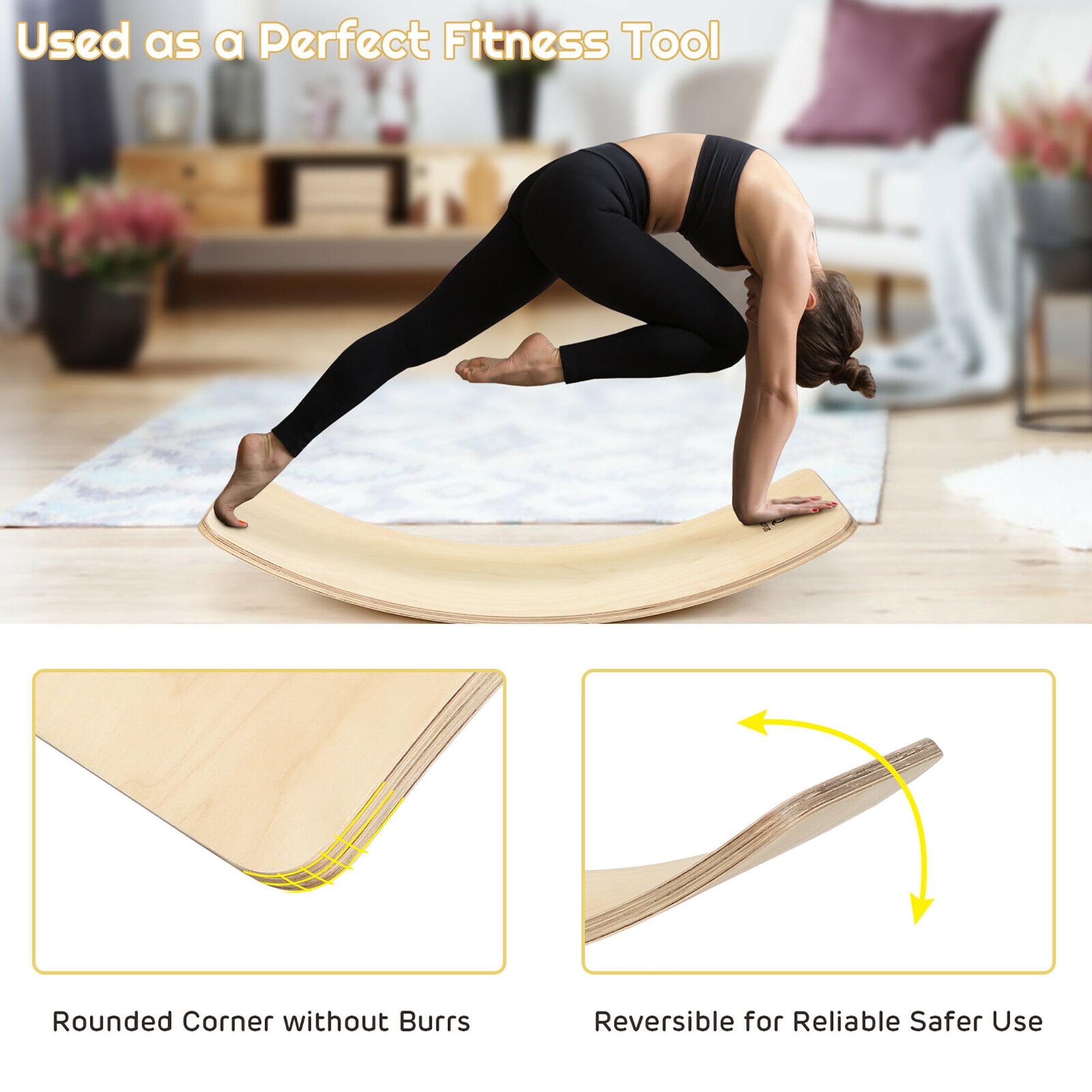 Goplus Wooden Wobble Balance Board Kids 35” Rocker Yoga Curvy Board Toy w/Felt Layer Natural