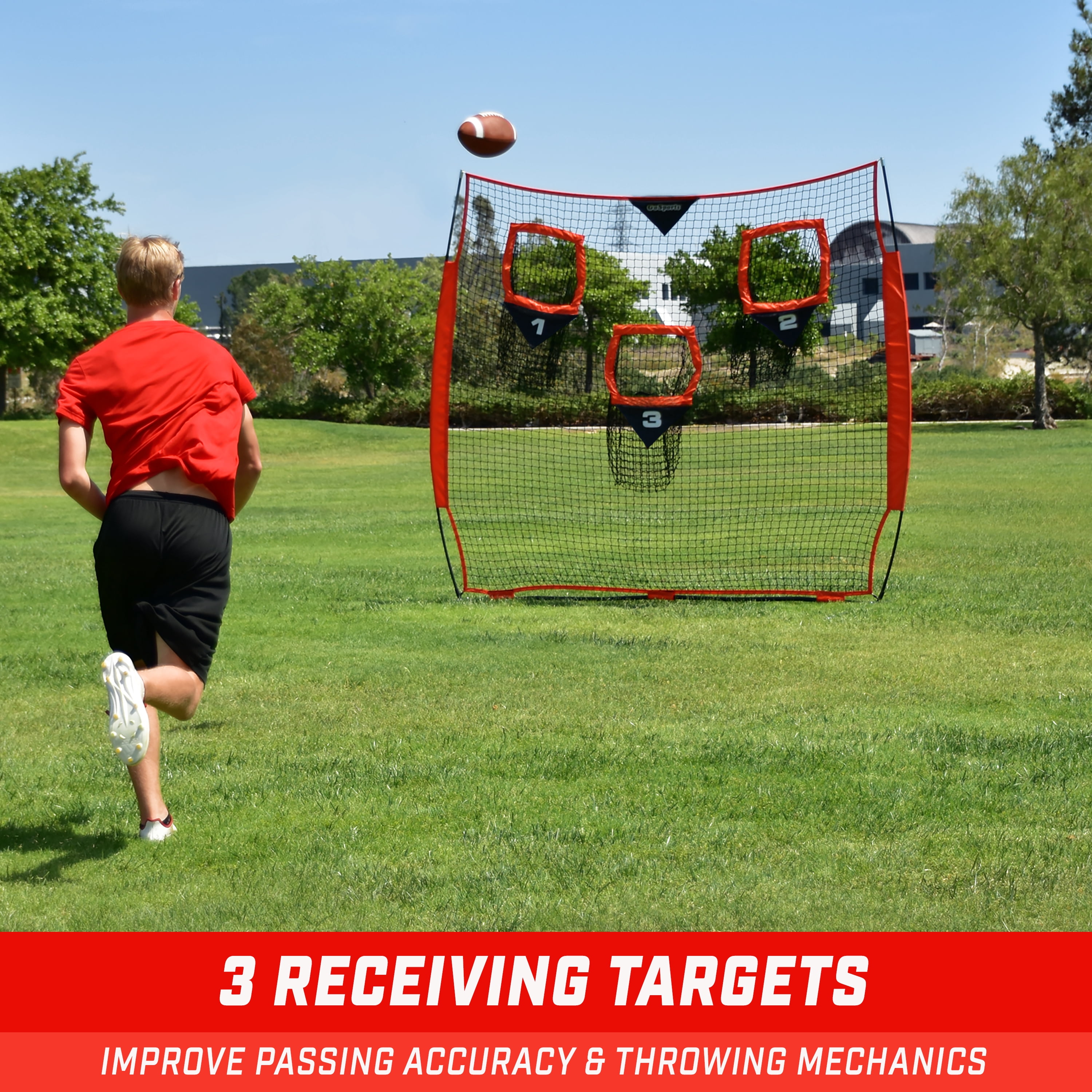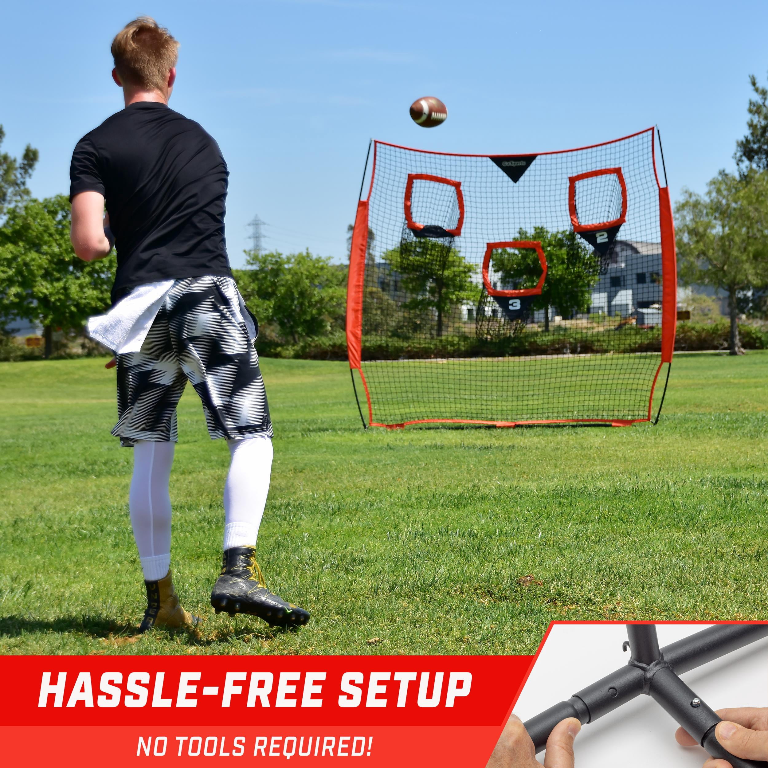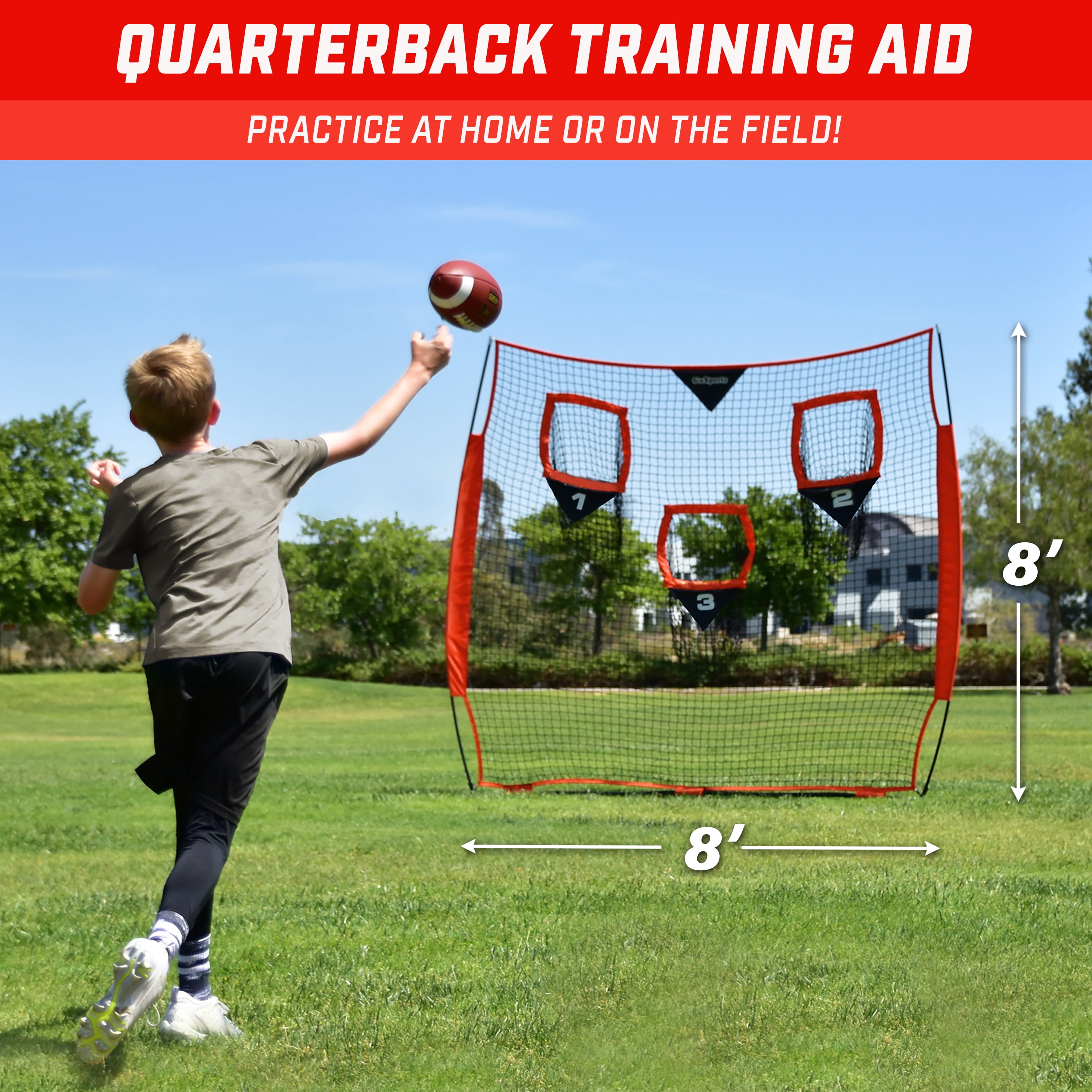 GoSports 8 x 8 ft Football Throwing Net – Red – Improve QB Throwing Accuracy
