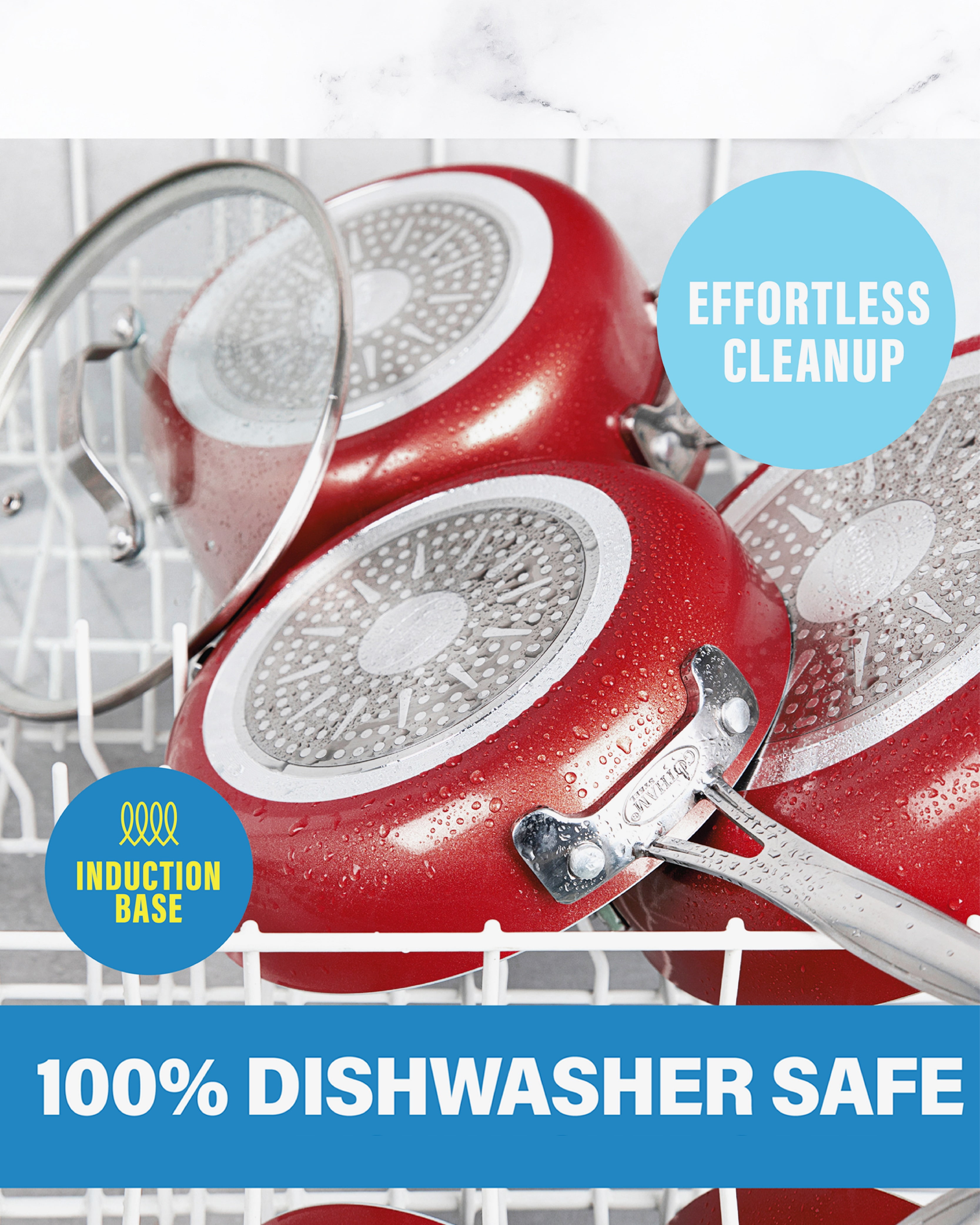 REVOLUTIONARY STACKABLE DESIGN: Save up to 50% more cabinet space with the innovative Stackmaster system. Each pot and pan nests perfectly into the next, eliminating clutter and maximizing storage in even the smallest kitchens. ULTRA NONSTICK COATING: Enjoy easy cooking and quick cleanup with this non stick cookware set. Food slides right off every pot and pan, making this the perfect non stick pan set for everyday use. CLEAN & HEALTHY COOKING: No oil or butter needed! This non stick pots and pans set promotes healthier meals and is free from harmful chemicals like lead, cadmium, and other forever chemicals for safe everyday cooking. BUILT TO LAST A LIFETIME: Crafted with a durable, scratch-resistant coating and reinforced construction, this non stick cookware set stands up to daily use without warping, peeling, or losing performance – truly the last pots and pans set you’ll ever need. ALL OVEN COMPATIBLE UP TO 500 DEGREES: Designed for every kitchen, this versatile non stick cookware set works on all stovetops including gas, electric, halogen, and induction. Oven safe up to 500°F, it’s built to handle any cooking method with ease.
