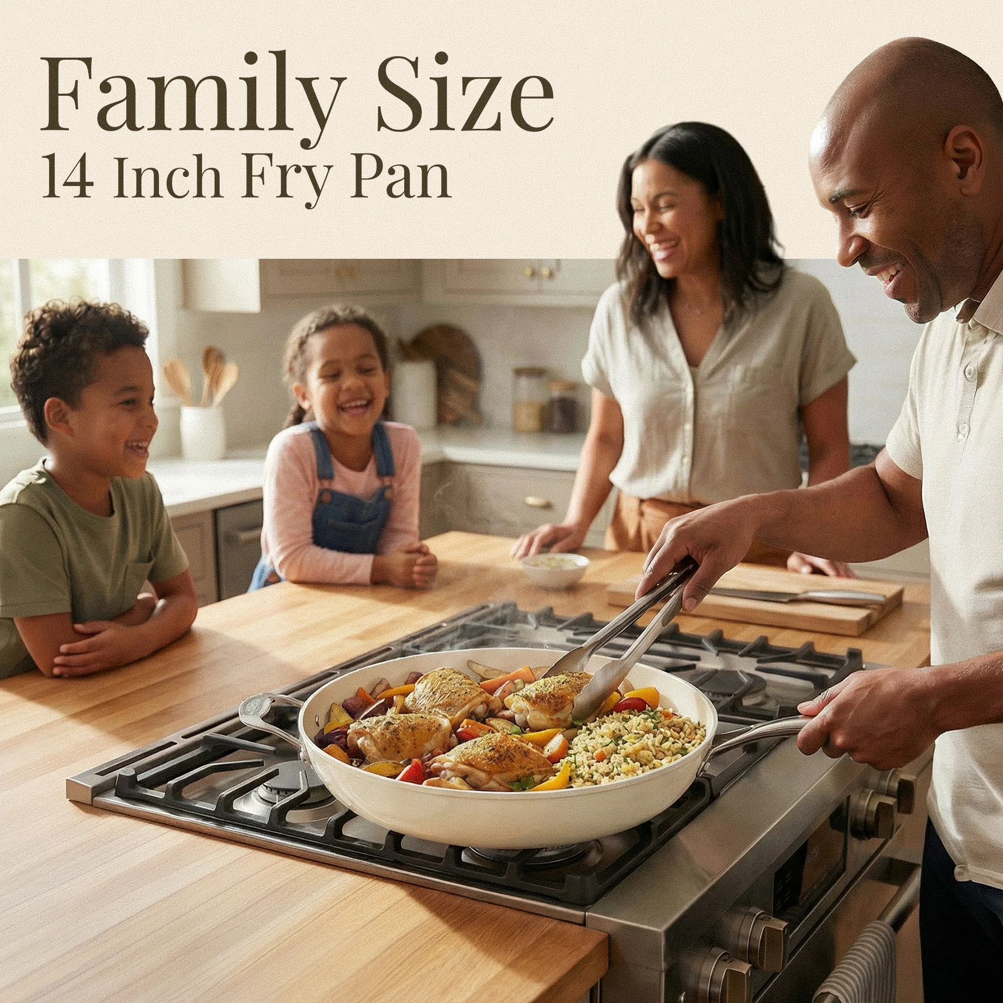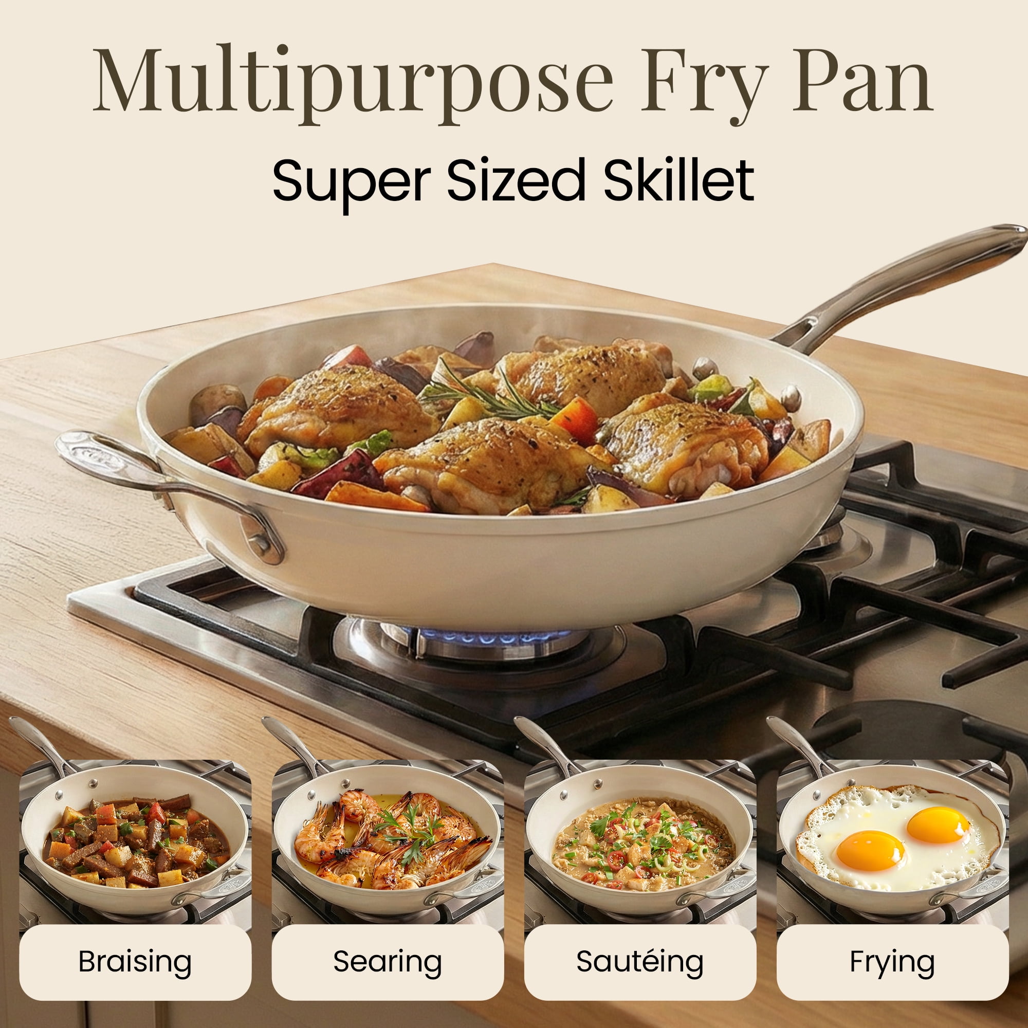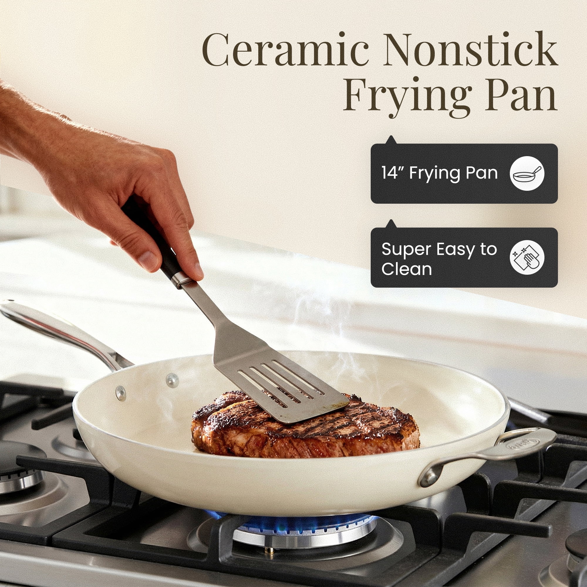 Gotham Steel 14 Inch Non Stick Frying Pans Large Nonstick Cooking Pan, Nonstick Skillet, Non Stick Pan, Ceramic Pan Dishwasher Safe, Cream White