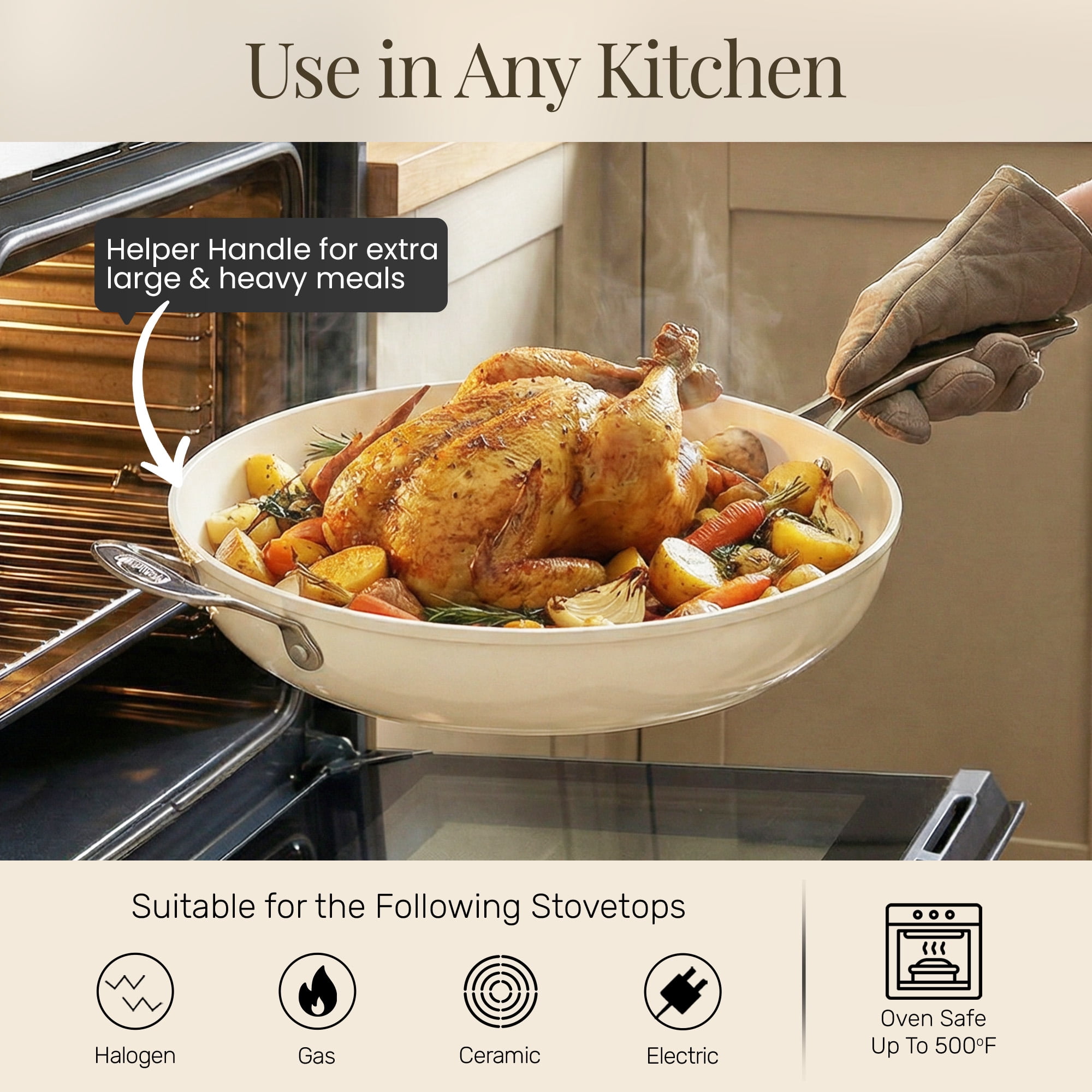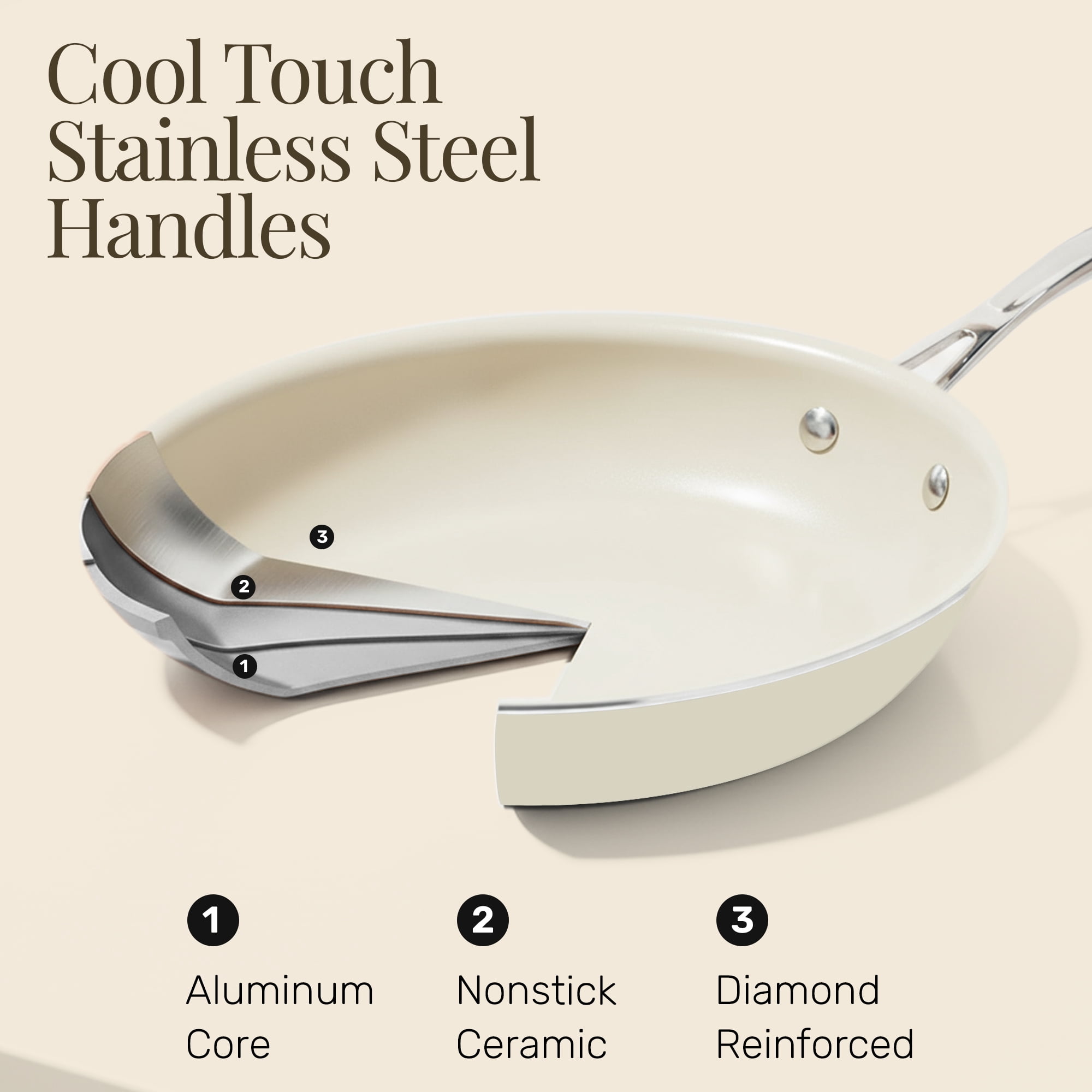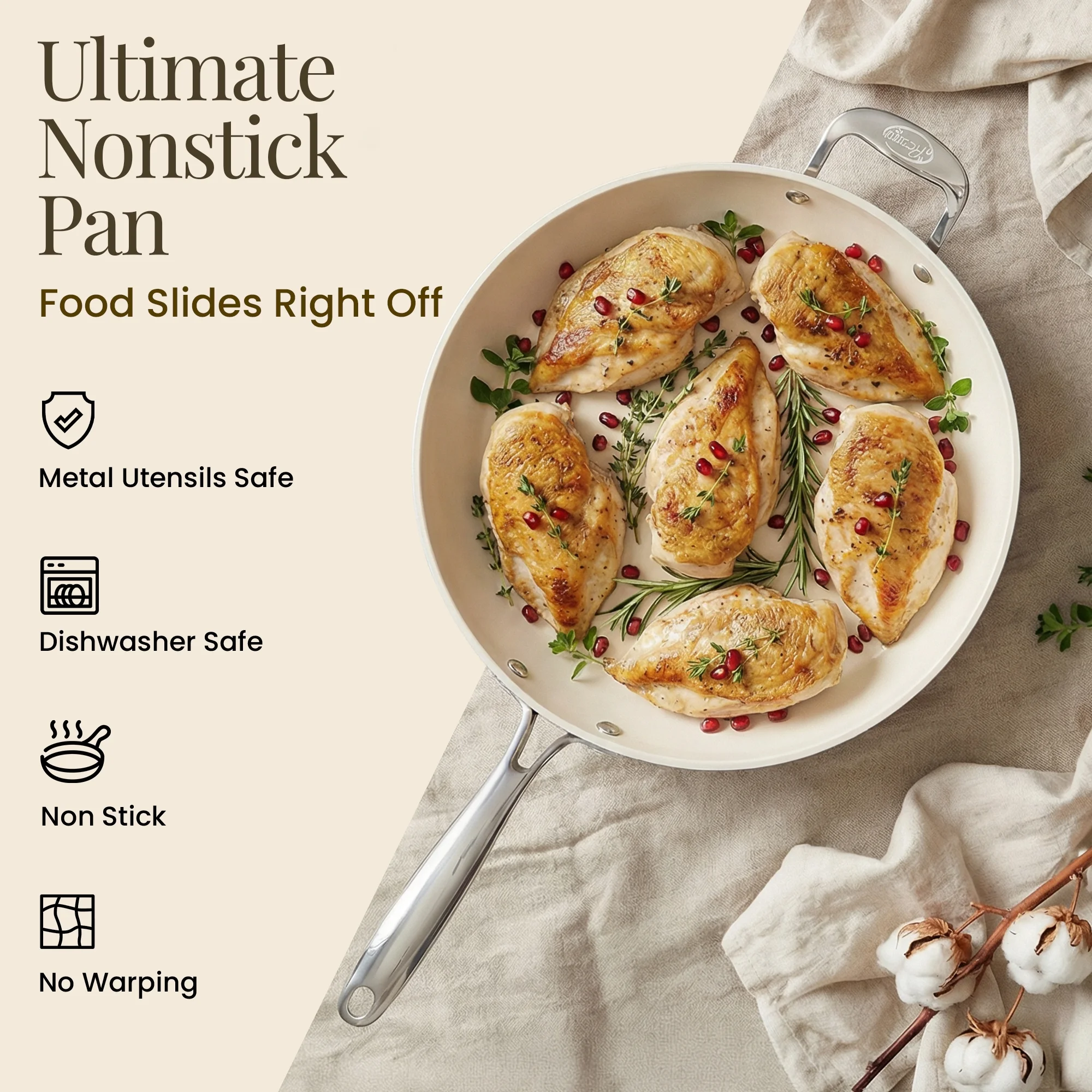 Gotham Steel 14 Inch Non Stick Frying Pans Large Nonstick Cooking Pan, Nonstick Skillet, Non Stick Pan, Ceramic Pan Dishwasher Safe, Cream White