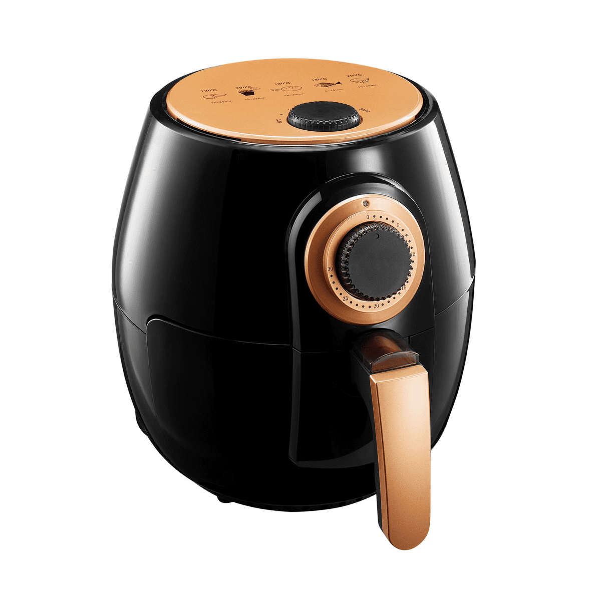 THE HEALTHY OPTION – Utilizing our rapid air technology which circulates hot air with speed and precision the Gotham Steel Air Fryer cooks food evenly – with little to no oil giving you delicious results with 75% less calories than traditional deep fryers. VERSATILE AND FAST– air fryer can cook a variety of dishes including: fries, chicken, steak, pork chops, hamburgers, drumsticks, spring rolls, cakes all with little to no oil – in minutes! SUPER EASY CLEANUP- detachable drawer and basket are coated with our nonstick Ti-Cerama copper coating so nothing sticks to the rack and are dishwasher safe – making cleanup a breeze. The basket also includes a safe release button to prevent the basket accidentally separating from the drawer. SIZE – 3.8 liter capacity can cook enough food for the entire family EASE OF USE– the built in timer and multiple heat presets take the guesswork out of cooking – with auto shutoff for a seamless experience. CUSTOMIZE YOUR MEAL – Adjustable heat/ temperature settings EASE OF USE – The built in timer and multiple heat presets take the guesswork out of cooking, with auto shutoff for a seamless experience