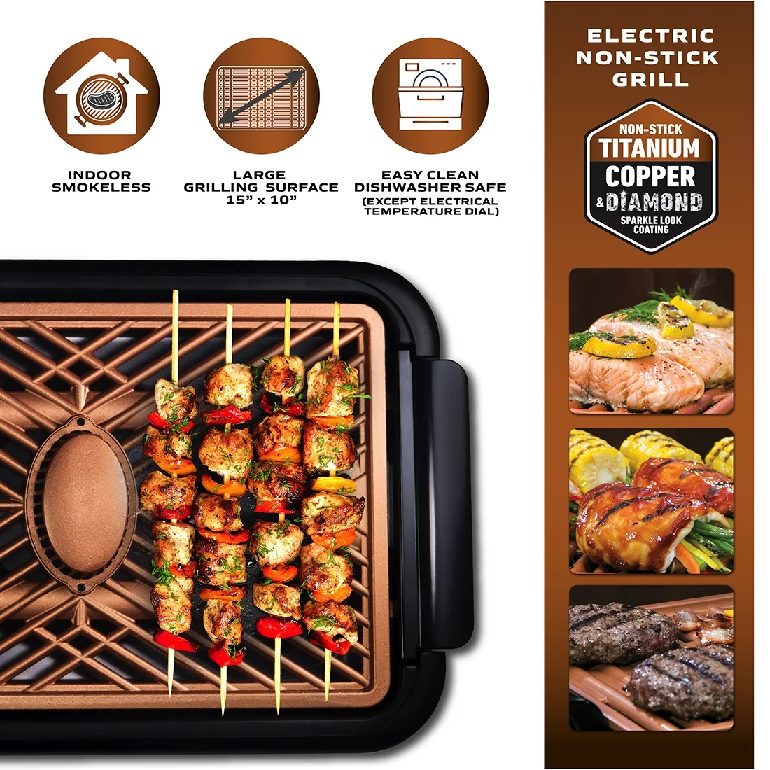 Gotham Steel Diamond Electric Indoor Grill Smokeless Nonstick Electric Grill, Ceramic for Steaks , Indoor Grill 15″ x 10″