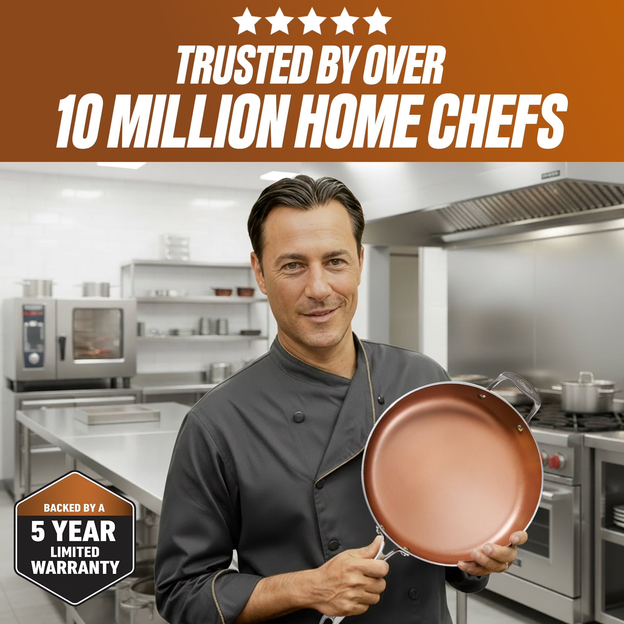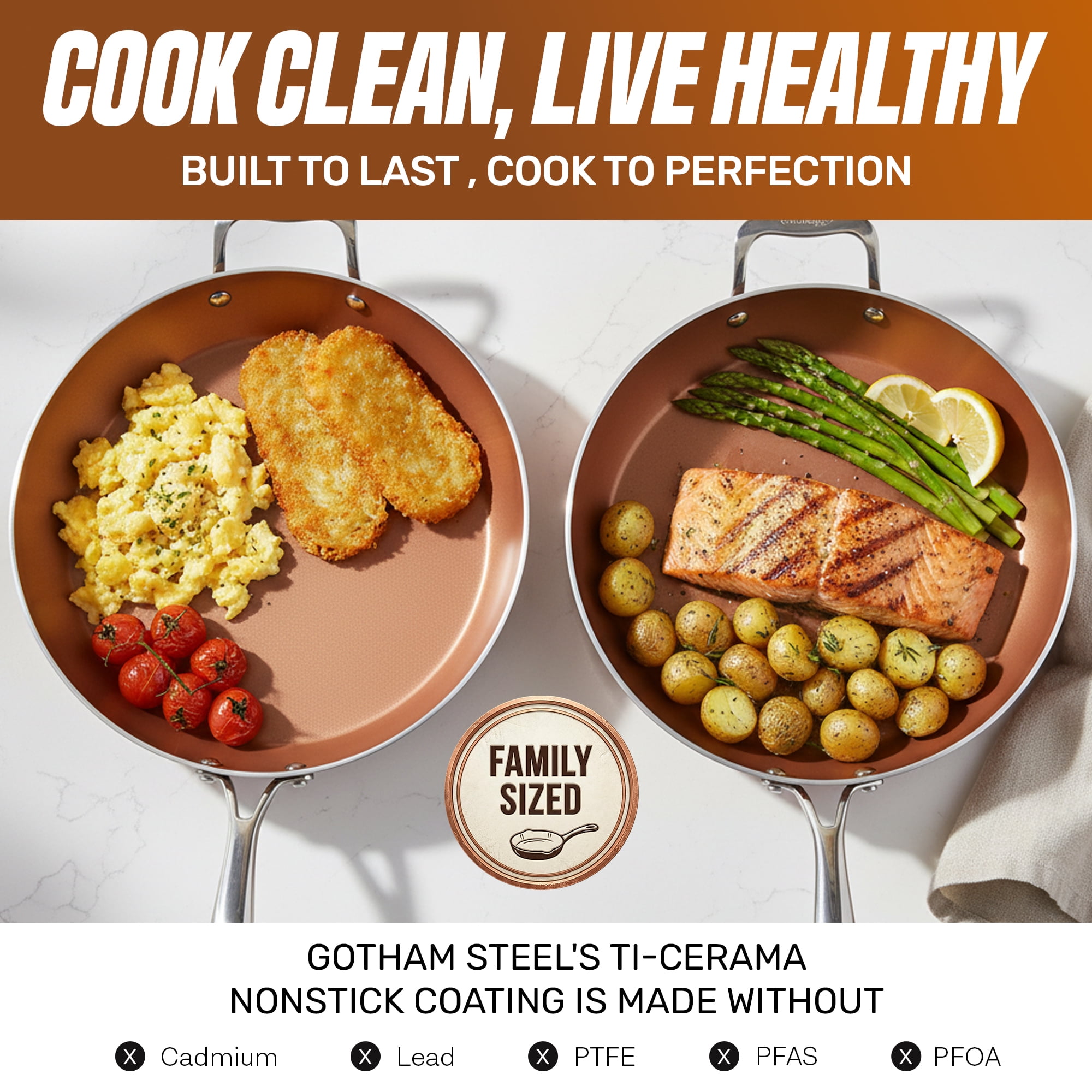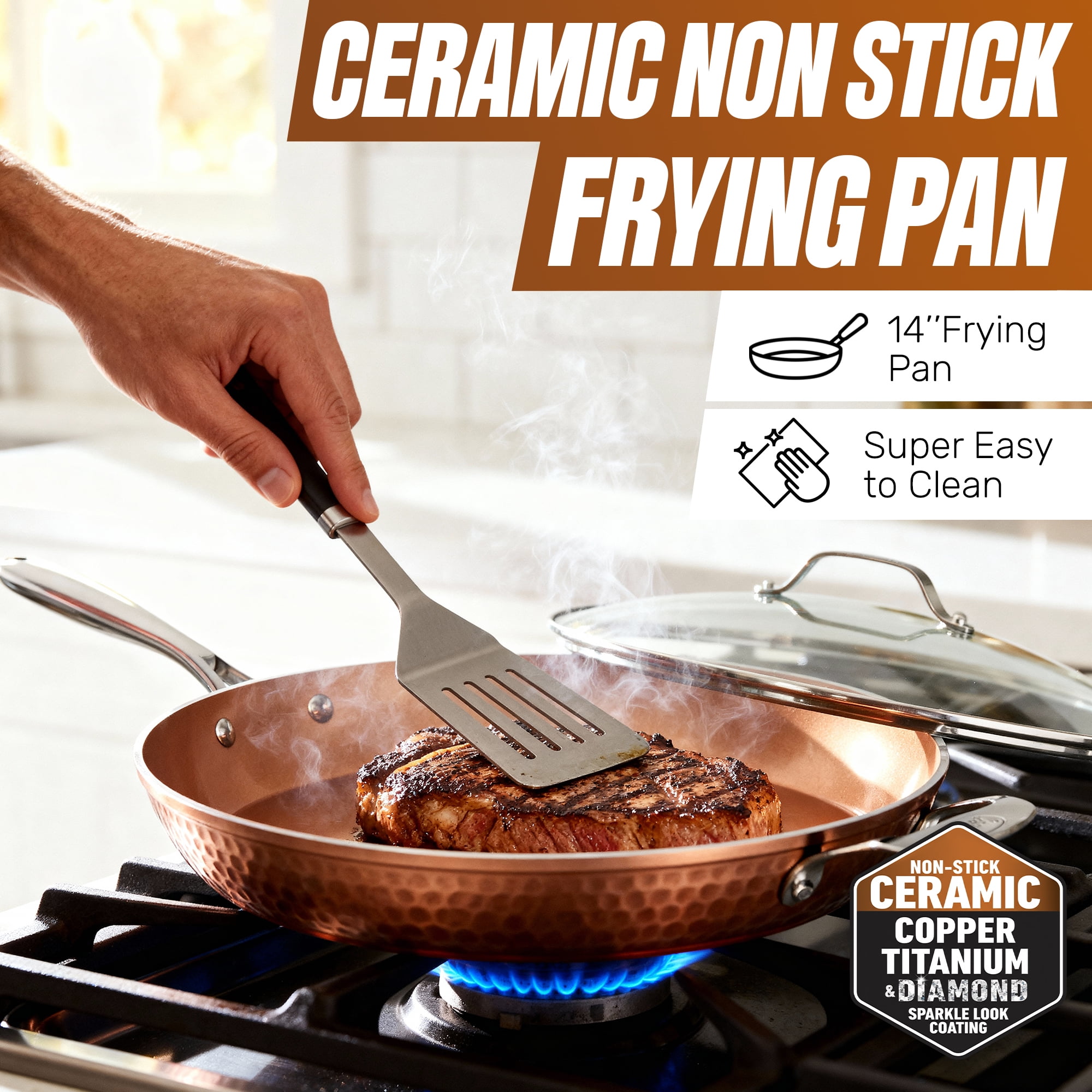 Gotham Steel 14 Inch Non Stick Frying Pans with Lid, Large Frying Pans Nonstick with Lid, Non Toxic Ceramic Pan Skillet, Nonstick Frying Pan, Induction Pan, Oven/Dishwasher Safe – Copper Hammered
