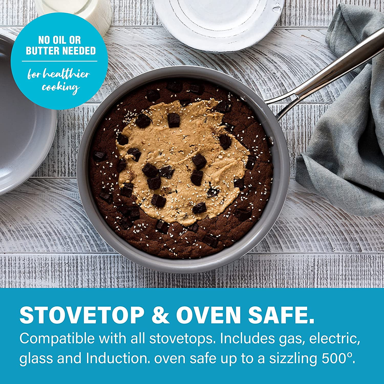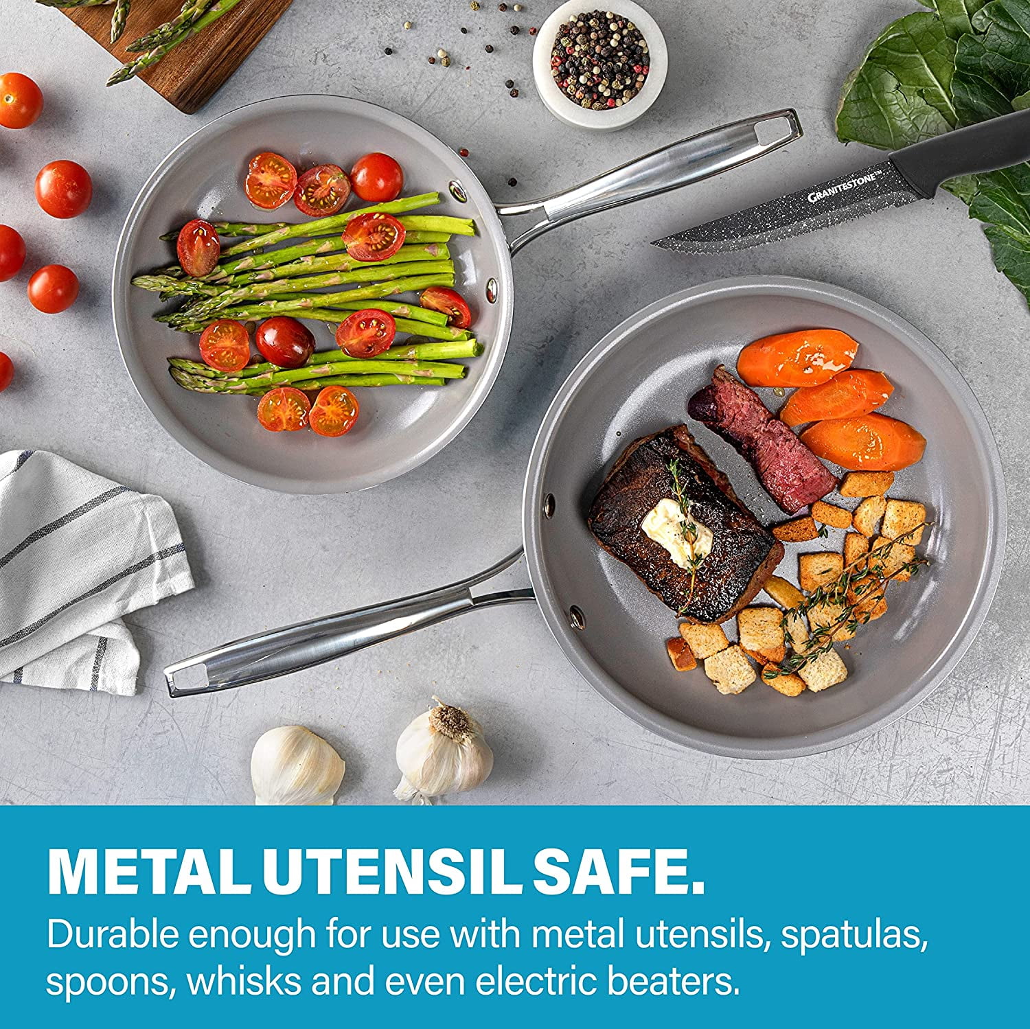 ULTIMATE CERAMIC NONSTICK – the Gotham Steel nonstick cooking surface is coated three times and then reinforced with diamonds to deliver the ultimate food release. No seasoning or even oil or butter needed, makes for healthier eating, and provides for hassle free, 1-2-3 cleanup. HEALTHY and NON-TOXIC – the Gotham Steel coating is composed of ceramic and reinforced with titanium, ensuring this frying pan is made without PFOA, PFOS, lead, and cadmium for an eco-friendly, healthy experience for your entire family METAL UTENSIL SAFE – the coating of the pan is infused with diamonds, the strongest material on earth which makes it durable enough to withstand metal utensils, spatulas, spoons, whisks and even electric beaters while delivering years of outstanding, nonstick use EFFORTLESS CLEANUP, DISHWASHER SAFE – spend less time with cleanup! After all the cooking and prepping is done, place cookware in the dishwasher for quick and easy cleanup. STAY COOL HANDLES – the stainless-steel handles are ergonomically designed for both righty and lefties and the unique Y shaped handles let’s heat escape and keeps the handles cool to the touch