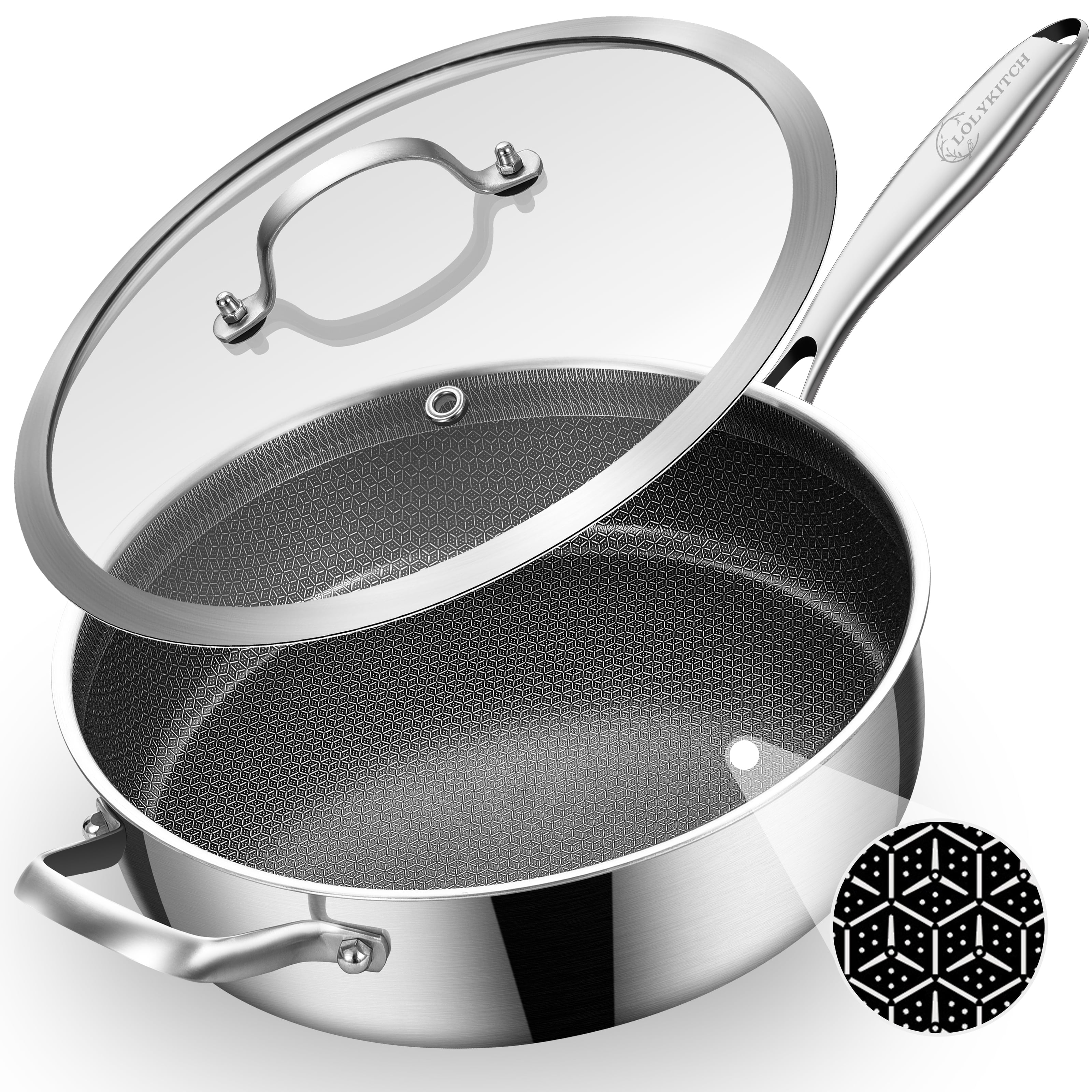 Nonstick Pots and Pans 8 Piece Ceramic Cookware Set Includes: 8″ skillet, 10″ frying pan with tempered glass lid, 12.5” frying pan, 1.5 Qt saucepan with tempered glass lid, 6 Qt Stock pot with tempered glass lid. Pro-Grade Durability: Constructed from hard anodized aluminum, the Gotham Steel Pro set offers unmatched durability and resistance against wear and tear, outperforming standard stainless steel cookware. Enhanced Nonstick Performance: Triple-coated with our award-winning ceramic and titanium nonstick layer, each piece promises easy release and cleanup, significantly reducing the need for oil. 100% Healthy and Toxin-Free: Made without harmful chemicals such as PFOA, PFOS, lead, and cadmium, ensuring a healthy cooking environment. Oven and Stovetop Safe: Compatible with all cooking surfaces, including induction, and oven-safe up to 500°F. Quick and Even Heating: Each pot and pan features a complete aluminum composition with a unique spiralized bottom ensuring quick and even heat distribution all around with no dead zones or hot spots. Stay Cool Stainless-Steel Handles: Ergonomically crafted stainless steel handles remain cool during cooking, providing both comfort and safety for hassle-free handling. Durable and Dishwasher Safe: Engineered for durability, this cookware is easy to clean and maintains its appearance even after dishwasher use.