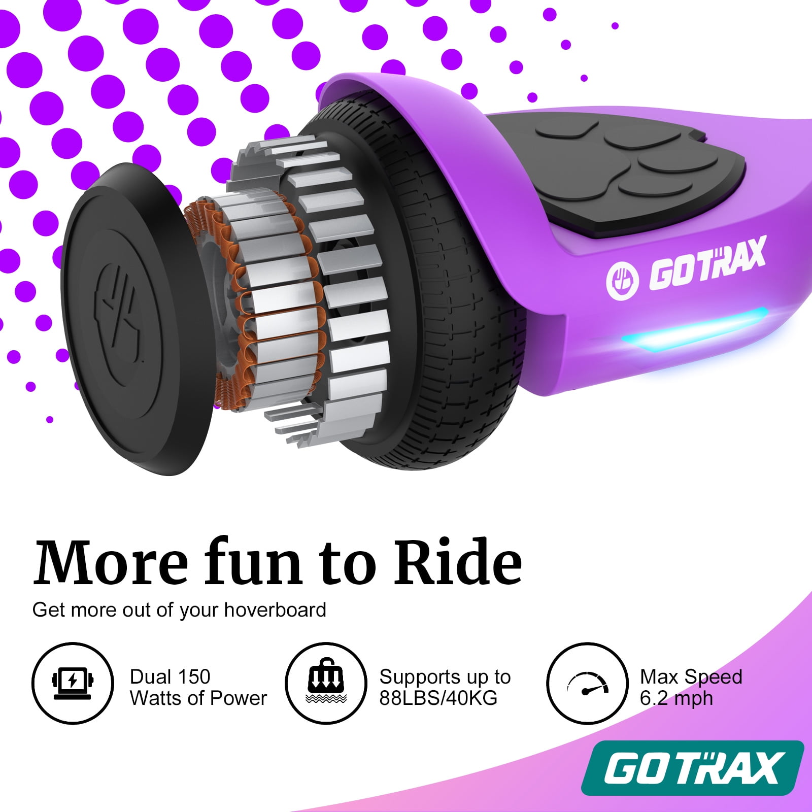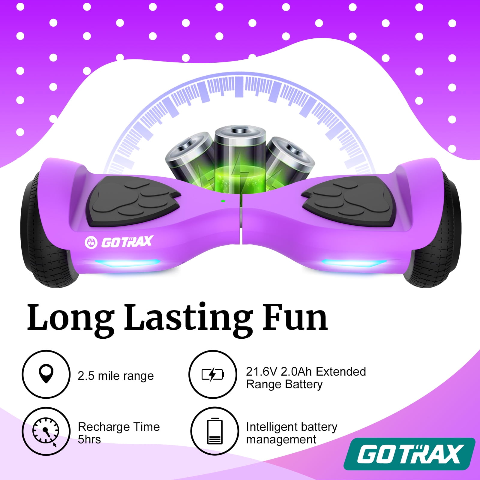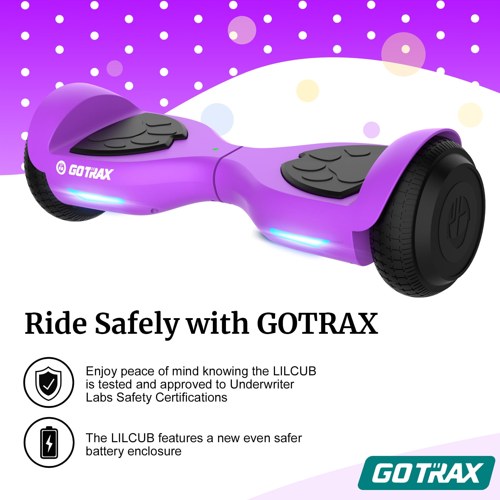 GOTRAX Lil Cub Hoverboard 6.5″ Wheels, Max 2.5 Miles, 6.2mph Self Balance for 44-88lbs Kids, Purple