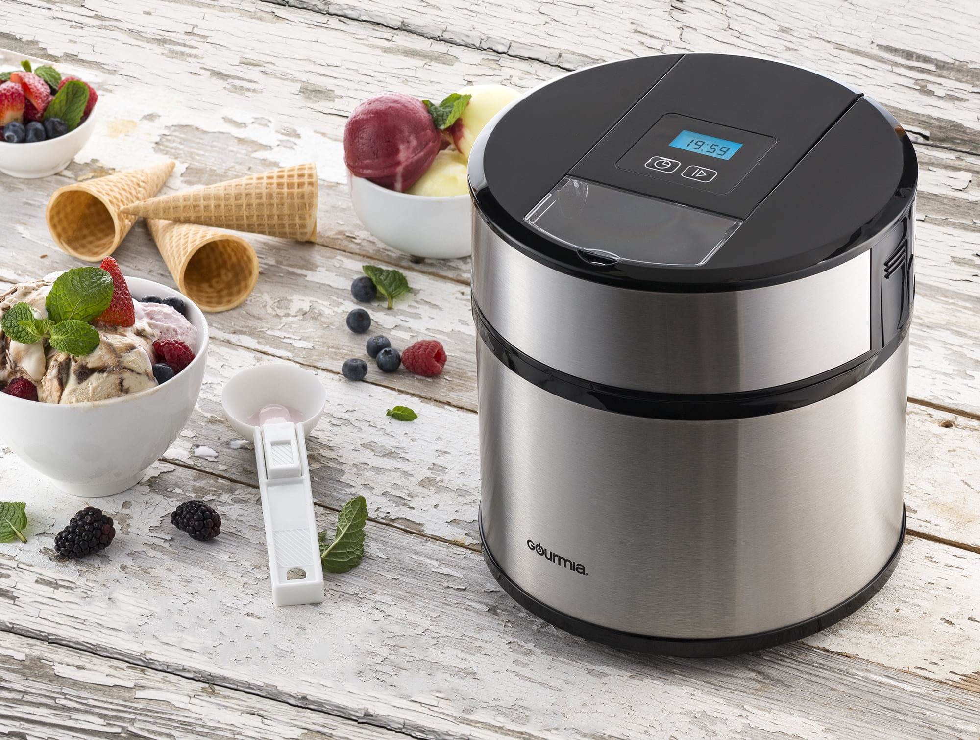 Gourmia 3 Pint Ice Cream Maker with Digital Timer, Stainless Steel, 6.6 lb