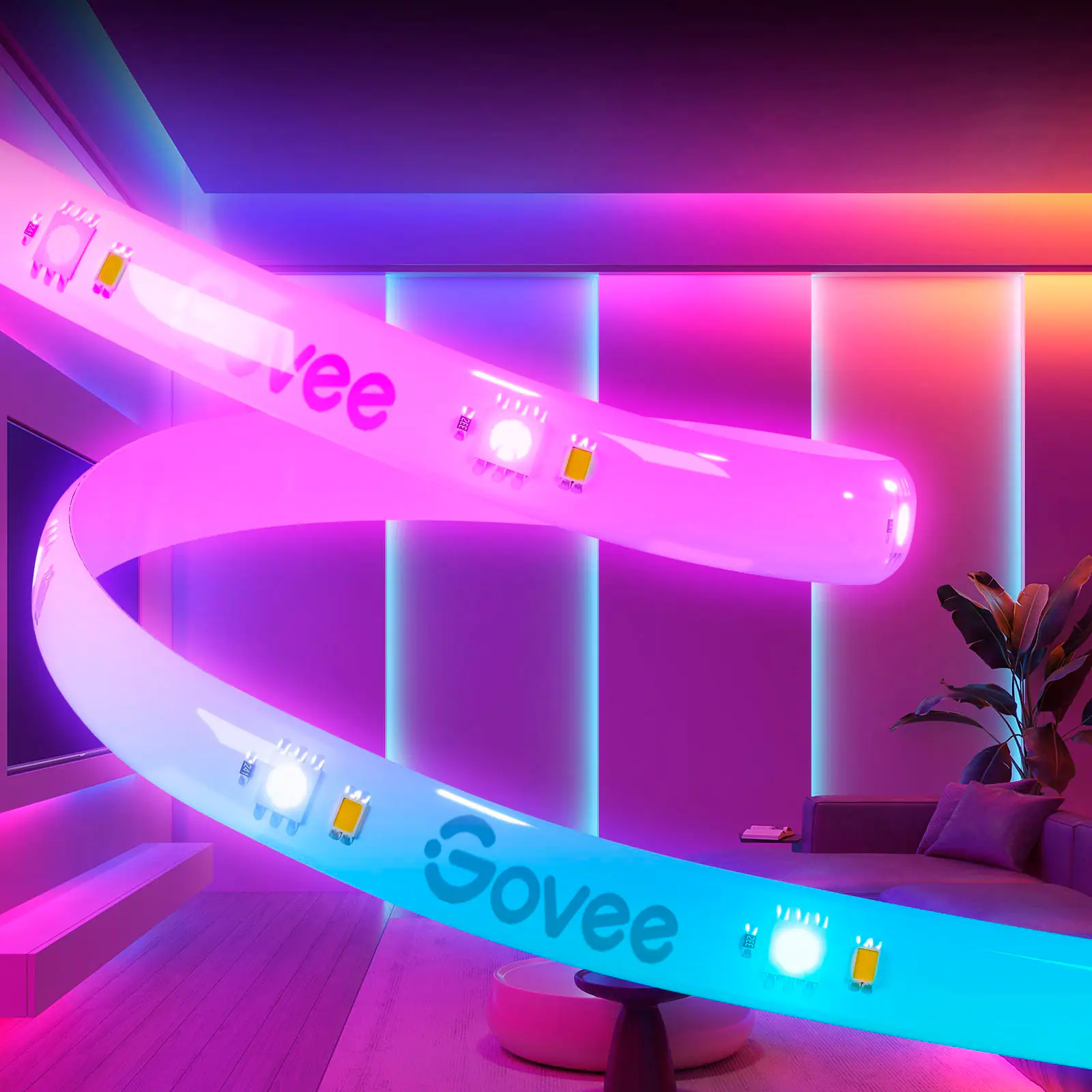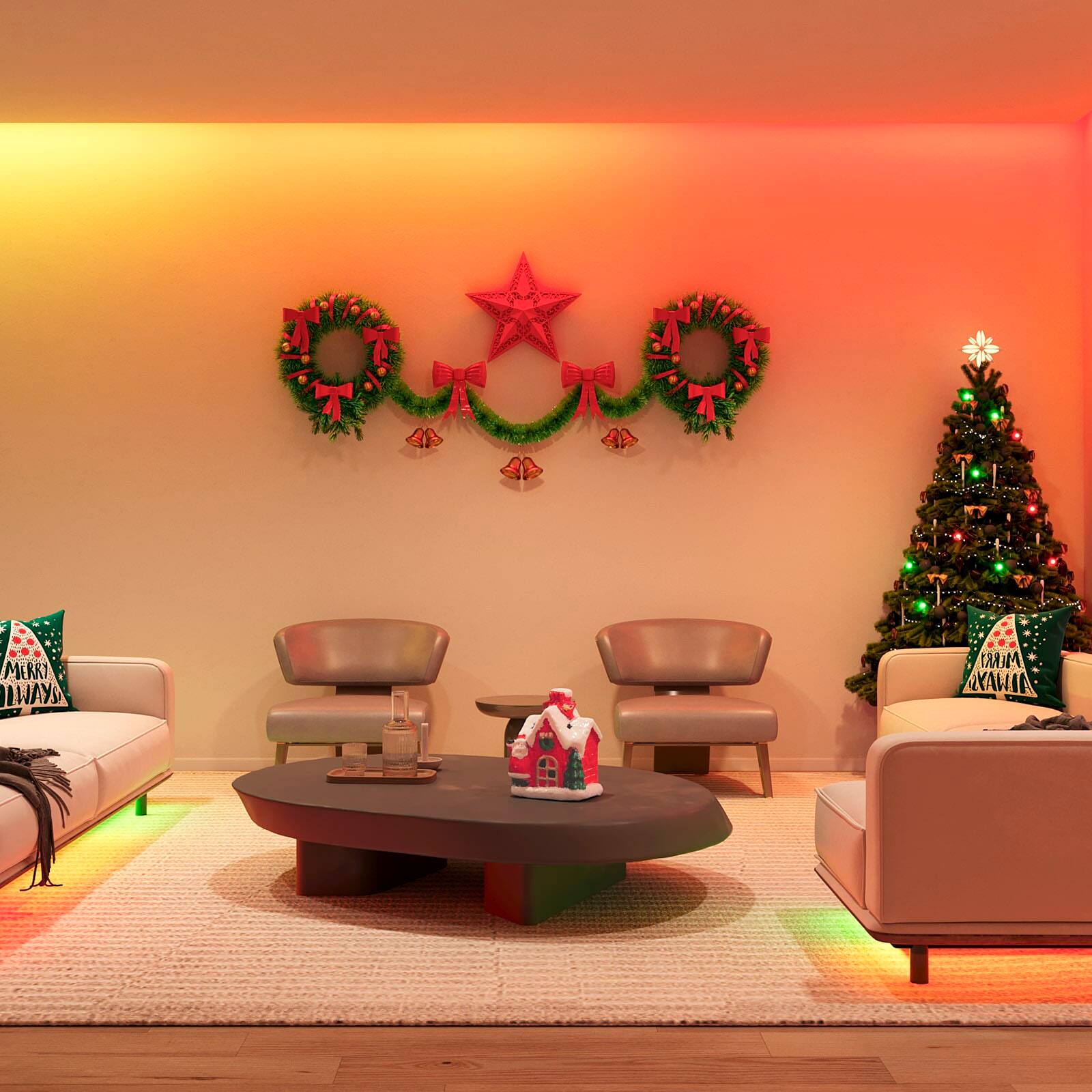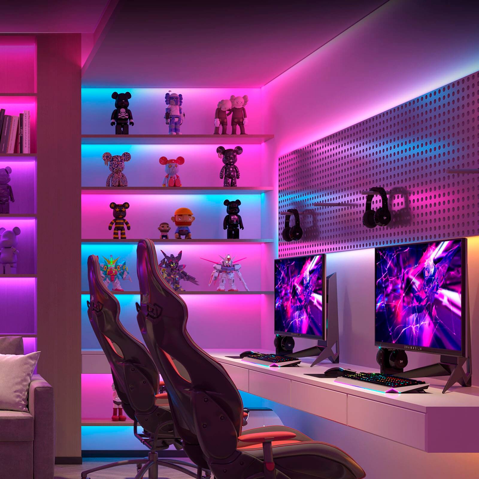 Unlike RGB, RGBIC LED strip lights present stunning segmented colors on a line. The smart LED strip lights create a colorful lighting feast to decorate your home.
