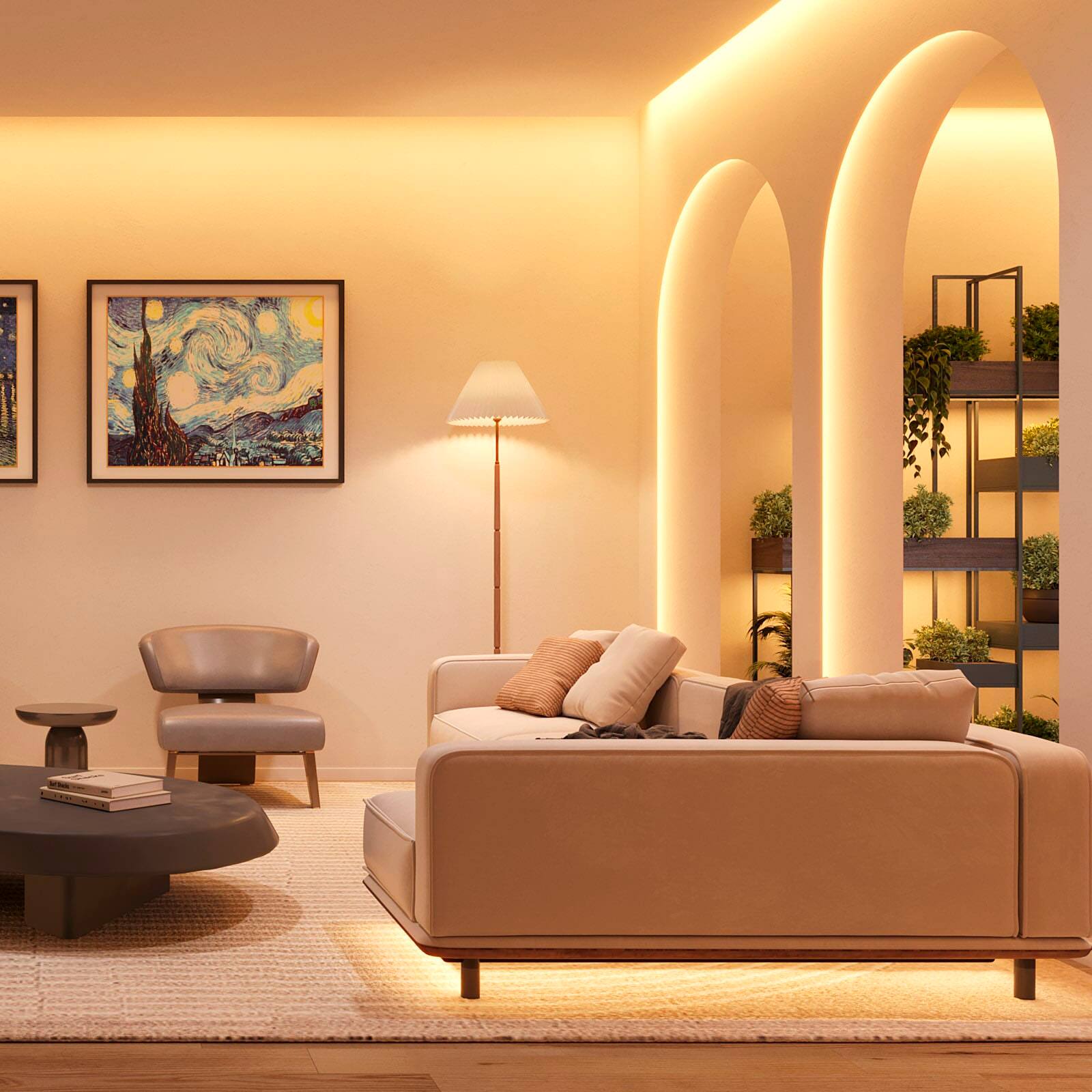 Add extra brightness to any room in your home. These LED strip lights use Wi-Fi and Bluetooth to easily control the colors and effects to personalize your lighting.