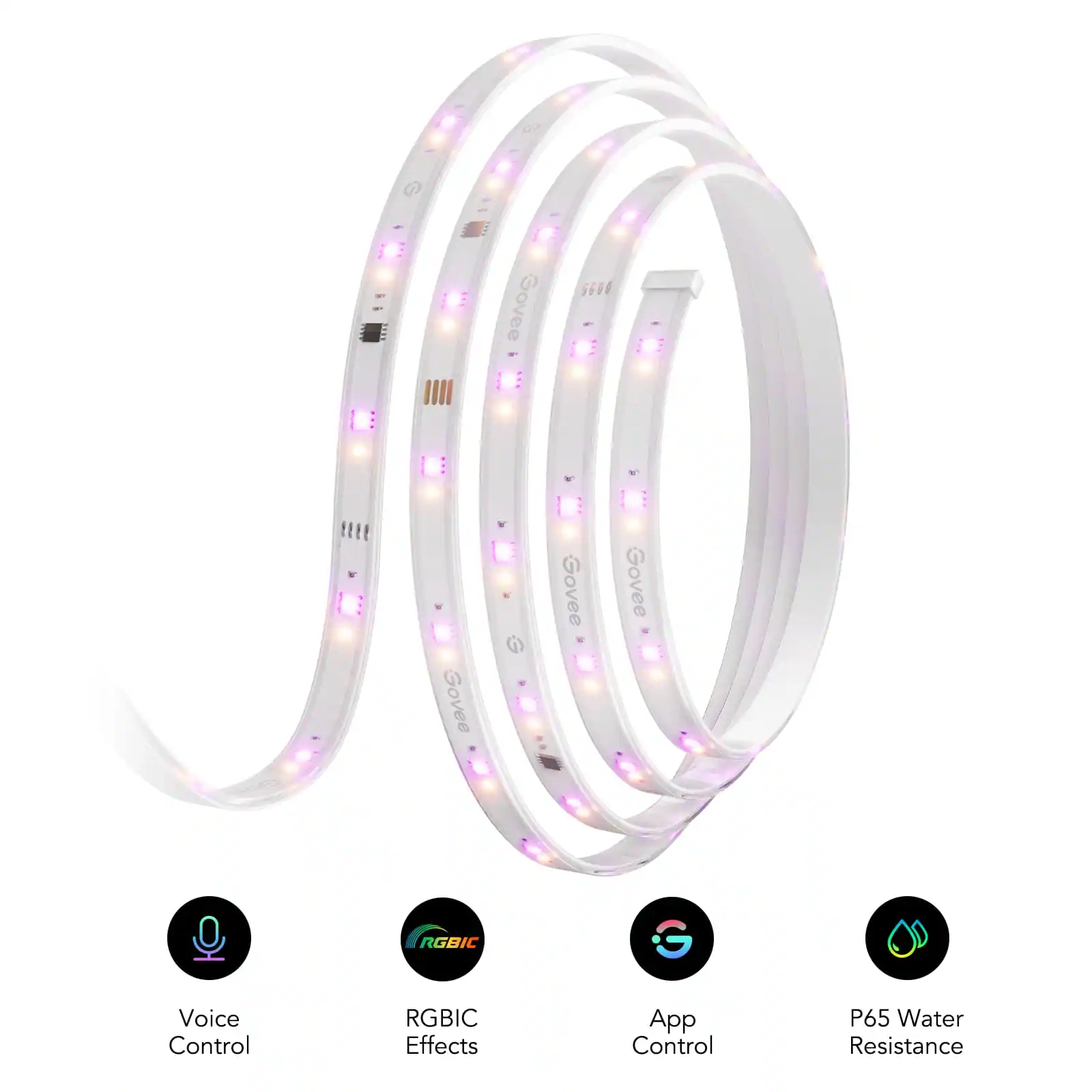Govee outdoor LED strip light supports Alexa, Google Assistant intelligent control. Enjoy hands-free control of your lights using our convenient voice control feature. Pair your lights with Alexa and Google Assistant to adjust the colors, brightness, and more.