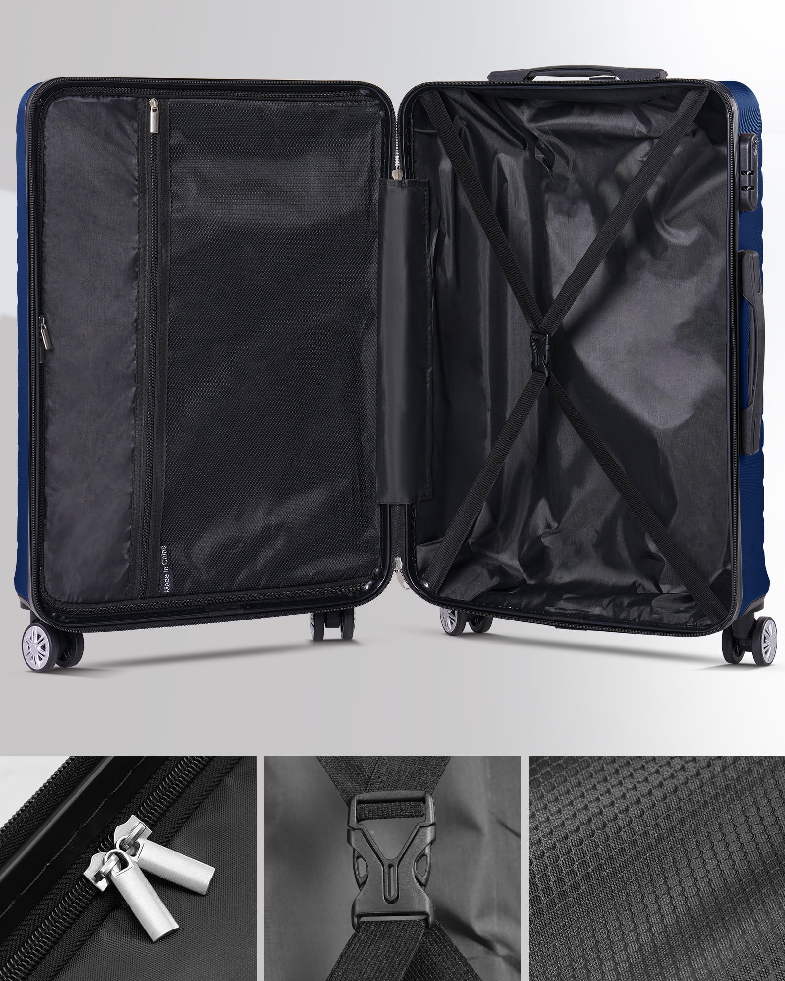 3-Piece Luggage Sets: Perfect for all types of travelers, the 20-inch suitcase meets carry-on requirements for domestic and international flights, while the 24-inch and 28-inch suitcases are designed for easy inspection Sturdy and Durable: Constructed with ABS materials to ensure long-lasting quality and reliability for your travels Easy to Move: Our luggage sets come with smooth wheels and adjustable handles for easy movement through airports, train stations, and bustling city streets 7 Pieces Organizing Bags: The travel set offers 7 organizing pockets: 1 Extra Large bag, 1 Large bag, 1 Medium bag, 1 Toilet bag, 1 Shoe bag, 1 Laundry bag, and 1 Lingerie bag This complete and spacious set is perfect for long trips