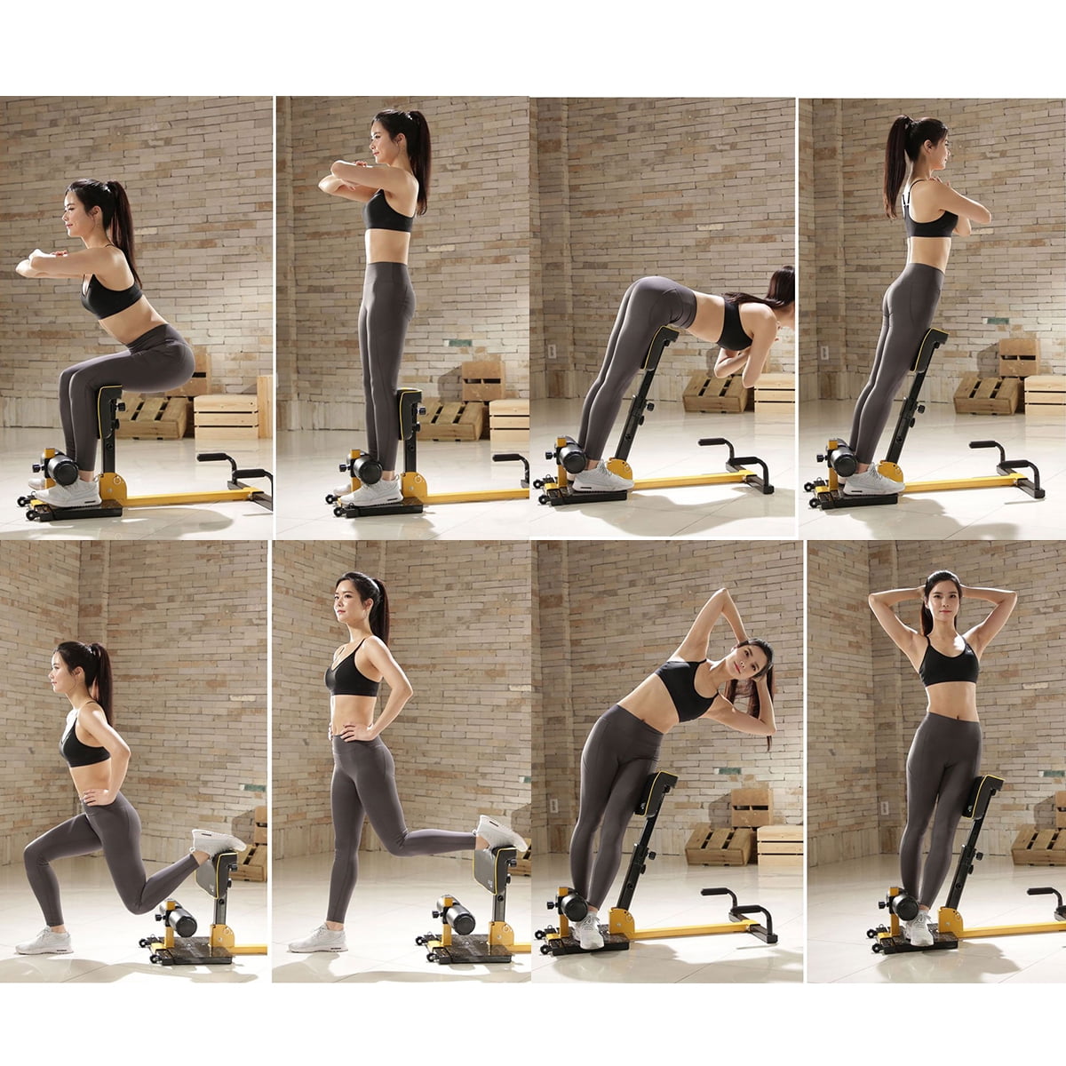This 8-in-1 multifunctional fitness trainer will provide a core workout training to your body. It is ideal Body Trainer for sit-up, back exercise, push-up and flat support to greatly exercise your abdomen, leg muscles and gluteus. With the load-bearing of 265 lbs, this squat is sturdy, sturdy and hard to deform or shake. Bottom is designed into T-shape to ensure its stability. Adjust the heights of the cylinders and mat with the knobs to meet the different people’s needs. Ergonomic leg cushion with PVC+PU cover supports your legs softly to make sports more comfortable. 4 enlarged foot pads at the bottom will prevent skid and protect the floor. Slipping can be effectively prevented due to the non-slip handles and the front pedal. Two wheels in the front will help girls move it easily without much effort. And it can be stored or cleaned very easily. Get one of these sissy squat to maintain a good body shape! Feature 8-in-1 sissy squat combines a variety of core training functions, suitable for home gym Perfect to exercise abdomen, leg & arm muscles, quadriceps and gluteus Thickened iron squat with 265 lbs load-bearing is stable and sturdy enough for long time use T-shape bottom design to prevent turning over when you are dong exercises 11 Levels height adjustable up to 11.5” for people with different height requirement Ergonomic cushion with PVC+PU cover to support your legs comfortably 4 enlarged non-slip foot pads will increase friction as well as protecting the floor Non-slip handles and anti-skid front pedal strengthens its stability and safety Users could move it easily due to the convenient wheels in the front Can be kept into a small size for storage or wiped very easily Specification Color: Black + Yellow Material: Iron + PVC + PU Maximum Weight of User: 265 lbs Overall Dimensions:38 ” X 16.5” X 18.5-30” (L X W X H) Cushion Size:16” X 7.5” (L X W) Net Weight: 29.5 lbs Package includes: 1X Sissy Squat 1X Instruction Manual