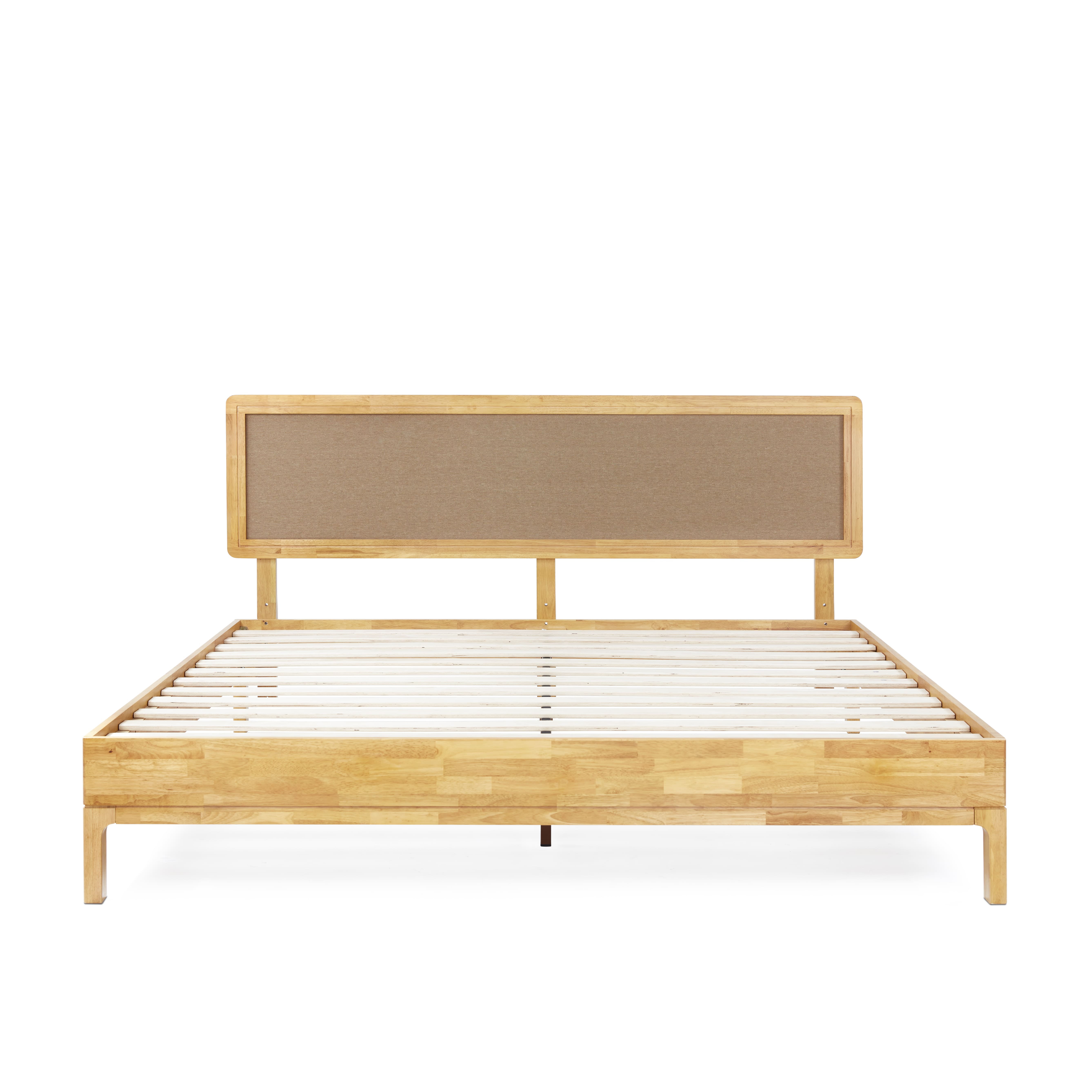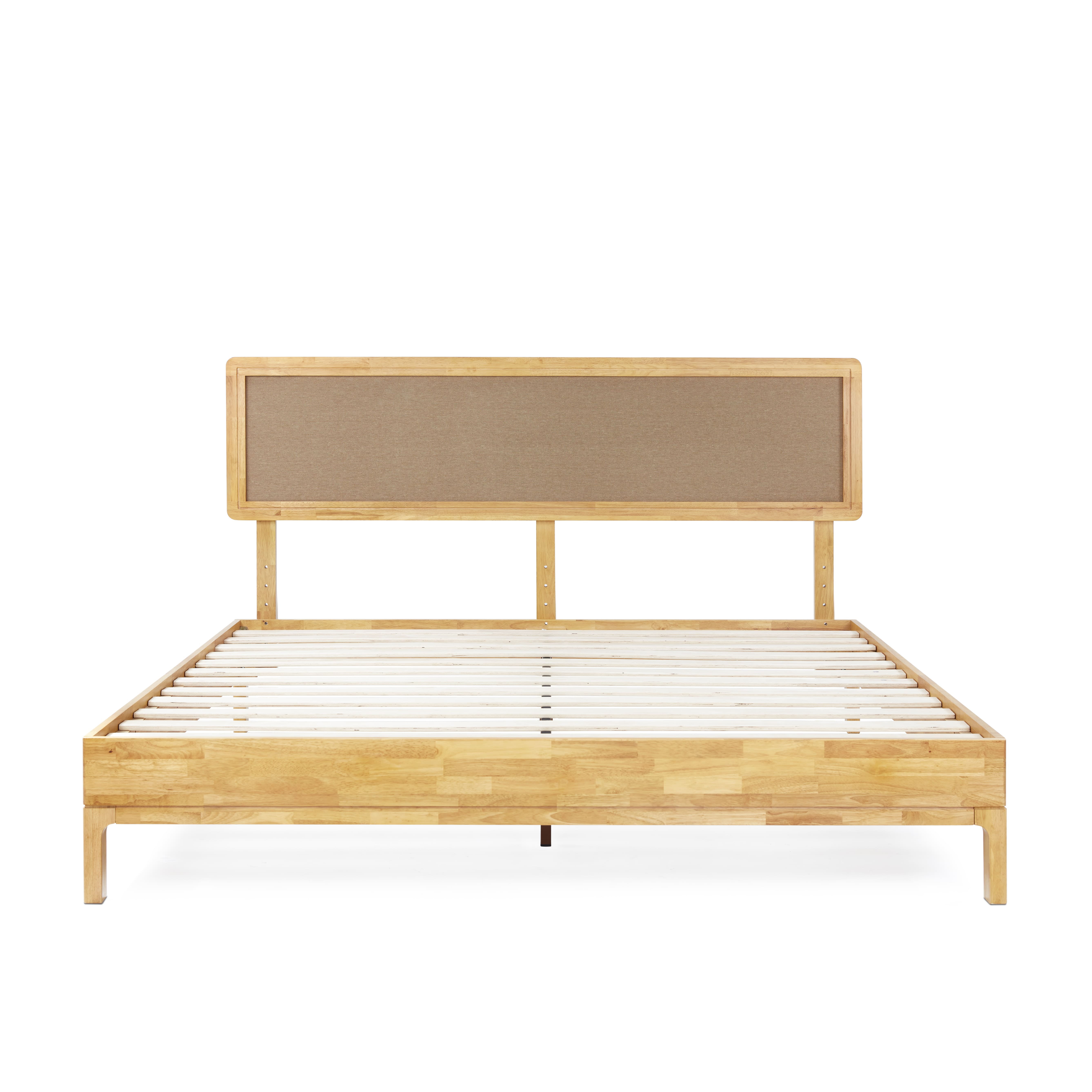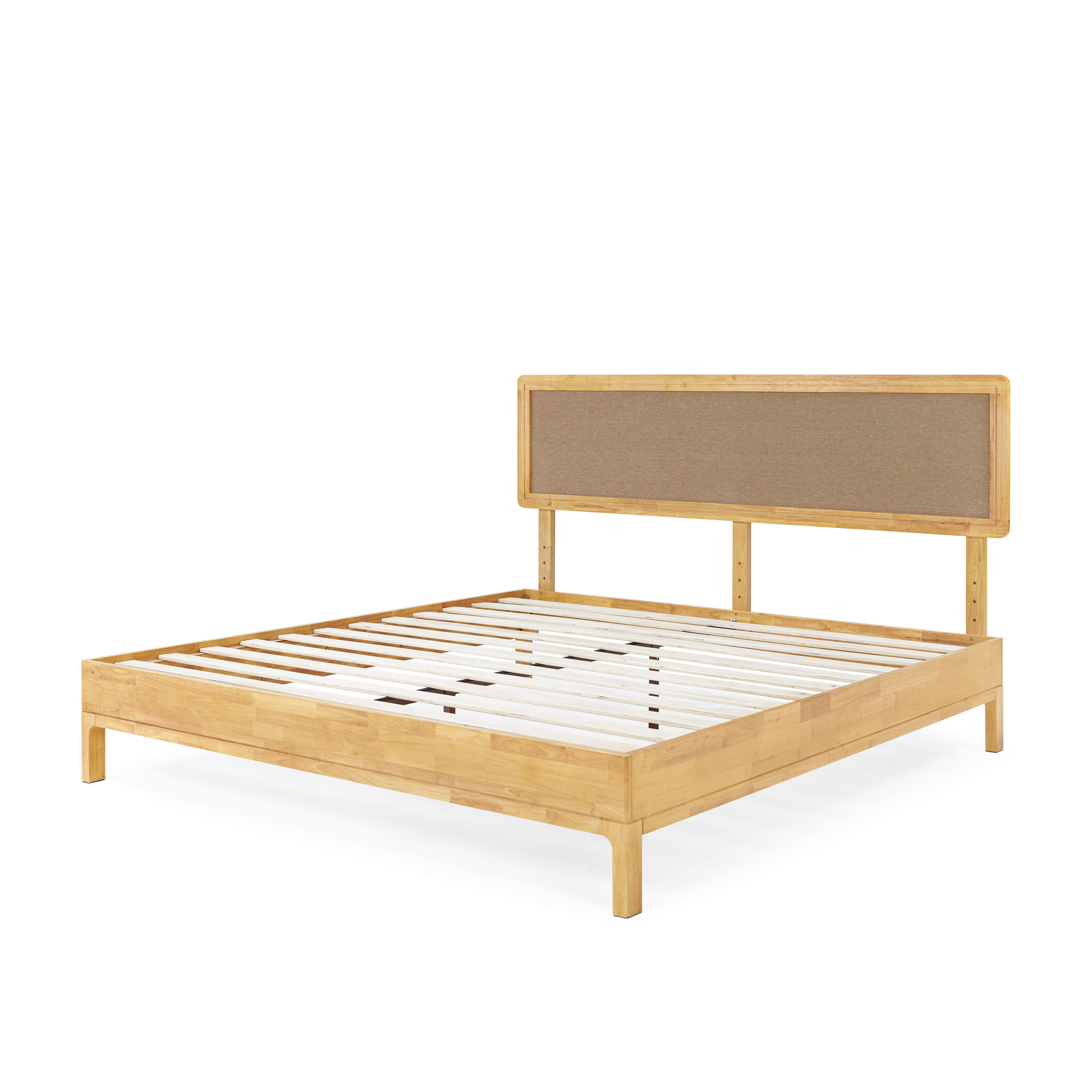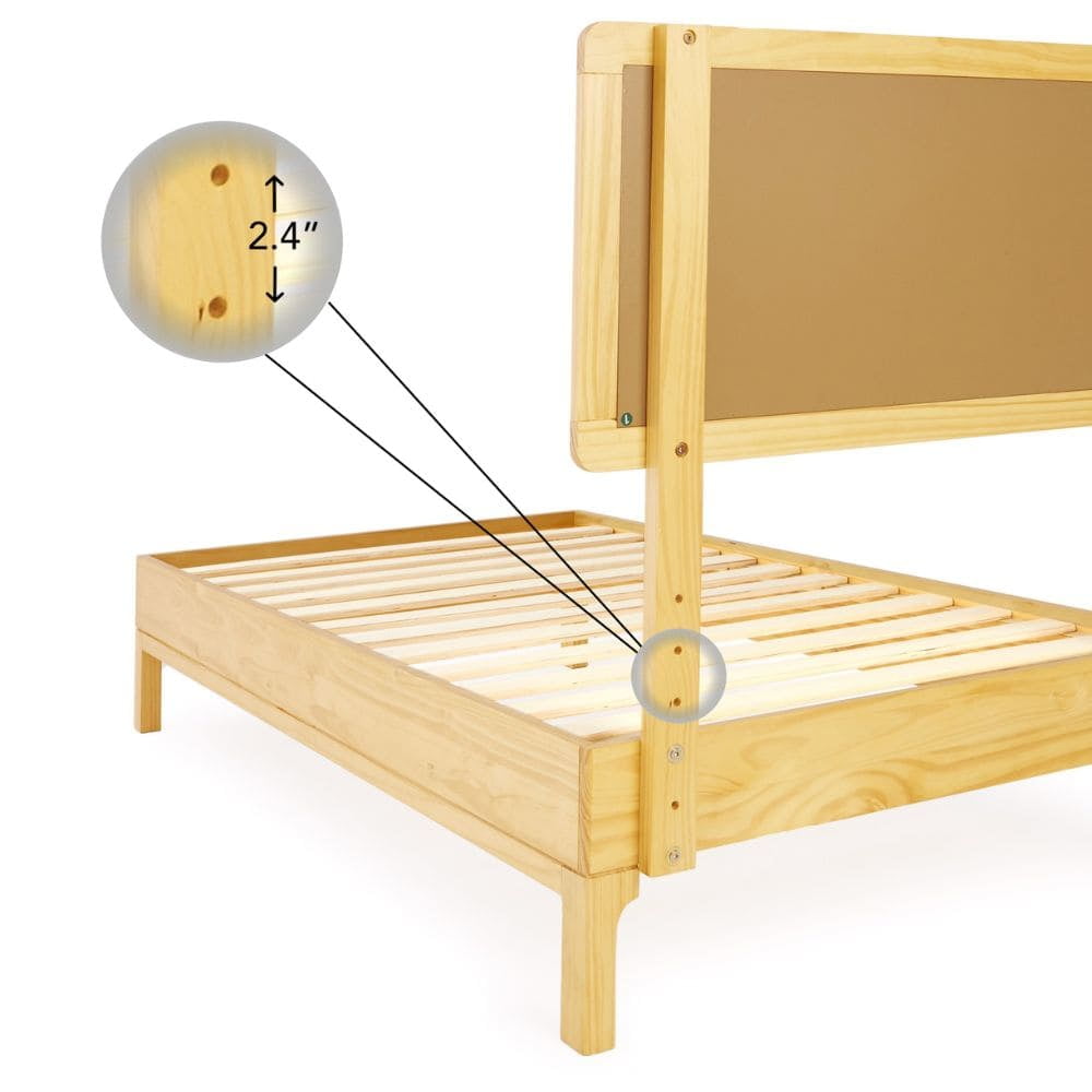 Grace 47″ King Size Platform Bed Frame with Adjustable Headboard, Bohemian, Solid Wood, Natural