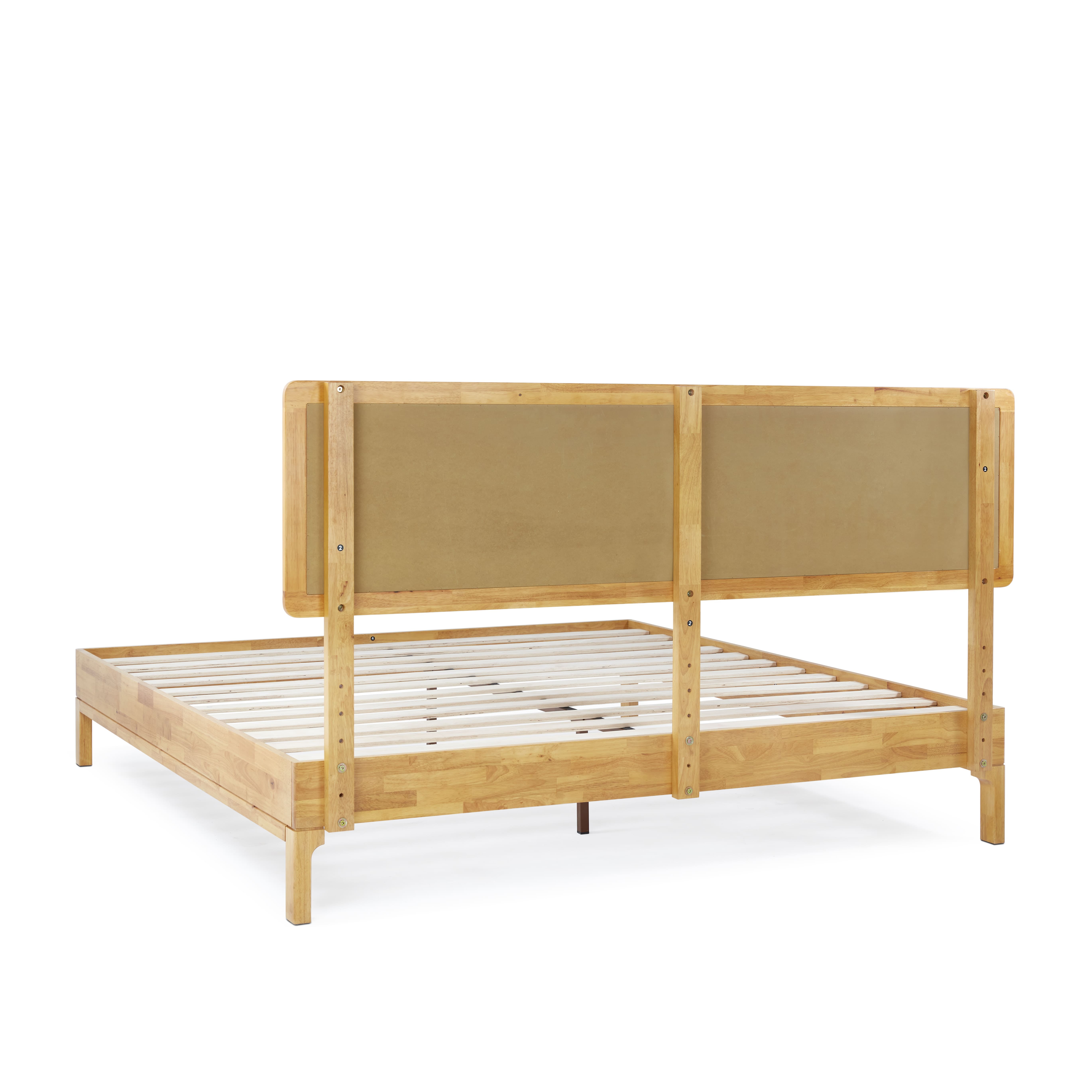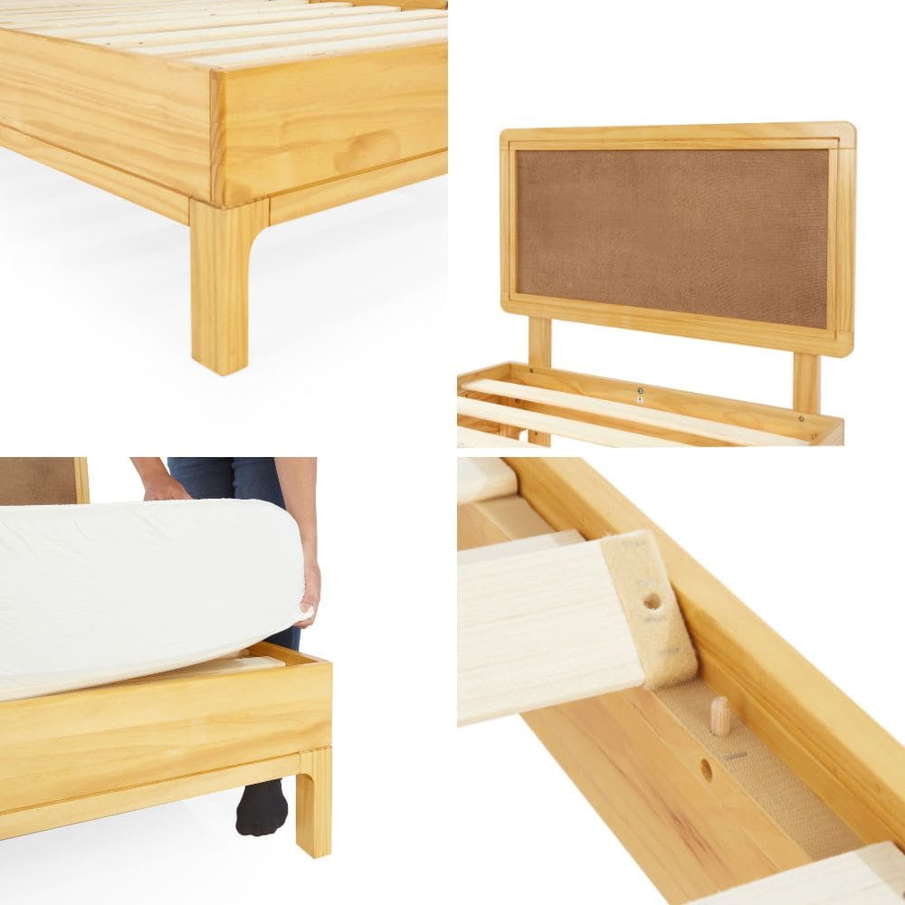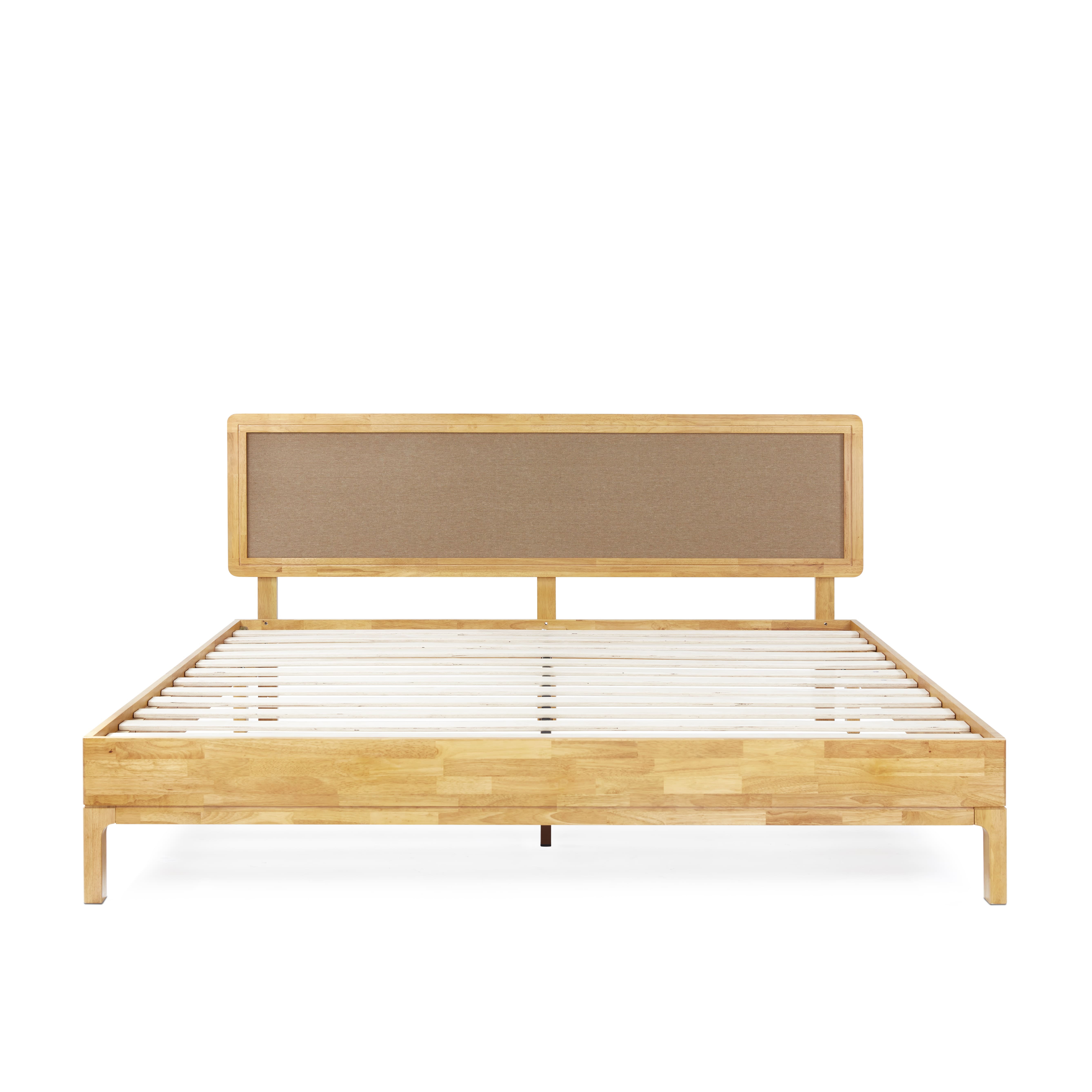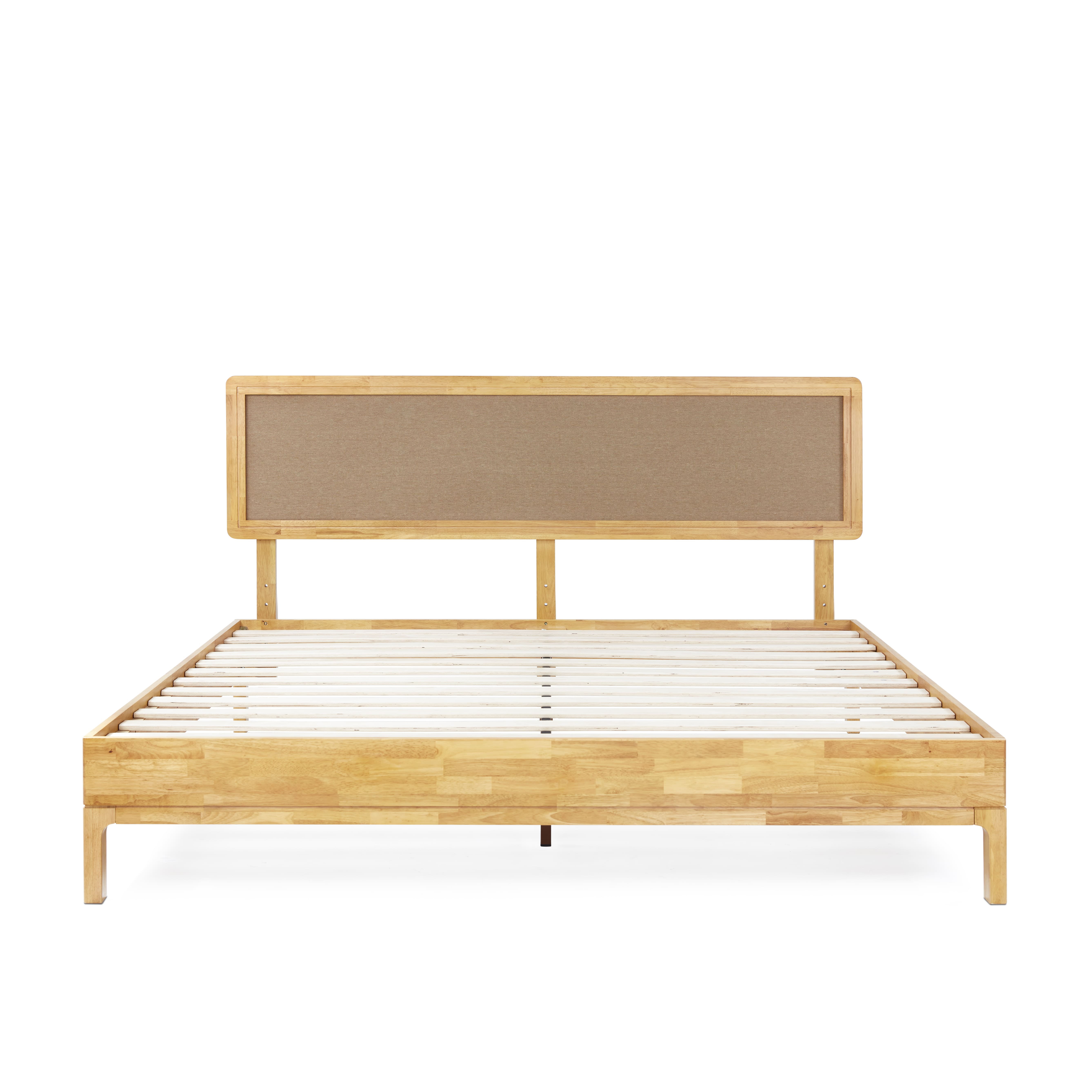Grace 47″ King Size Platform Bed Frame with Adjustable Headboard, Bohemian, Solid Wood, Natural