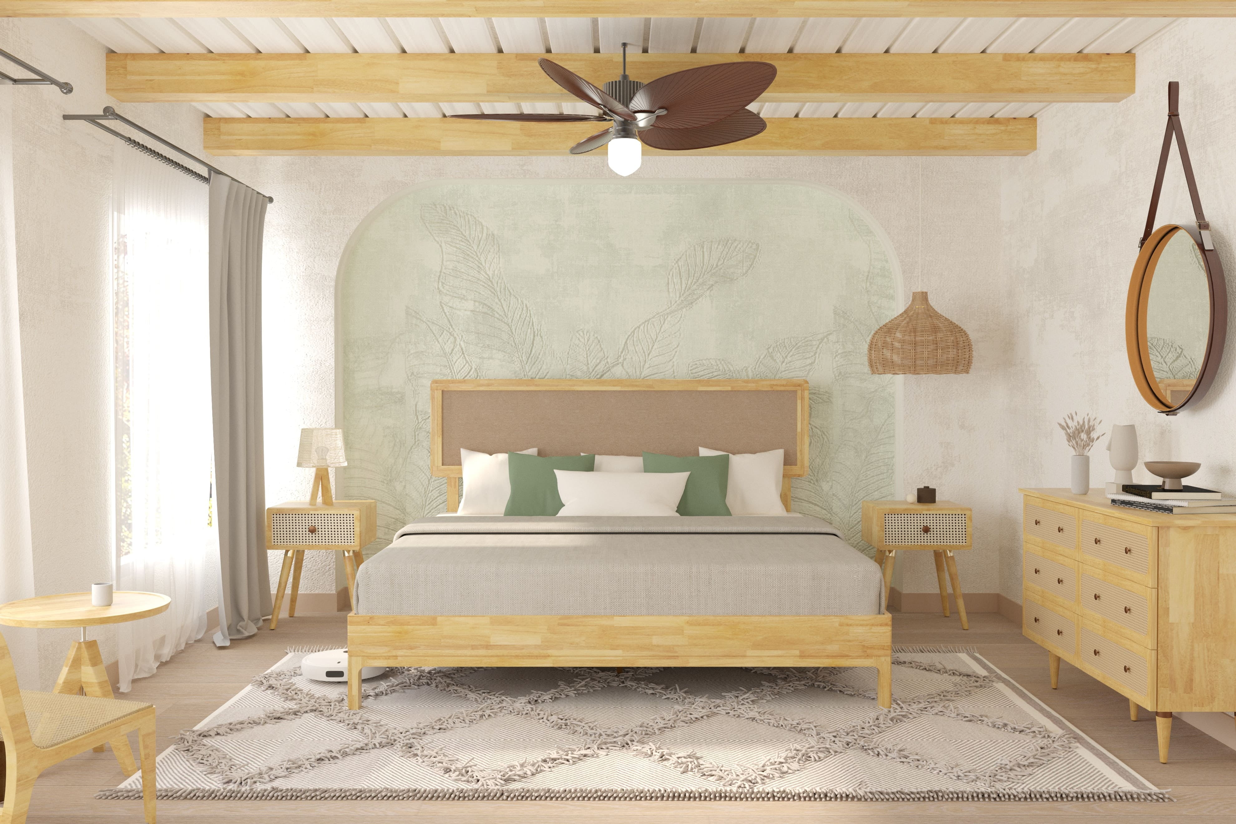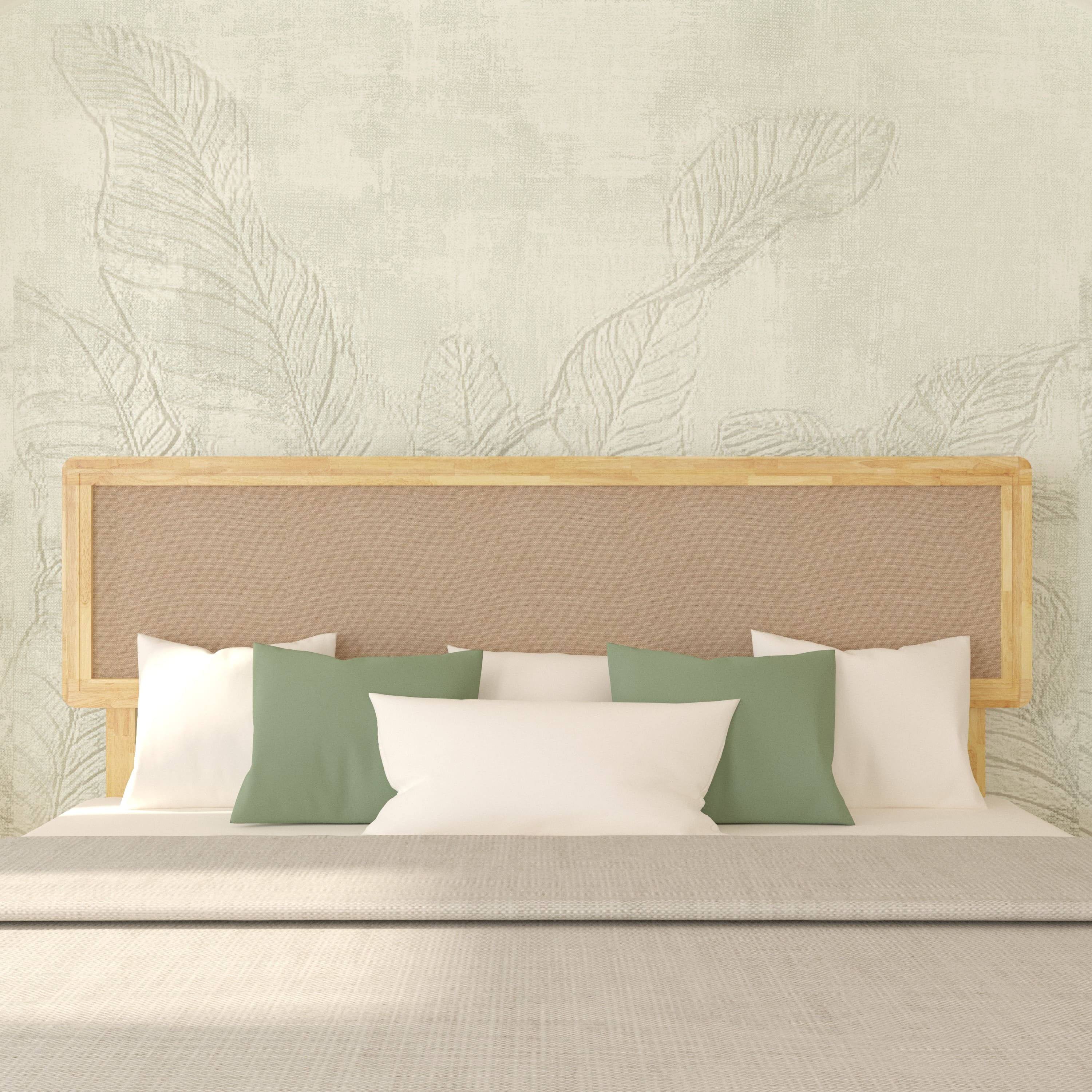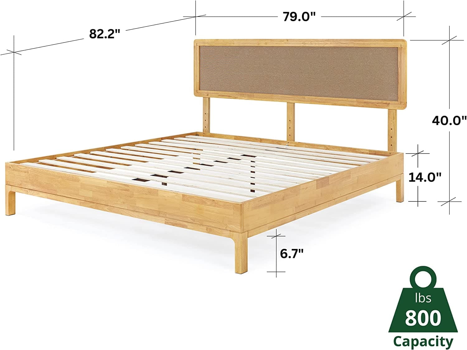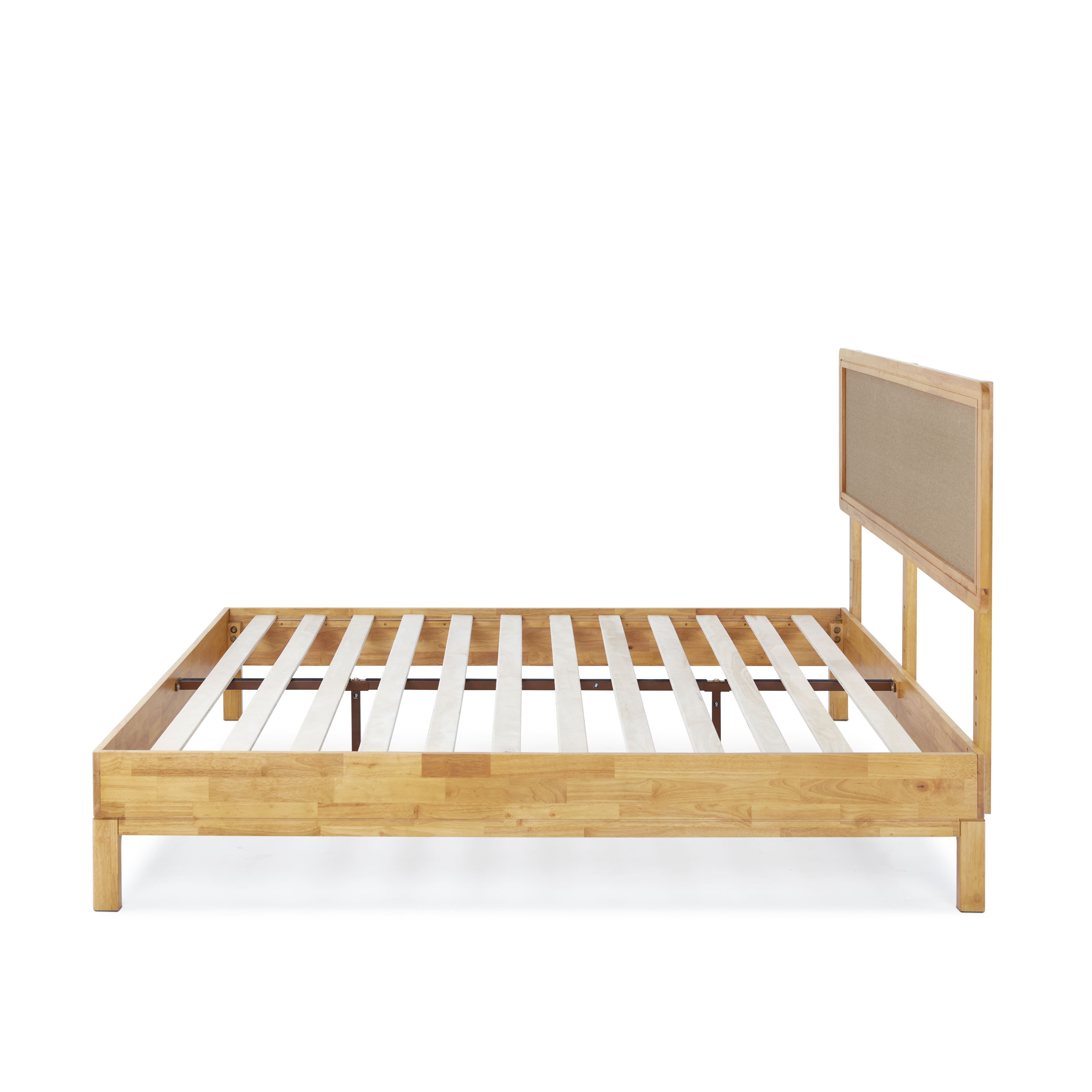 Grace 47″ King Size Platform Bed Frame with Adjustable Headboard, Bohemian, Solid Wood, Natural