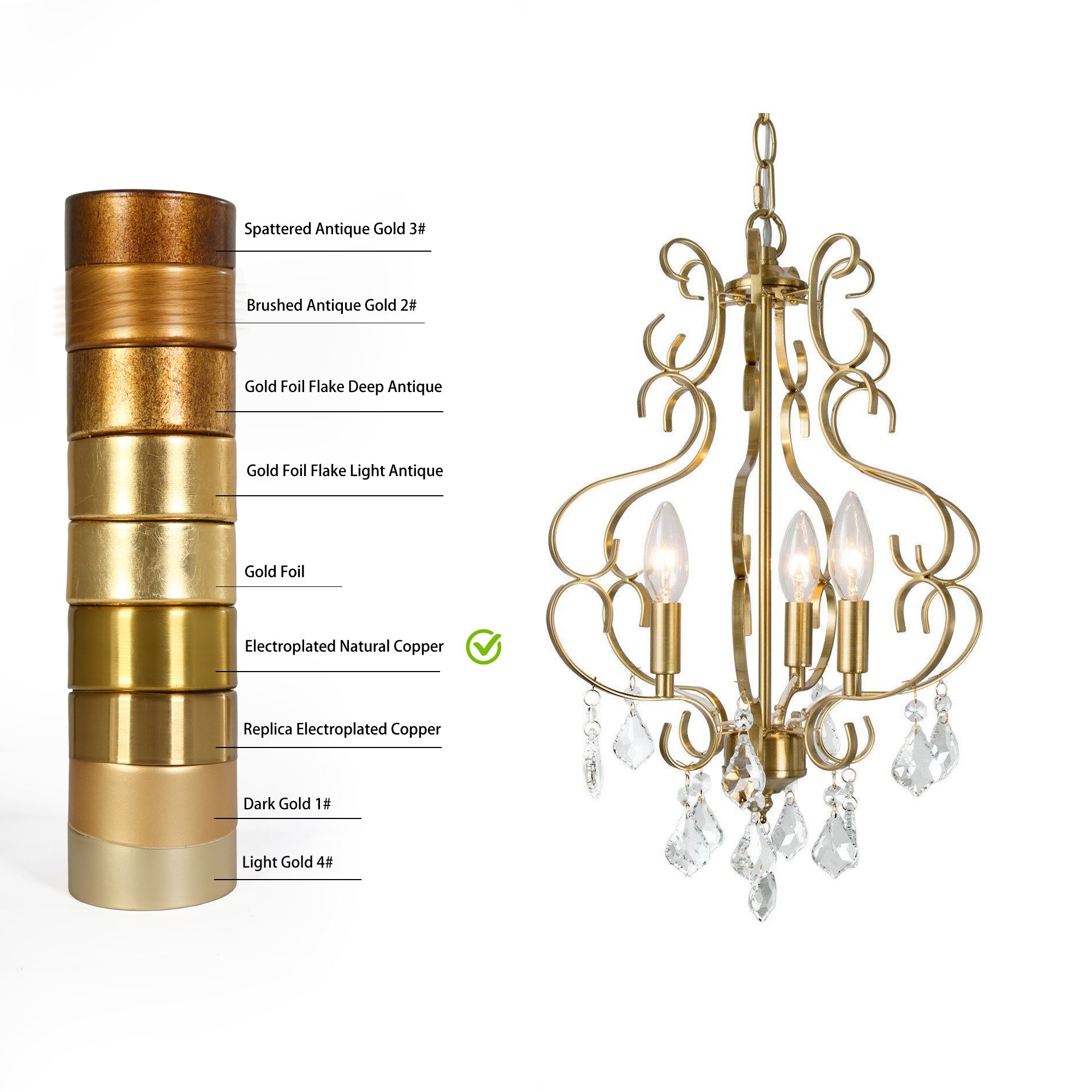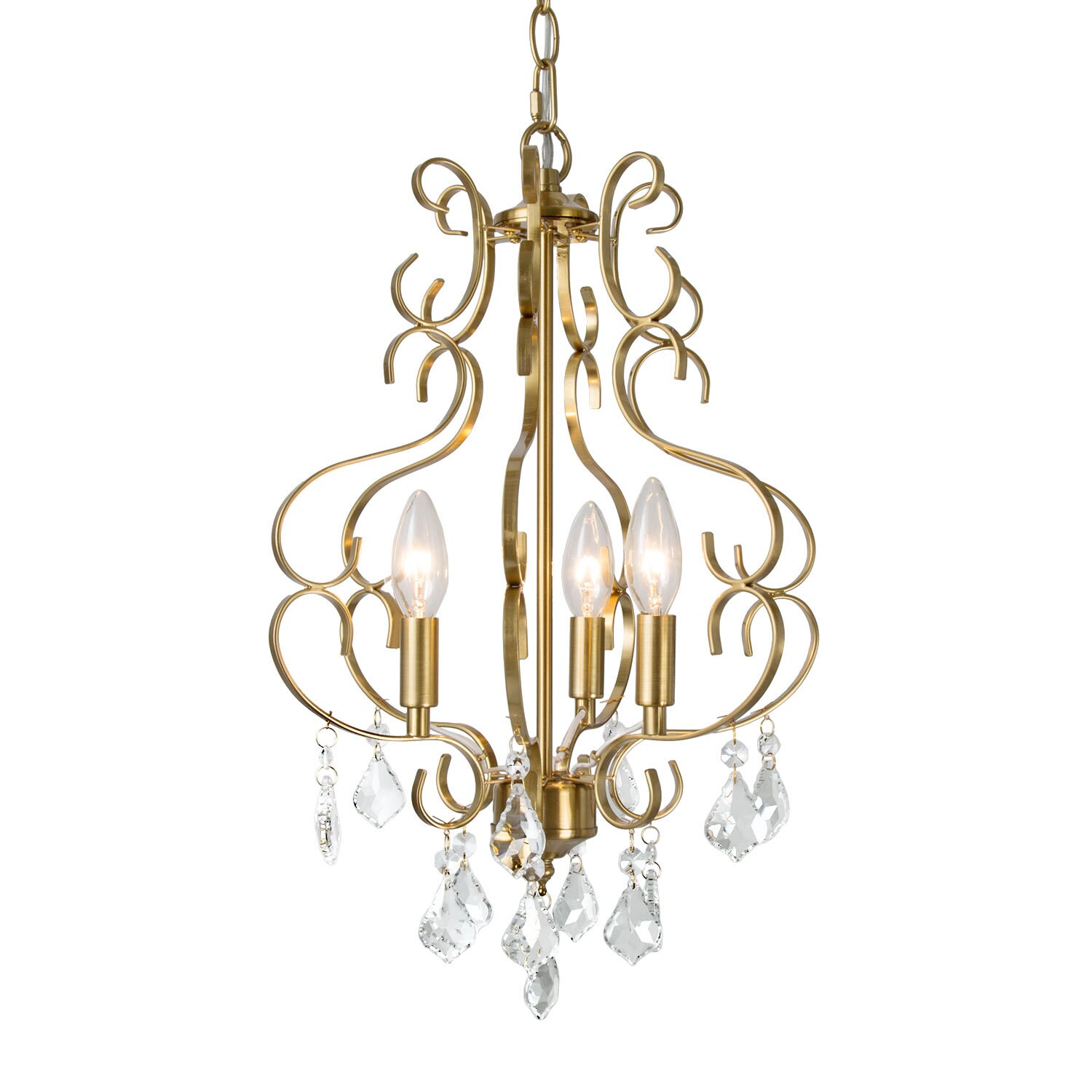 This 3-light classical traditional electroplating shiny gold candle chandelier with crystal drops and combines curved lines with sparkle. It is finished in a very charming high-end shiny gold metallic finish, creating warm light that will dazzle your eyes. Very exquisite gold chandelier, very suitable for luxurious decoration, creating a magnificent effect, whether it is installed in the dining room, kitchen island, living room, bedroom or the entrance hall, it is an eye-catching existence, and it will bring you many compliments.