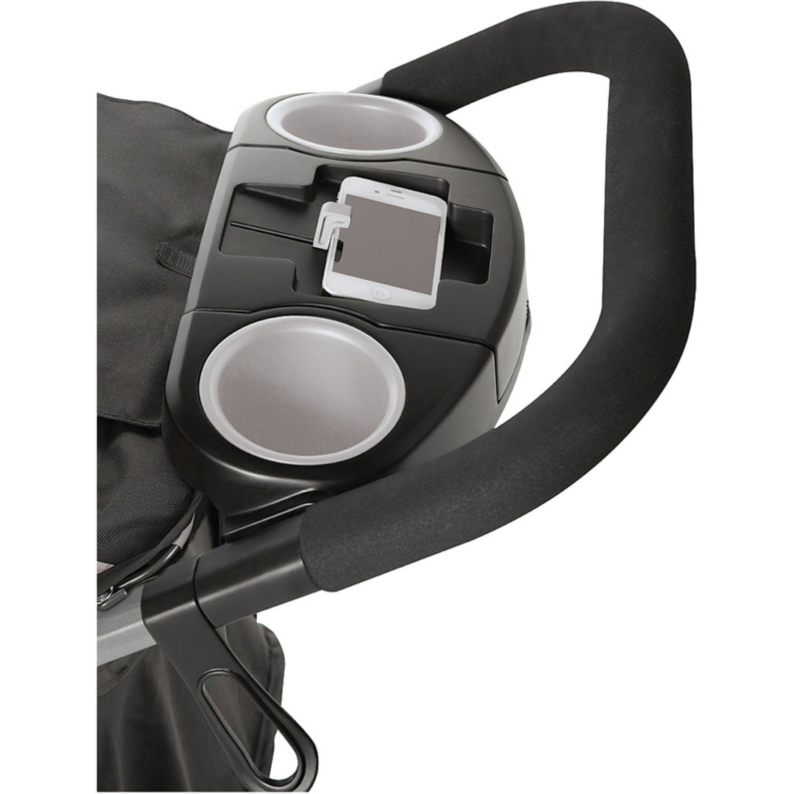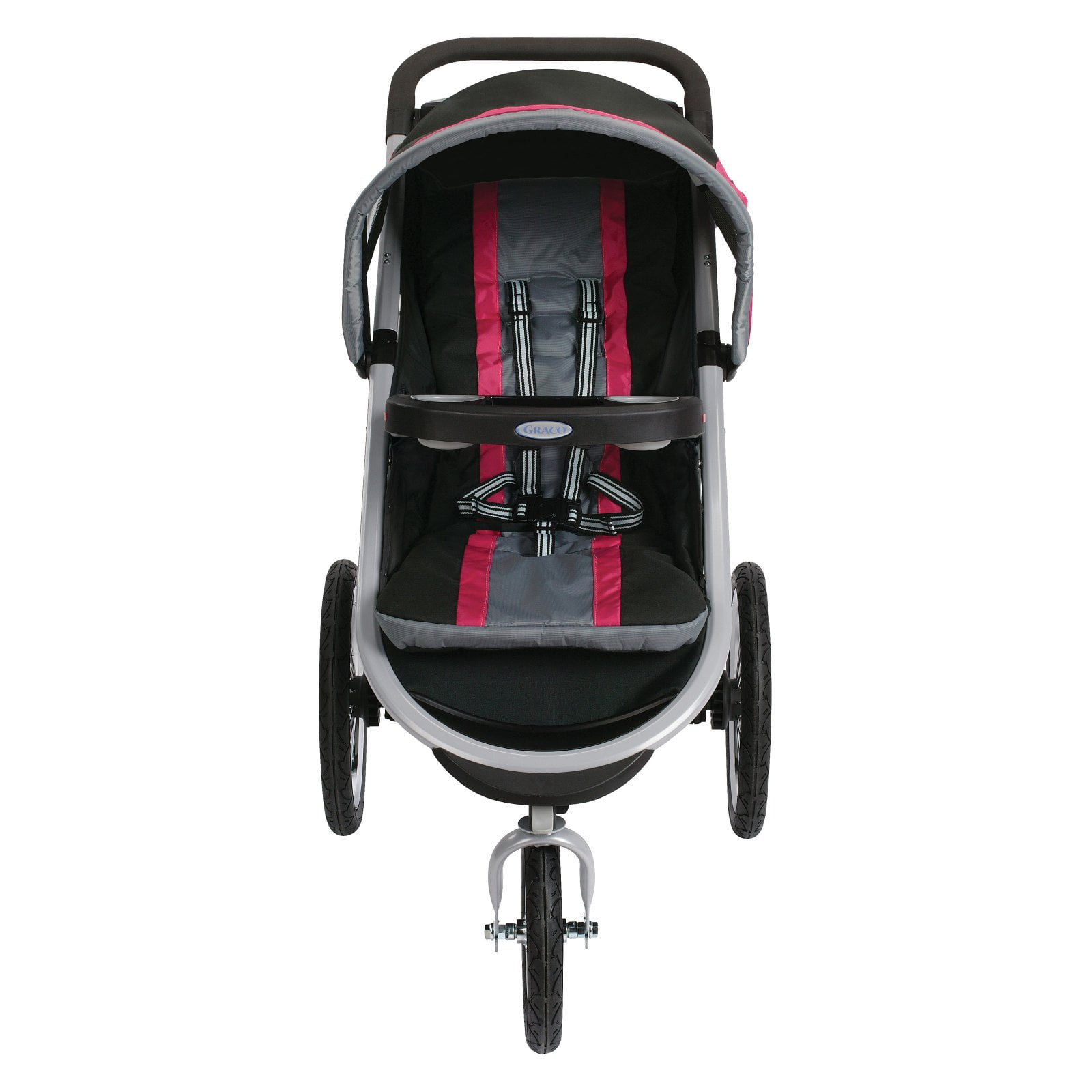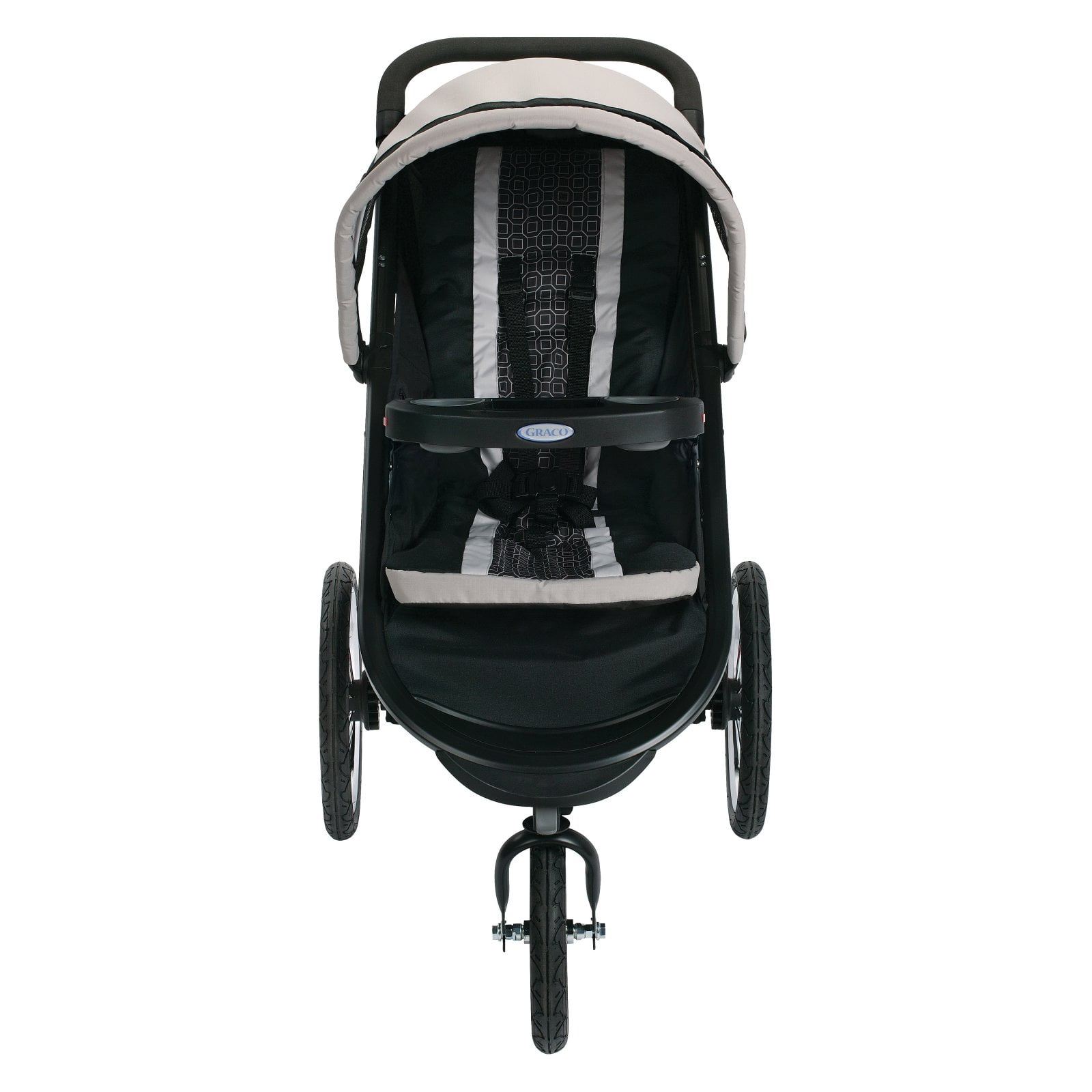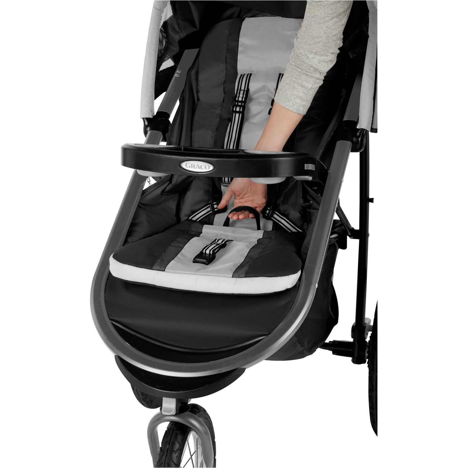 Graco FastAction Fold Jogger Stroller, Gotham, 37 lbs Accepts all Graco infant car seats with a secure one-step attachment to create your own travel system Graco®’s signature FastAction™ one-second, one-hand fold provides the ultimate in convenience for parents on the go 3-wheel design with locking front swivel wheel for improved maneuverability Air-filled rubber tires with suspension for a smooth ride on any terrain Reflectors for added visibility in low light Deluxe parent’s tray with smartphone holder, 2 deep cup holders, and a covered storage compartment Child’s tray with cup holder pivots or removes for no-fuss stroller entry Extra-large storage basket holds child and parent essentials Multi-position reclining seat ensures baby’s comfort Extra-large, expandable canopy with peekaboo window keeps your child shaded 5-Point Harness 37 lbs