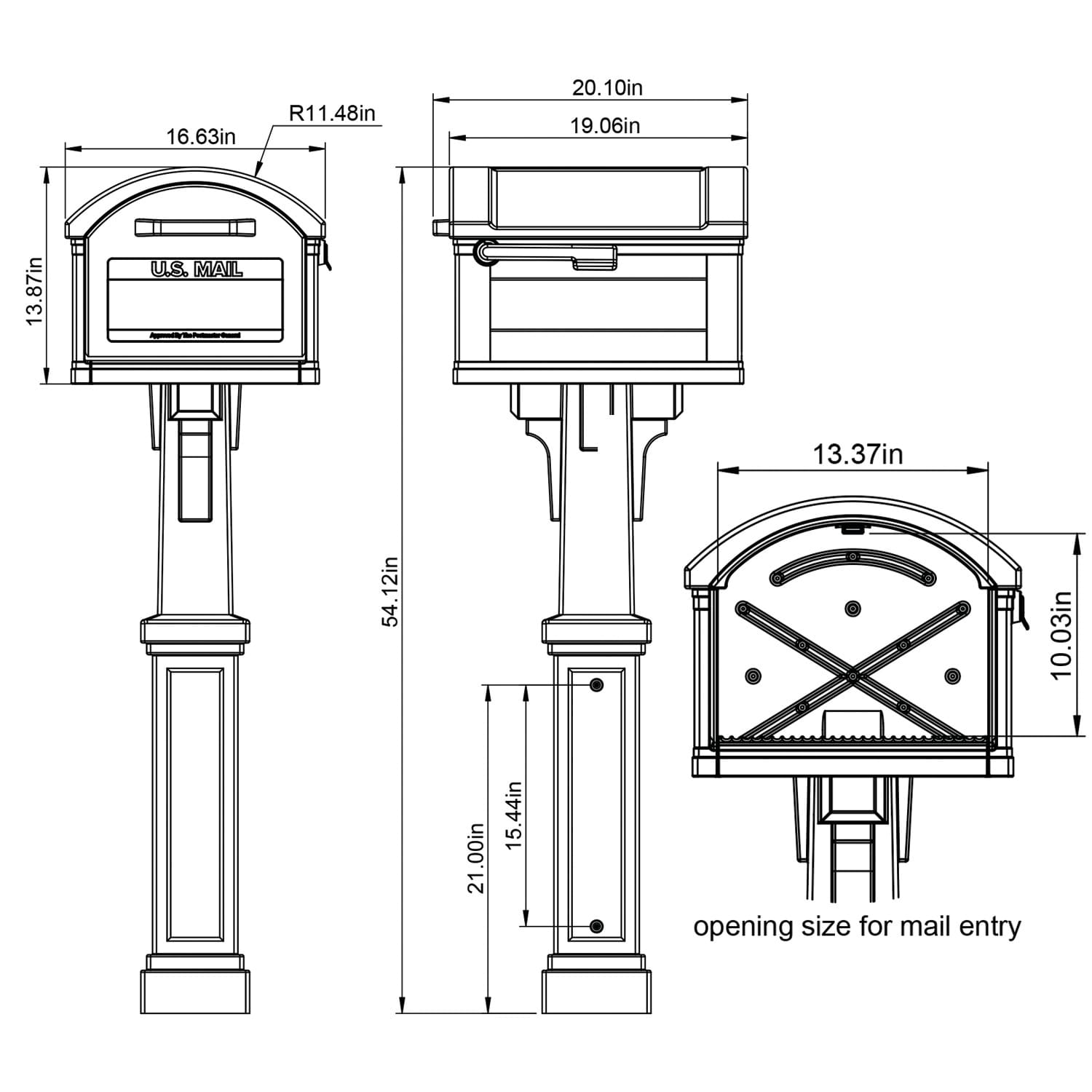Package Contents: Mailbox, slip-over post, and mounting hardware