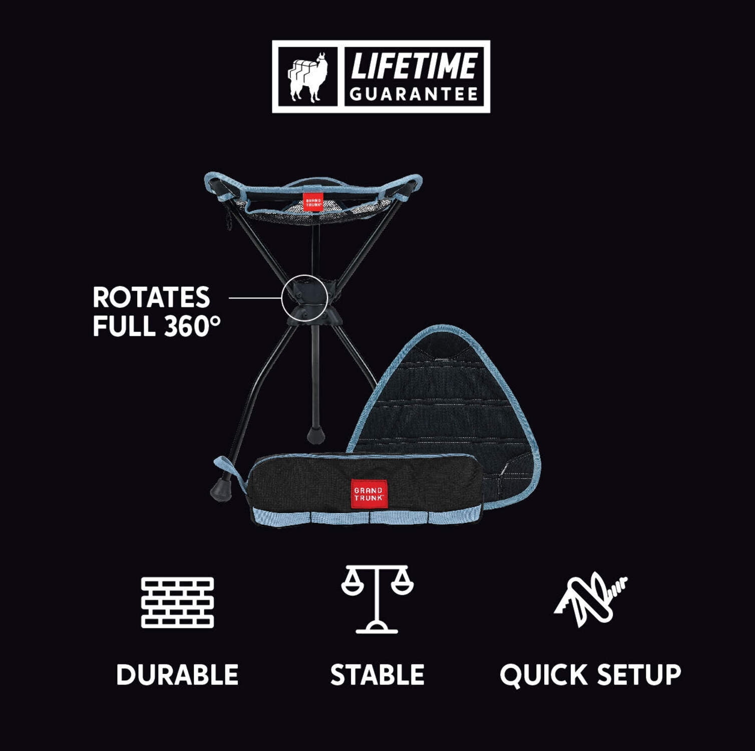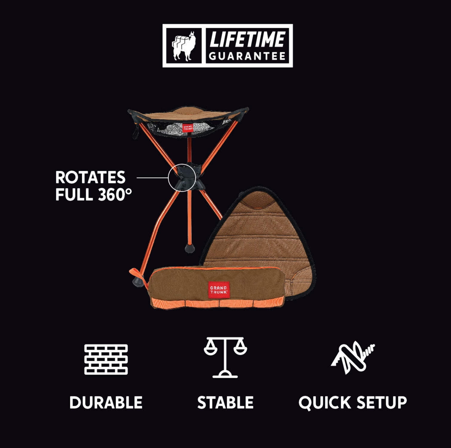 Grand Trunk Compass XT Chair – Extra-Tall 360° Swivel Stool, 20″ Seat Height, 260 lb Capacity, Lightweight & Packable for Camping, Fishing & Outdoor Use