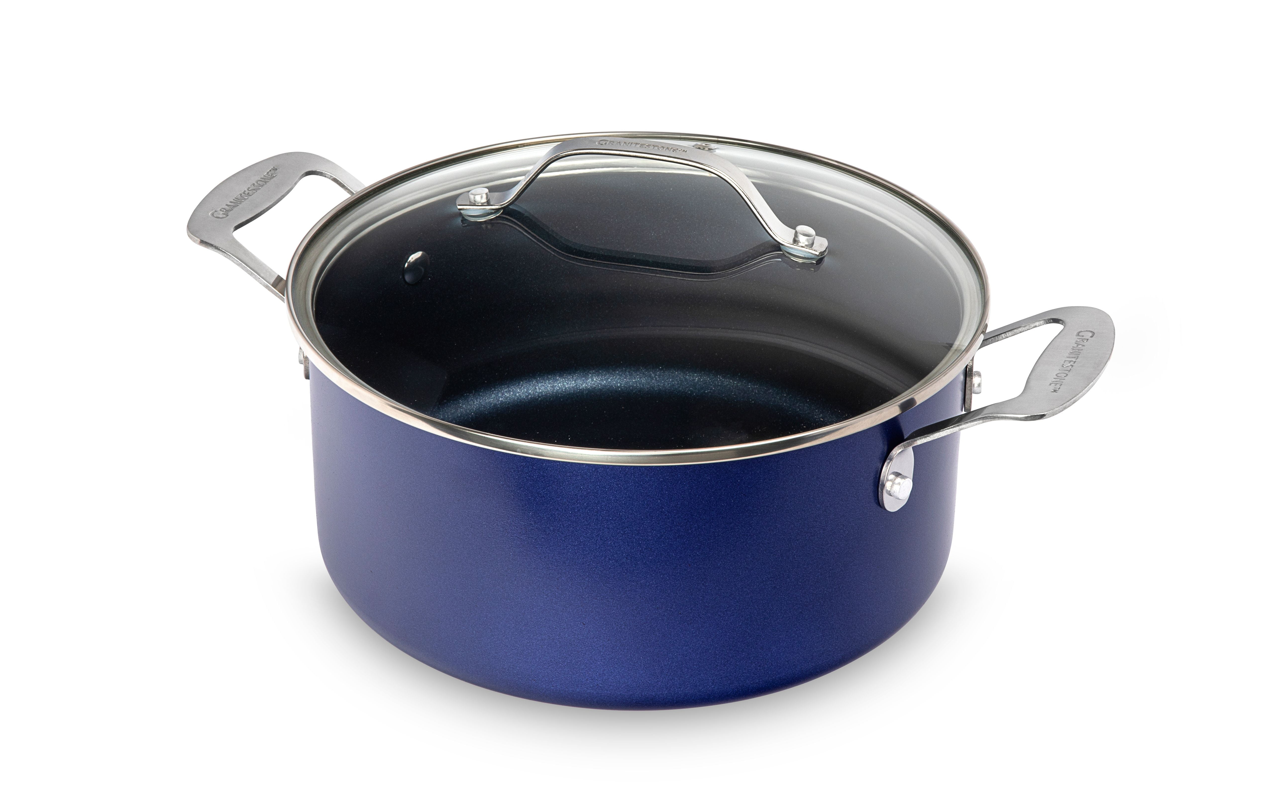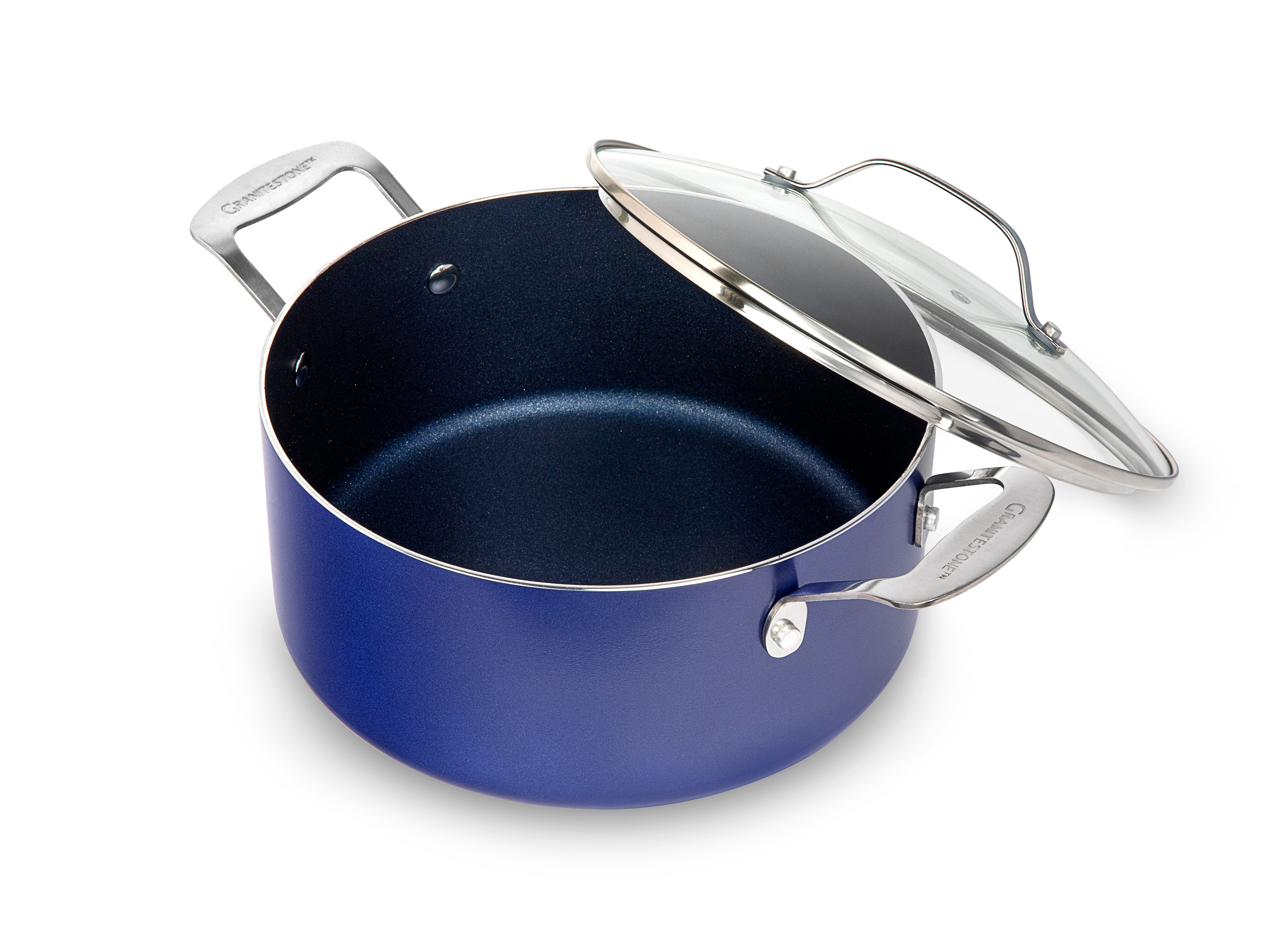 Granite Stone Diamond 5 Quart. Aluminum Ultra-Durable Non-Stick Diamond Infused Stock pot with Glass Lid, Classic Blue