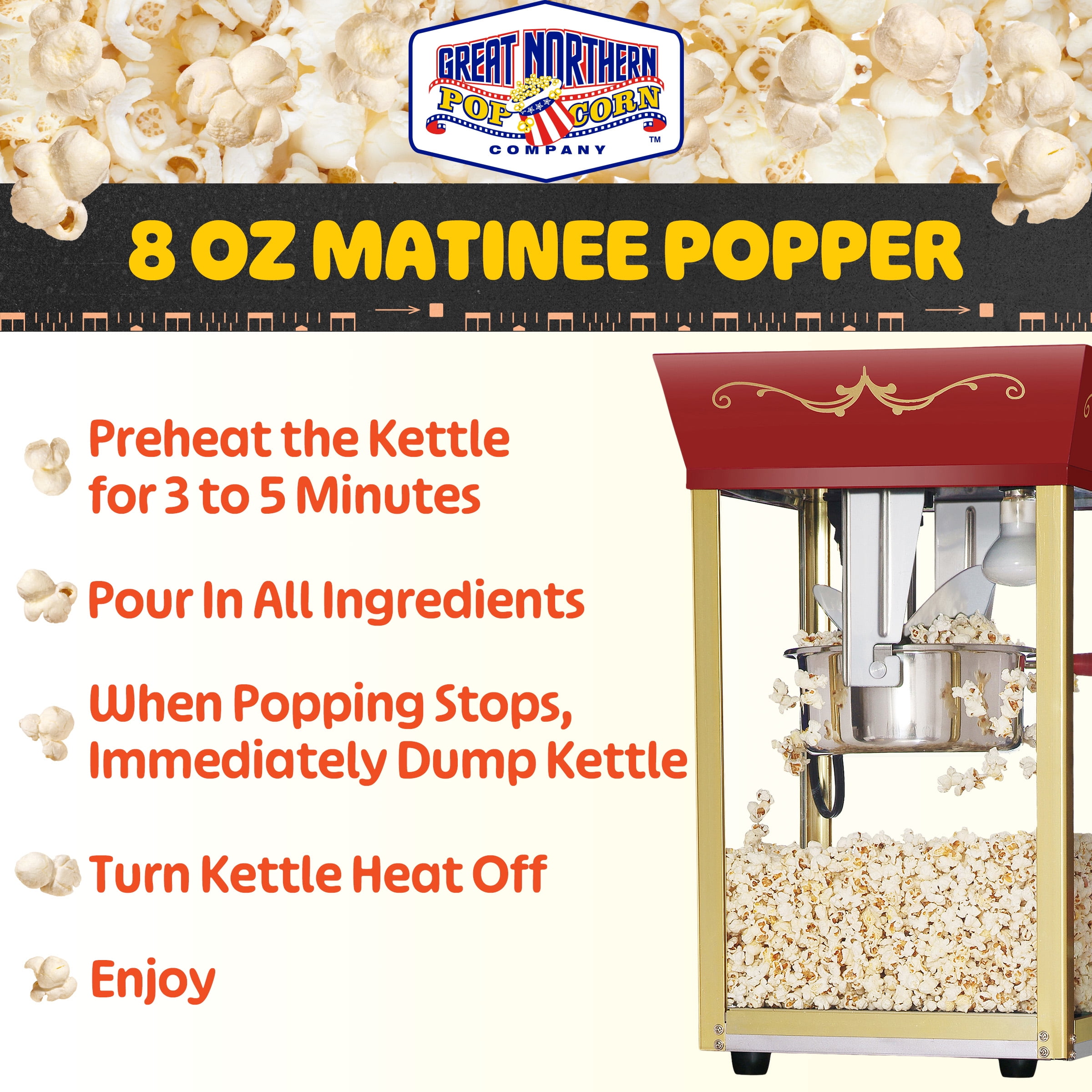 Great Northern Popcorn 8oz Matinee Popcorn Machine with Accessories, Red
