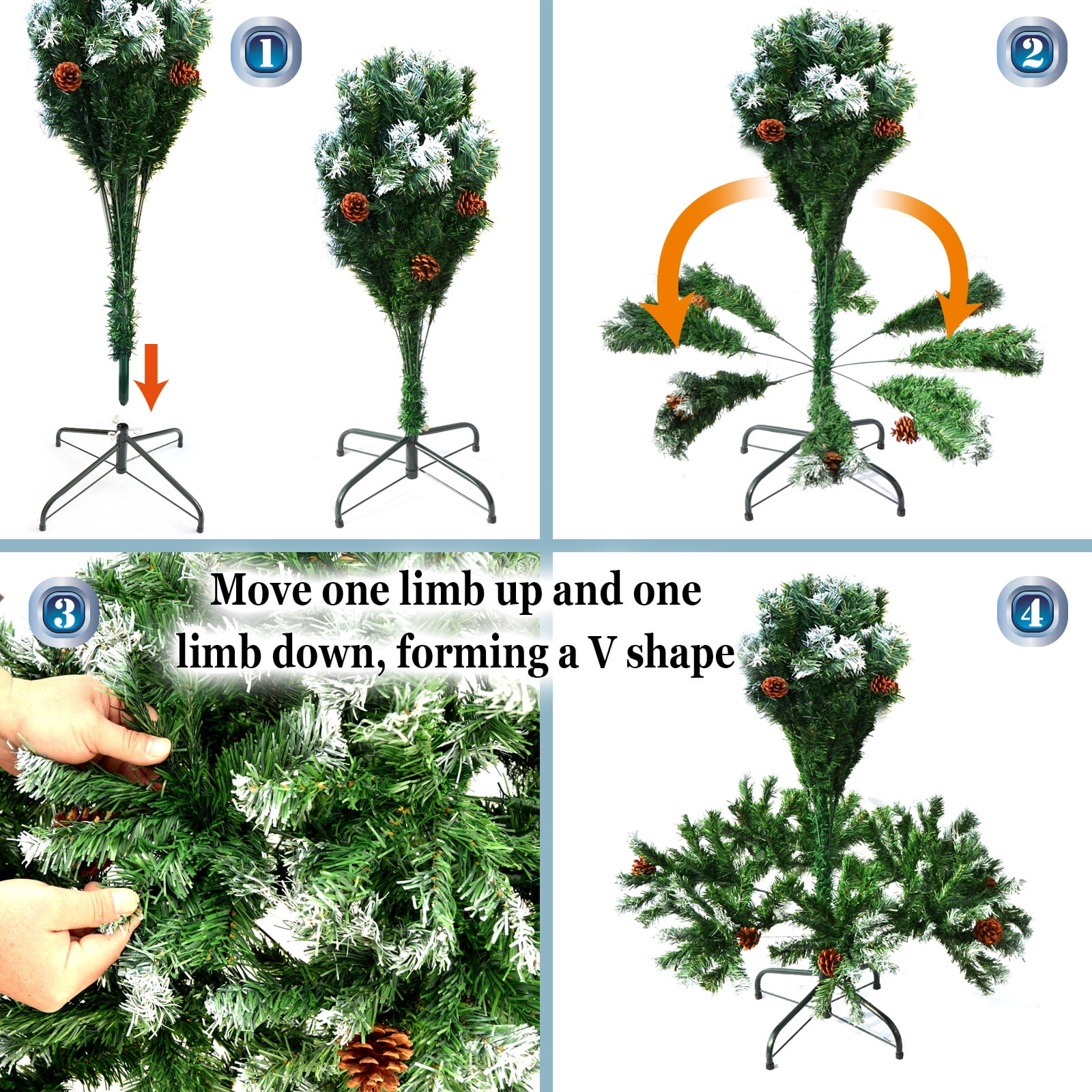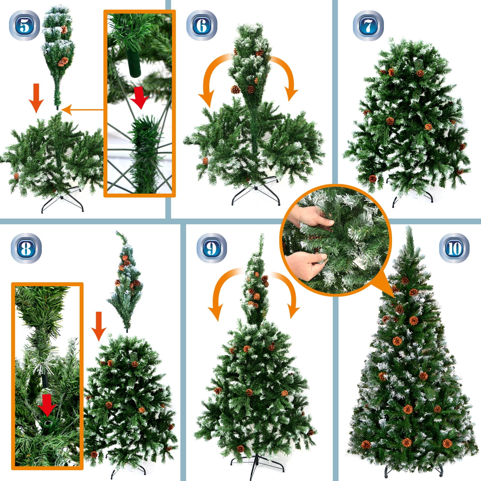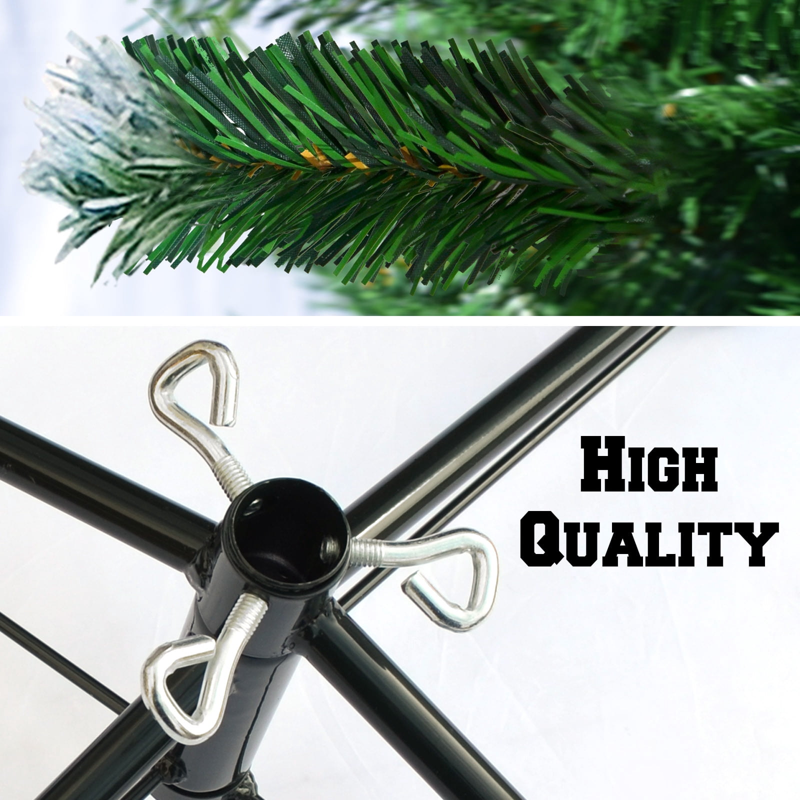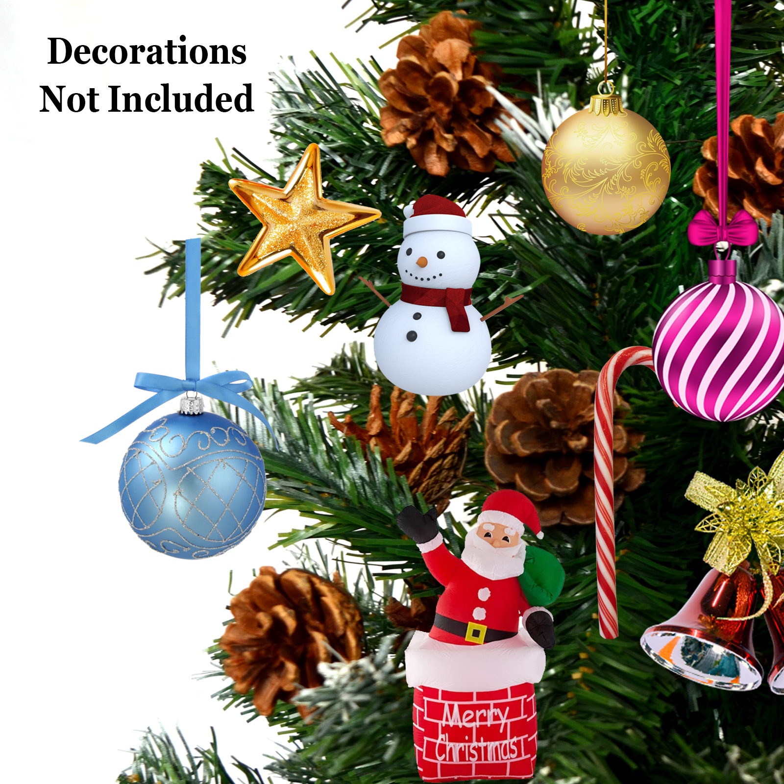 Green 7′ Snow Tipped Christmas Tree with pinecones Artificial Realistic Natural Branches -Unlit With Steel Stand (7′ with 1000 Tips and 38 pinecones)