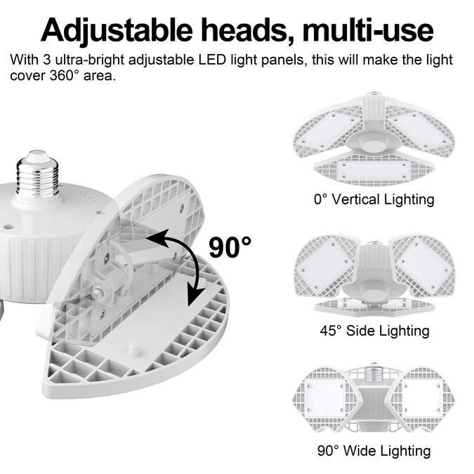 - The three LED blades are flexible and unique wing design can be adjusted to fold up to 90°; 360° full coverage