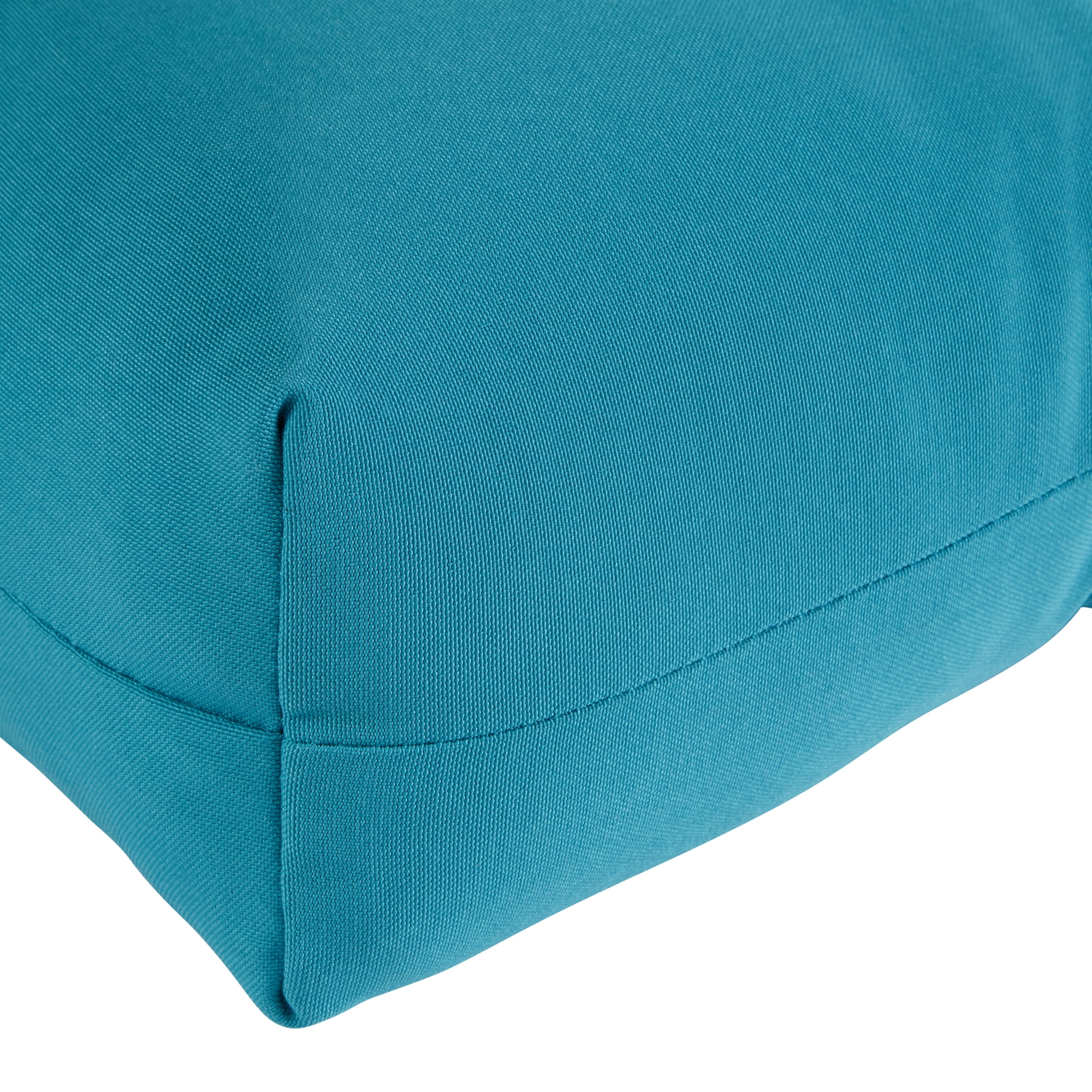 Includes one 72 x 22 in. outdoor chaise lounge cushion Bright solid shade of teal Traditional tufted design Made from durable outdoor 100% polyester fabric Water, stain, fade and mildew resistant Soft polyfiber fill made from 100% recycled, post-consumer plastic bottles Plush, overstuffed construction for extra comfort and longevity For best results, and to extend the life of your cushions store covered when not in use Cushion dimensions can be +/- 2 inches. Please note product will arrive in a slightly compressed state; please allow a few days for product to expand to final size listed in description