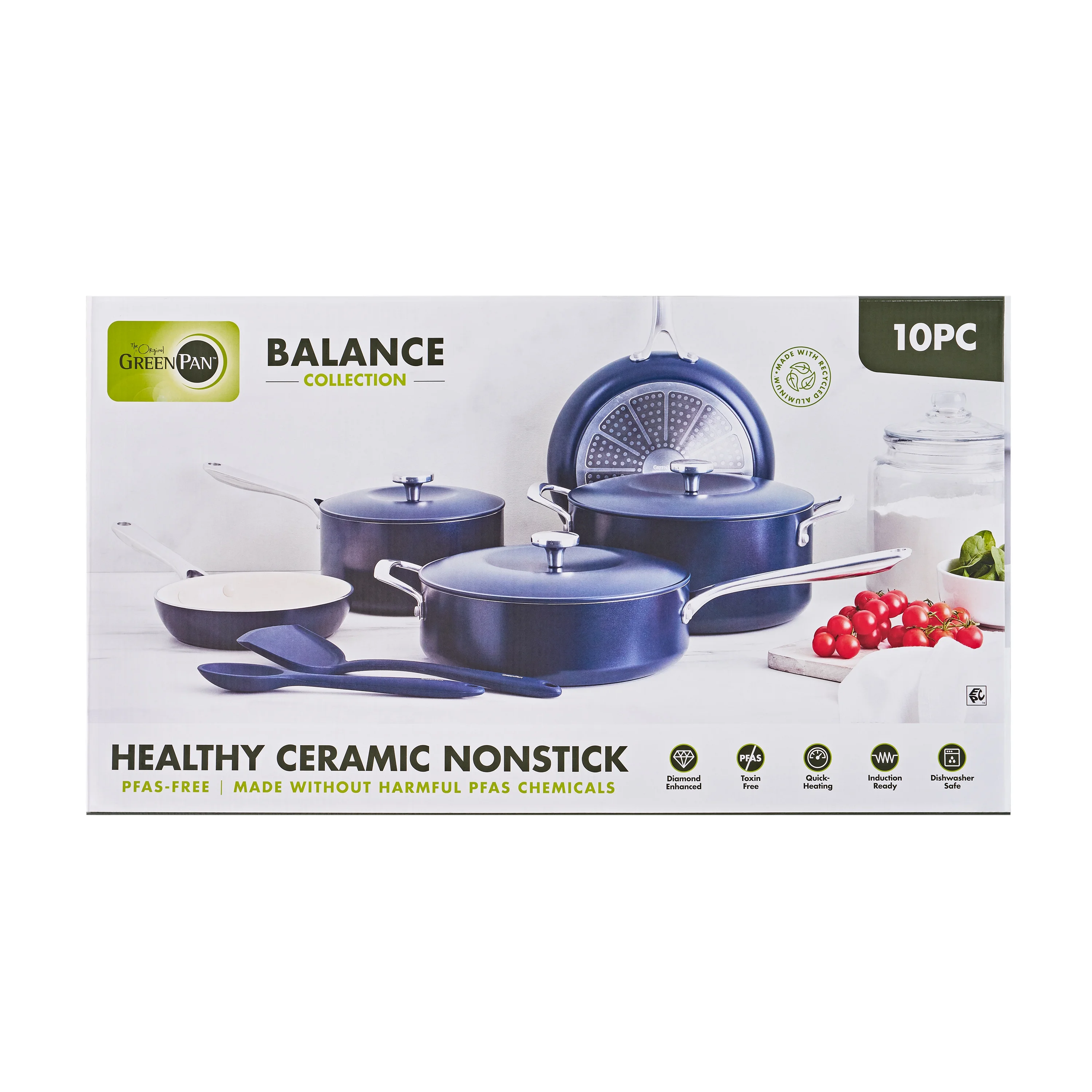GreenPan Balance 10-Piece Ceramic Nonstick Cookware – Toxin-Free, Dishwasher & Oven Safe, Oxford Blue