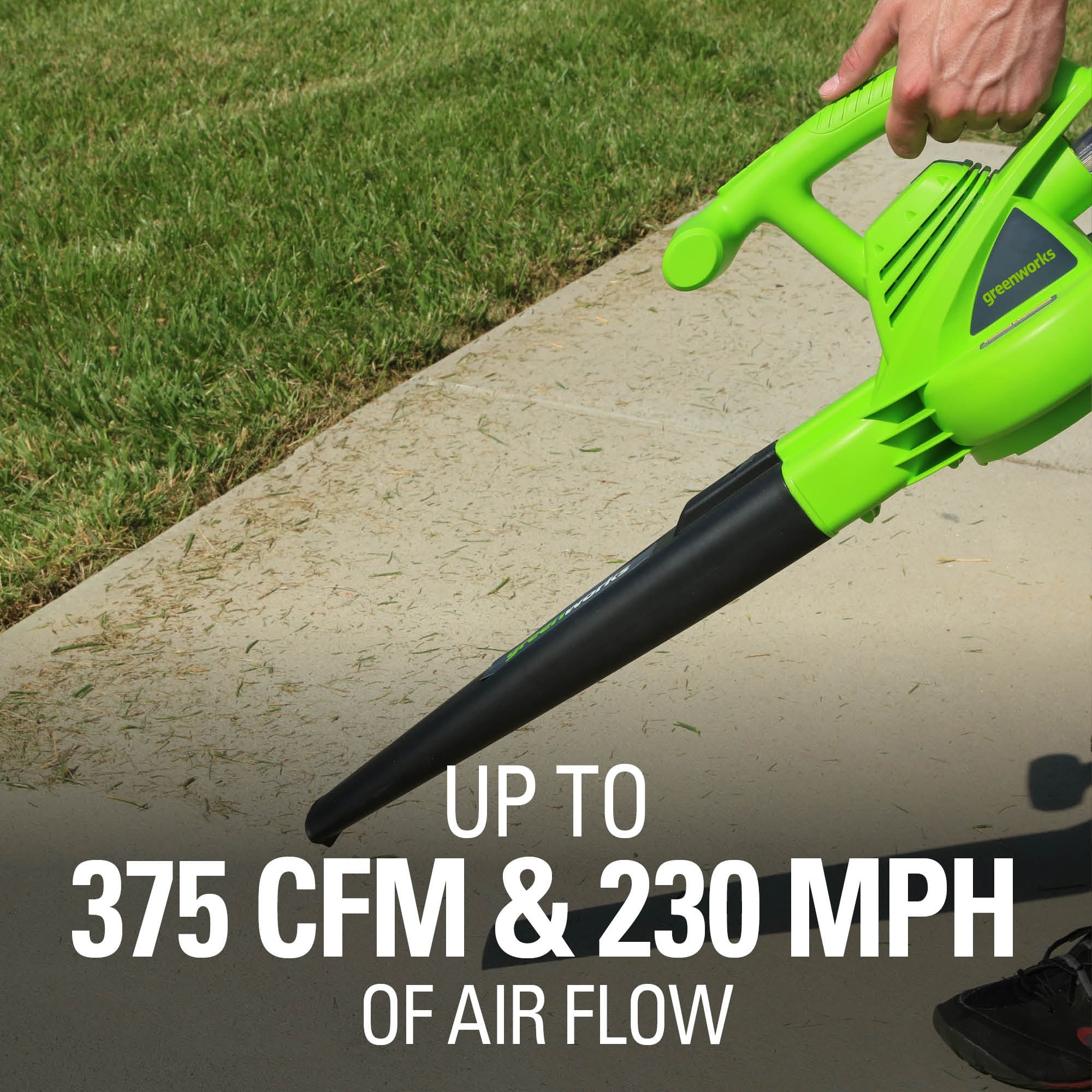 Greenworks 12 Amp 375 CFM at 230 Mph Corded Electric Leaf Blower/Mulcher/Vacuum 24022