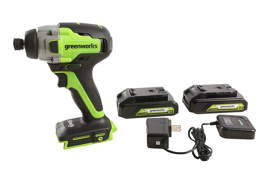 - Product Name: 24-Volt Cordless Brushless 1/4″ Impact Driver (2 x 1.5Ah USB Batteries and Charger Included)