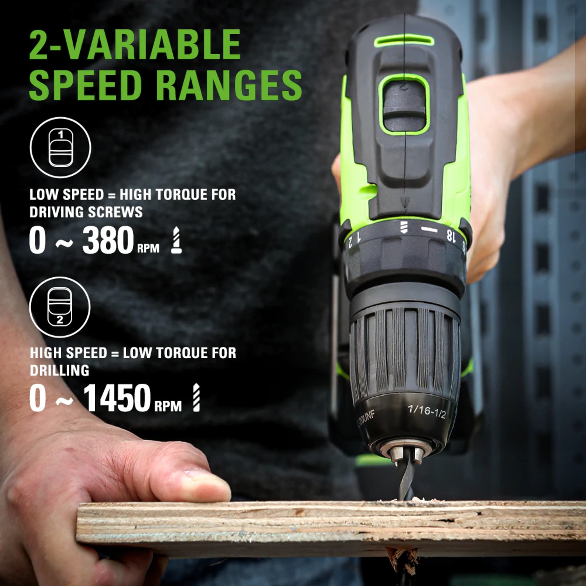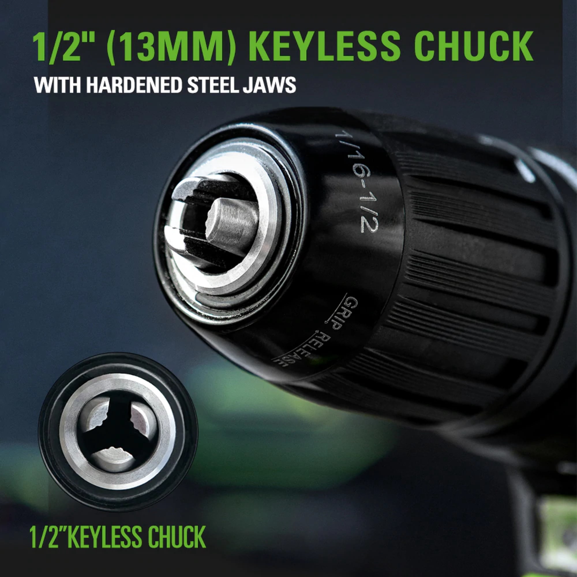 New Greenworks 24V Brushless 1/2″ 310 in./lb. Drill/Driver: 18+1 Position Clutch allows for precise control in drilling holes and fastening in a variety of materials with different clutch settings 2 Variable Speeds (0-450 RPM / 0-1450RPM) 1/2″ Keyless Chuck & 310 In-lb. /35Nm Torque: Provides tighter retention and quicker replacement for bits while the 310 In-lb. torque is perfect for working on different projects Premium Brushless Motor: You get more power, cooler operation at high speeds, enhanced battery runtime and longer service life