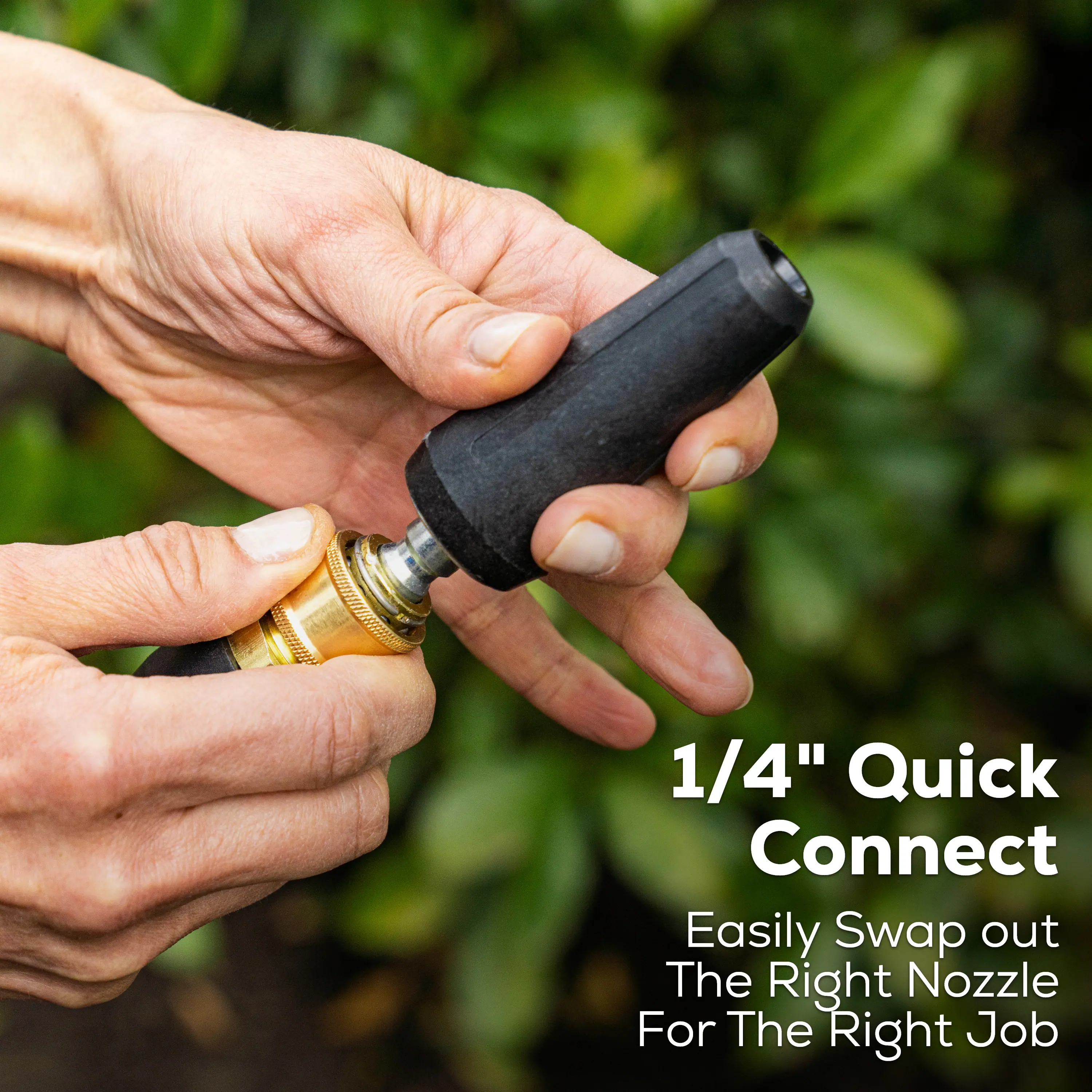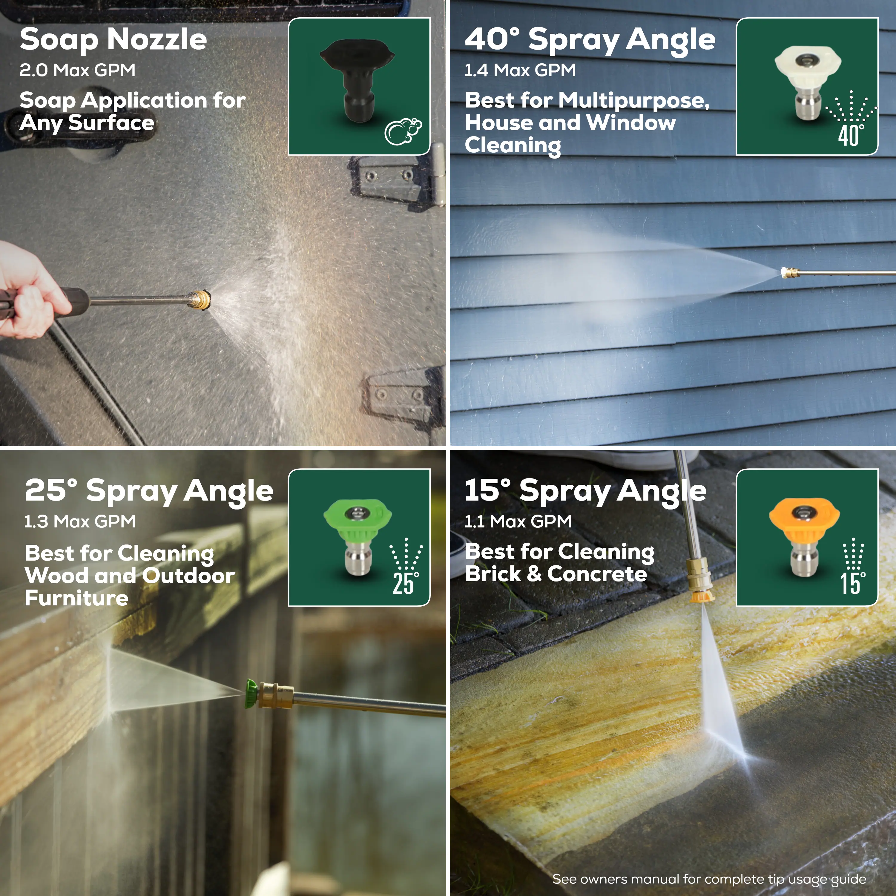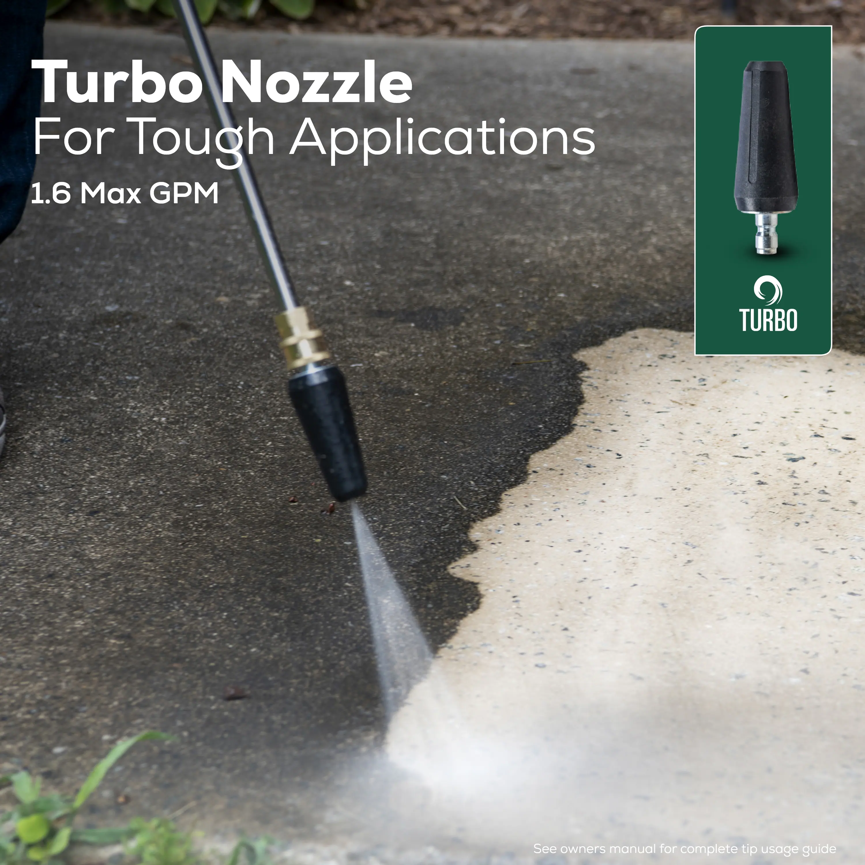 With up to 3,000 PSI at 2.0 max GPM, the Greenworks GPW3000V pressure washer is the most powerful residential electric pressure washer available. With a powerful 14-amp TRUBRUSHLESS motor, axial cam pump, and hassle-free, push-button starts, you’ll get to work fast; just plug the 35-foot power cord into any typical exterior household outlet for quick starts with no priming, no choke, and no pull cord. This quiet-running, lightweight, and compact pressure washer is easy to store and features a rugged steel frame design. It includes a thermal relief valve that purges hot water from the pump to cool it down during constant use, and intelligent PCBA technology that automatically senses which nozzle is being used, adjusting motor speeds to provide maximum cleaning power with more pressure and water flow. Equipped with a 25-foot, non-marring, high-pressure hose, detergent hose that siphons soap, and on-board accessory storage for 15-, 25-, and 40-degree nozzles, as well as turbo and soap nozzle tips, this unit is versatile, portable, and powerful.