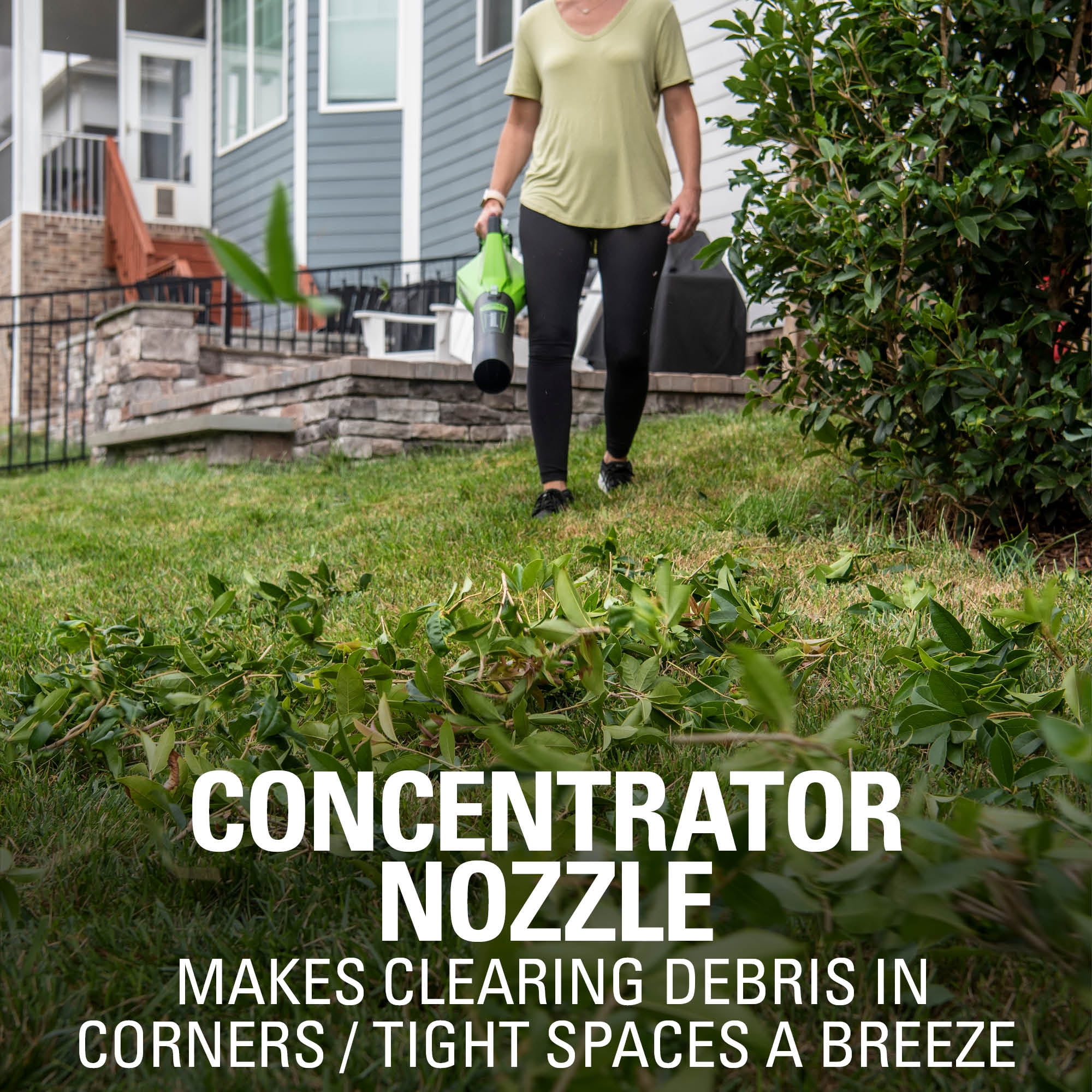 Cordless outdoor power tools are ideal for homeowners like you who are simplifying and focusing on what’s essential to getting the most out of life. Introducing the Greenworks 40V 450 CFM Leaf Blower with 2.5Ah Battery & Charger, the ultimate solution for keeping your lawn leaf-free and pristine. With its variable speed trigger, this leaf blower delivers wind speeds of up to 120 MPH and generates 450 CFM, making it easy to effectively blow away leaves from your lawn. Equipped with Intelligent Brushless Motor Technology, this leaf blower provides two times more torque, resulting in more power, longer runtimes, quiet operation, and extended motor life. Say goodbye to the hassle of pull-starting, as this blower features a convenient push-button start for effortless operation. To further enhance user convenience and ensure precise speed control, the Greenworks Leaf Blower comes with cruise control functionality. Simply set your desired speed and let the blower do the work for you. What’s more, the Greenworks 40V Leaf Blower is compatible with the Greenworks 40V Li-ion system, which means higher efficiency and longer runtime. Easily swap batteries and power an assortment of tools to complete all your yard work seamlessly. With the purchase of the Greenworks 40V 450 CFM Leaf Blower, you’ll receive a 2.5Ah battery and charger, ensuring you have everything you need to get started right away. And to give you peace of mind, this product is backed by a 3-year limited tool and battery warranty. Experience the power, convenience, and durability of the Greenworks 40V 450 CFM Leaf Blower, revolutionizing the way you tackle leaf cleanup in your yard.