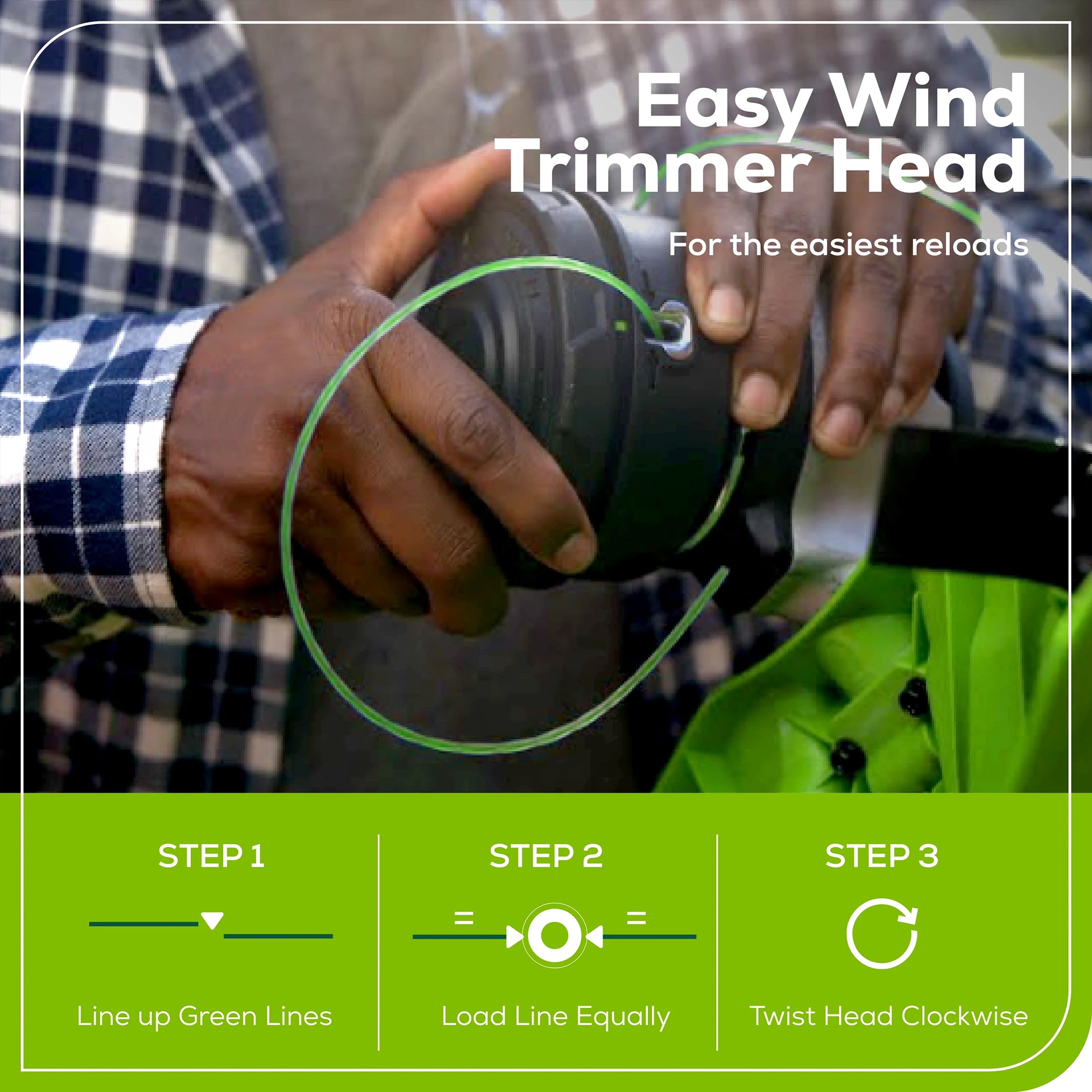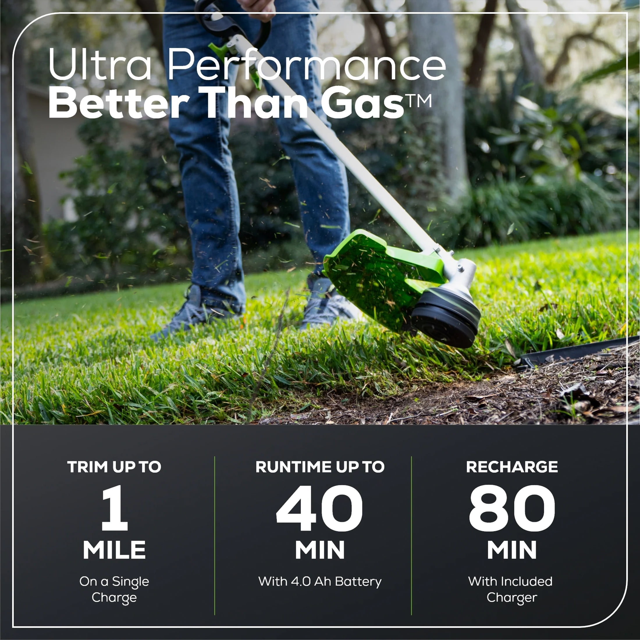 New Greenworks 60V 16″ Cordless Battery String Trimmer (Attachment Capable): Offers incredible power and performance Advanced brushless motor technology for torque Battery fits all Greenworks 60V tools for versatility Includes (1) 60V 4 Ah battery and charger Trigger-start for convenience Limited four year warranty for purchase security Light and comfortable for easy operation Easy reloading for convenience Spiral twist line for thick weeds Accepts most string trimmer attachments for customization