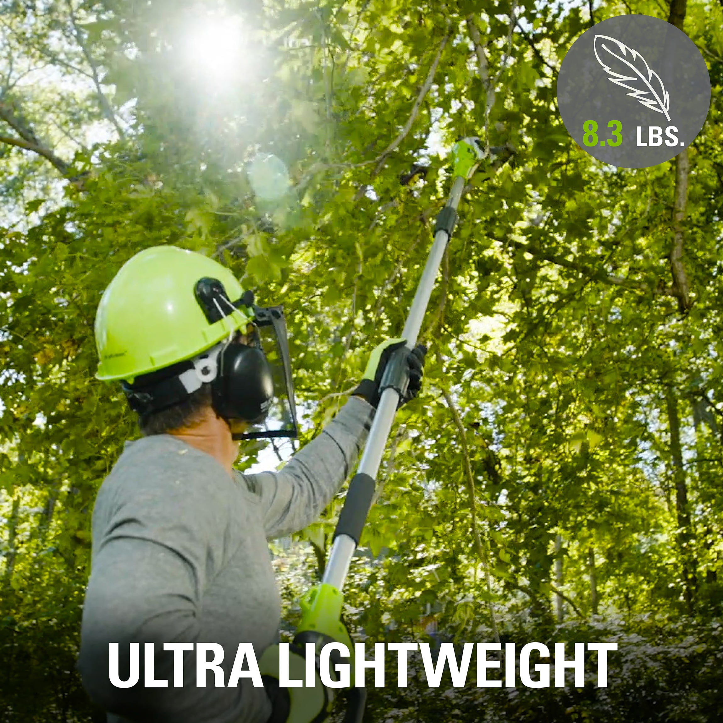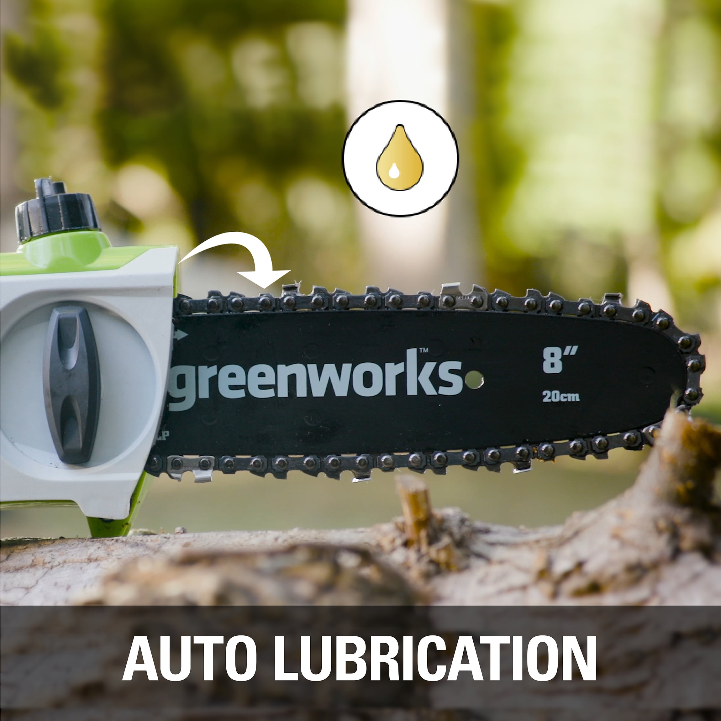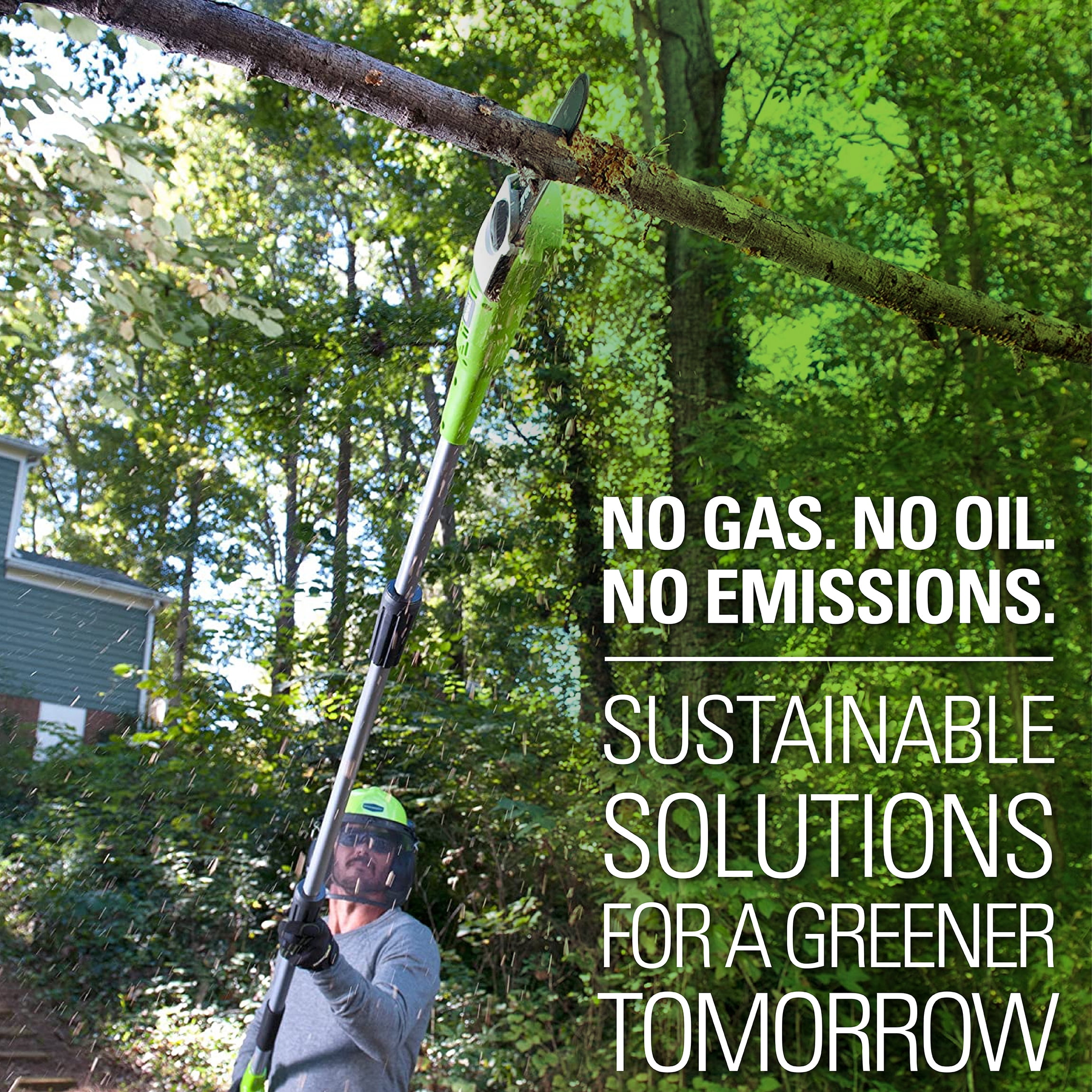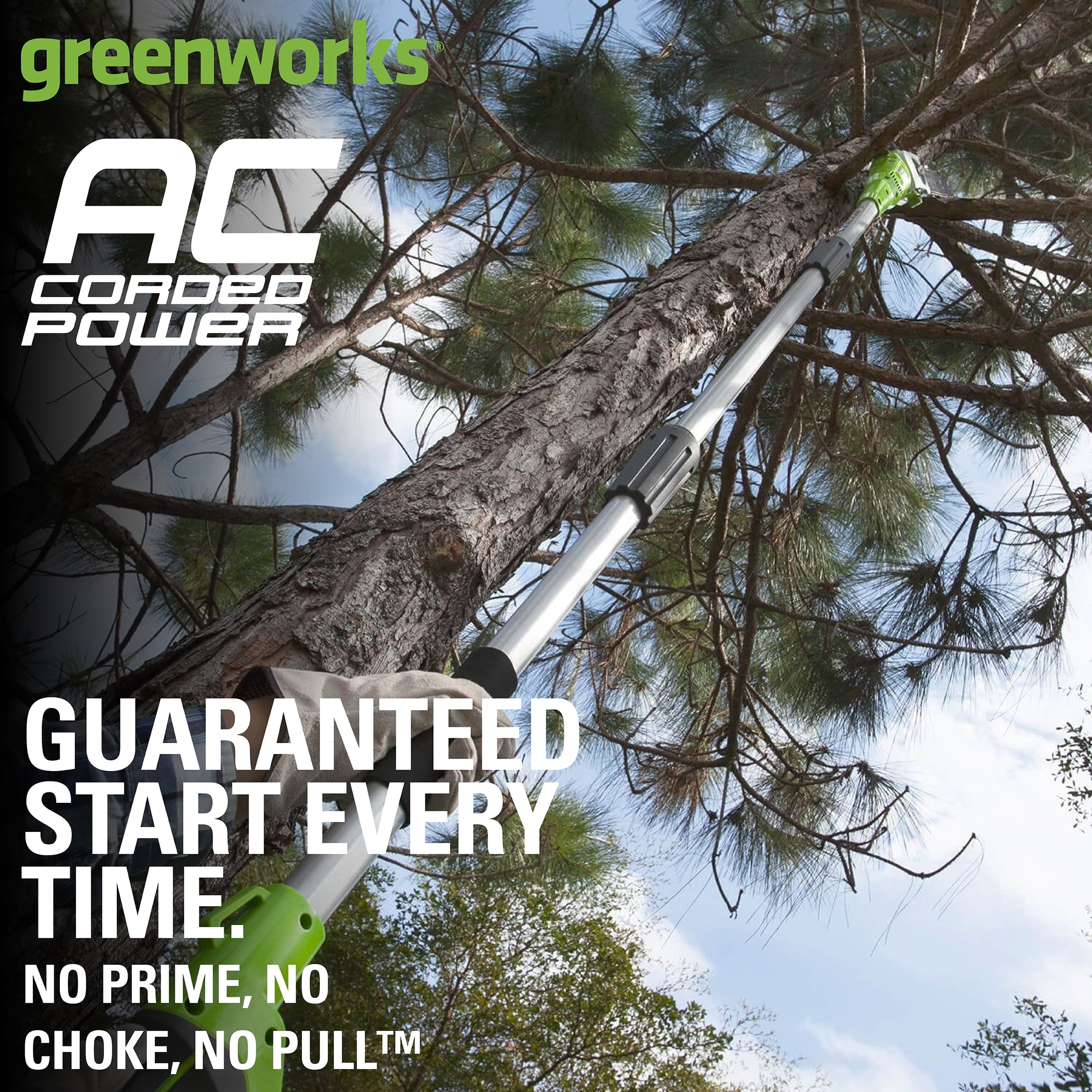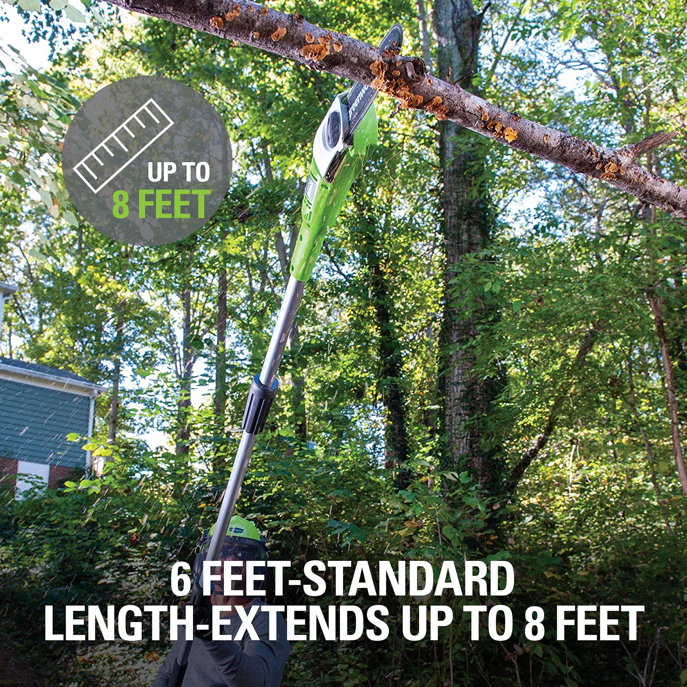 New Greenworks 6.5 Amp 8-Inch Corded Electric Pole Saw: 6.5 Amp electric motor starts within seconds and gets the job done 8-inch bar and chain for trimming down limbs in hard-to-reach areas