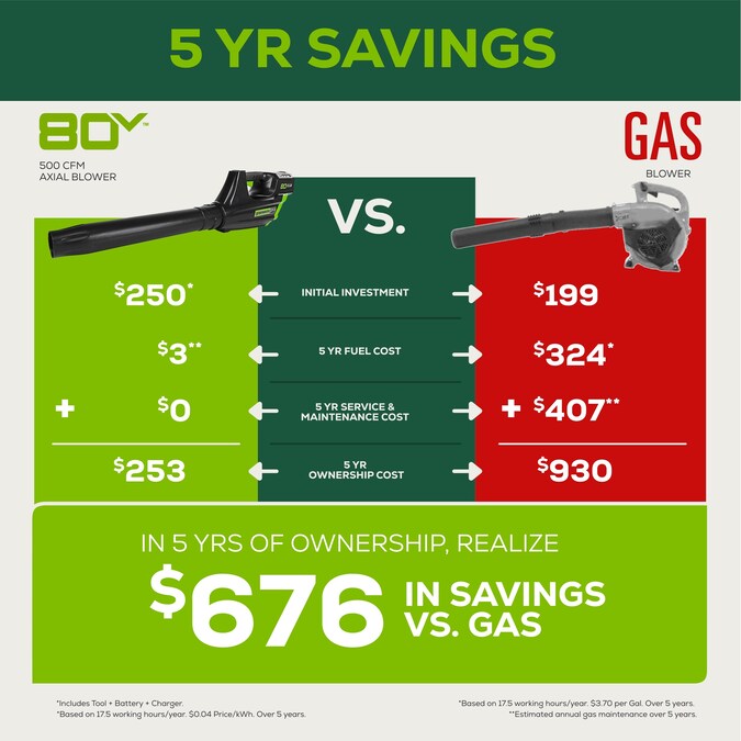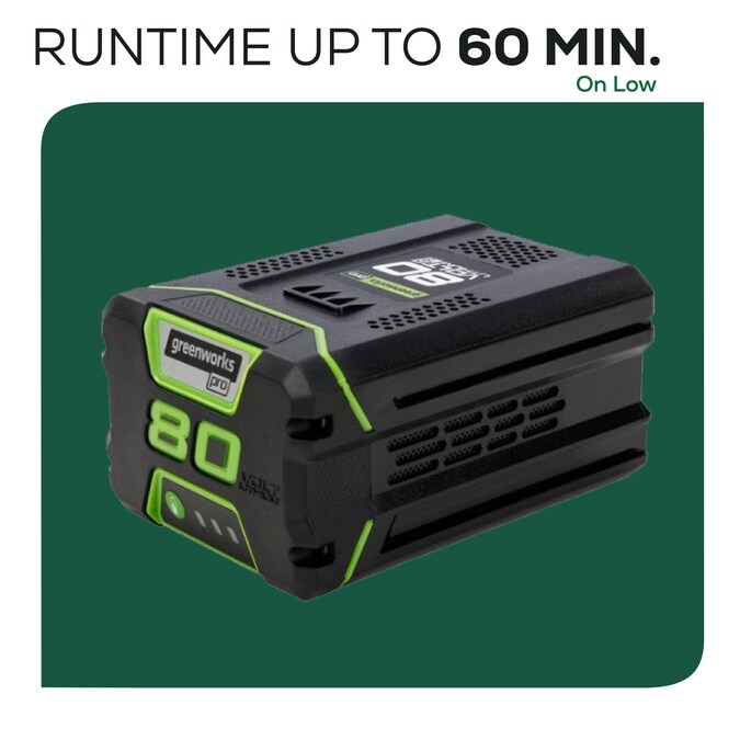 - Runtime: 60 minutes on low settings with our 80V Max 2.0Ah battery and 30-minute charge time (battery and charger included)