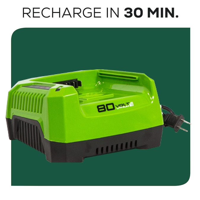 - Includes: (1) 2.0Ah 80V battery and (1) rapid charger