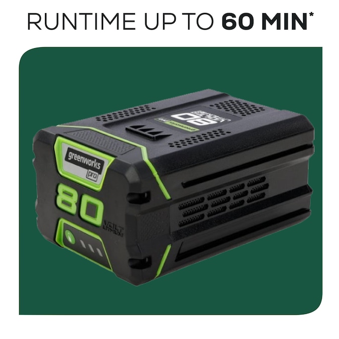 - Runtime: Up to 60 minutes on a single charge of the included 2.0Ah 80V battery