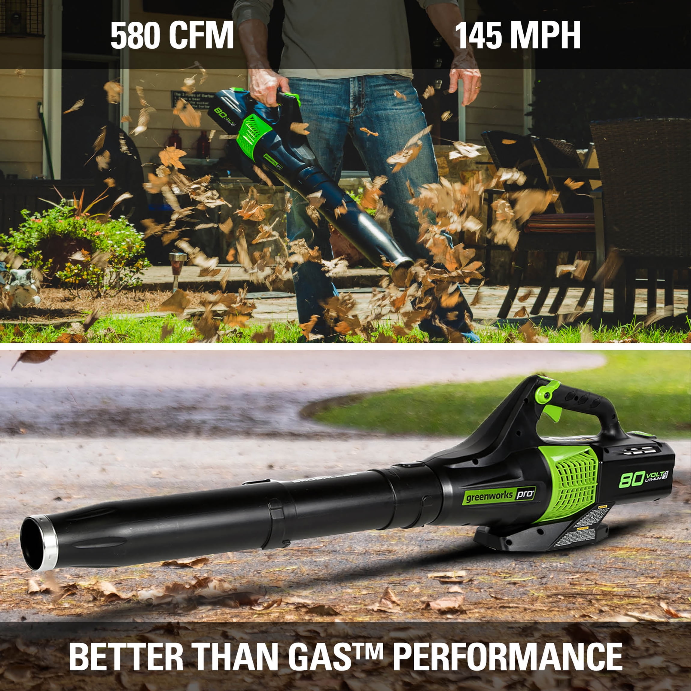 Greenworks 80V 580 Cfm at 145 Mph Brushless Leaf Blower with 2.5 Ah Battery & Charger 2404602