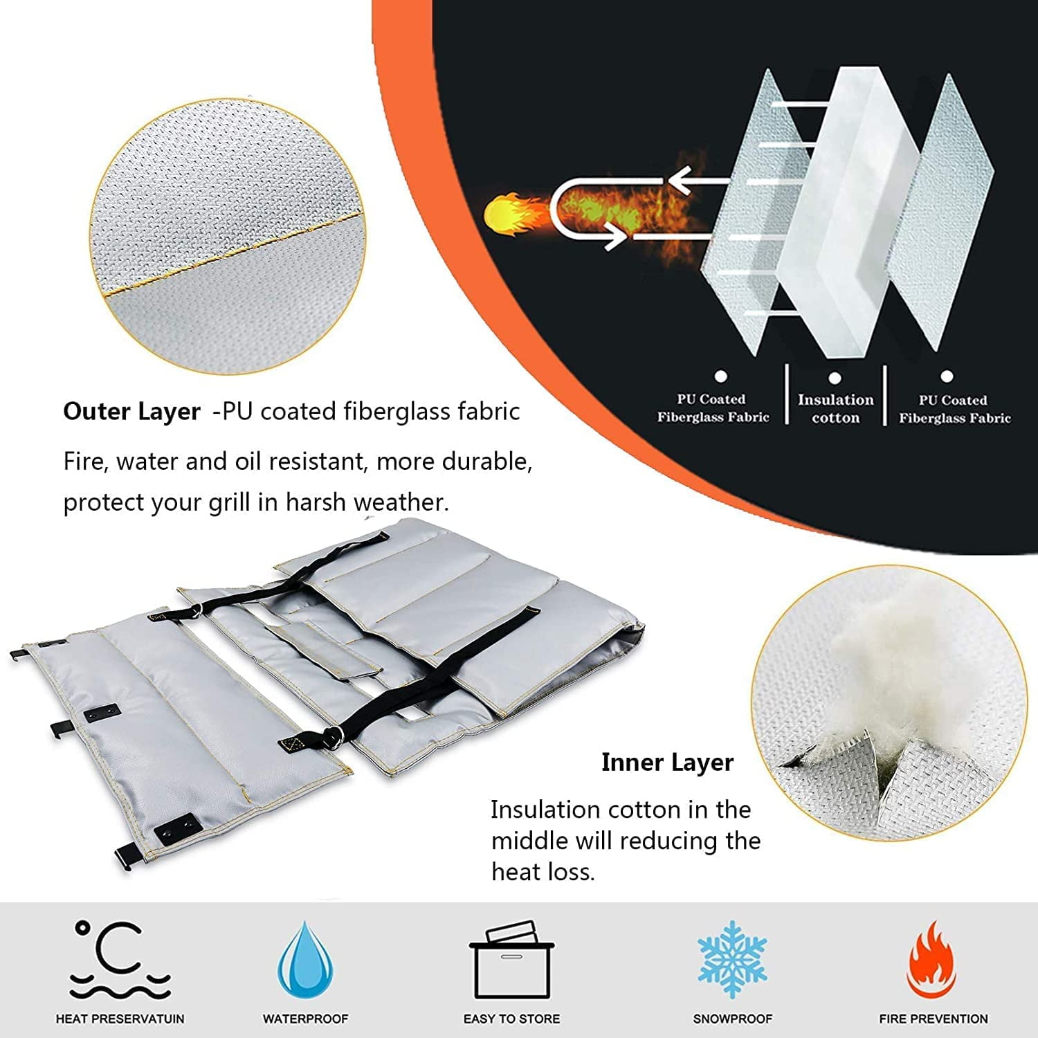 Compatible Model – The insulation blanket compare to Lil’ Tex Insulation Blanket – BAC344, Assembled size: 24″L x 22.5″D. Compatible with Traeger Wood Pellet Grill and Smoker, Traeger Pro 22 Series and the Lil’ Tex Elite, also fits other grill with 22- 24″ wide chamber, also fits the Trager Pro 20. Please check your grill model and size before purchasing. Fire-Resistant Insulation Blanket-The blanket combining three fire resistant material, the fiberglass fabric is fire, water and oil resistant, more durable, protect your grill in harsh weather. Reach Higher Temperatures Quickly- The PU coated fiberglass fabric will reflect grill heat while the middle insulation cotton will reducing the heat loss, help blanket store the most of the heat inside your grill chamber, help grill reach ideal temperature efficiently, minimize heat loss so that you use fewer pellets and fuel. Convenient to Put On- Hooks is to hang in the edge of the grill, featured magnets and mounting holes to provide a sure hold in the proper position. Metal rings and completely wraps around the main hood and grill body for a total security. Warm Tip – Our Traeger Pro 22 compatible insulation blankets allow you to grill all year round. Not recommended for use in outdoor if the outside temperature exceeds 40F.