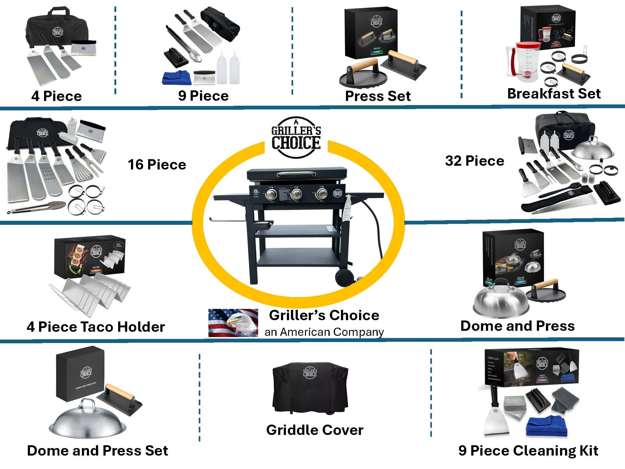 Unleash your inner chef with the Griller’s Choice Gas Griddle Flattop Grill, the ultimate companion for outdoor cooking enthusiasts. Transform your backyard into a top-tier outdoor kitchen with this versatile, durable, and meticulously designed propane griddle with lid. Whether you’re a seasoned chef or a beginner, this grill is engineered to fulfill all your outdoor cooking dreams. The Griller’s Choice gas griddle is equipped with a strong steel cook surface that ensures even cooking and maximum durability. This flattop grill offers precision heat control, allowing you to master the art of grilling with ease. The hinged hood and included wind guards provide unmatched protection against the elements, ensuring that your grilling experience is uninterrupted by wind or rain. Our propane griddle outdoor station features four spacious shelves, offering ample storage for all your grilling essentials. The convenient paper towel holder and four tool hooks keep your workspace organized and efficient, allowing you to focus on the culinary masterpiece at hand. The front grease management system ensures easy cleaning, making maintenance a breeze. Experience the freedom of versatile cooking with the Griller’s Choice propane griddle outdoor. It’s perfect for everything from breakfast pancakes to savory dinners, accommodating any menu you can imagine. This outdoor flat top grill is not just a grill; it’s a statement of quality and performance, designed for those who demand the best in their outdoor cooking adventures. Ideal for camping trips or backyard barbecues, the portable propane griddle design ensures you can easily transport and set up your grill wherever the journey takes you. With its robust construction and unmatched functionality, the Griller’s Choice flattop grill is your ticket to outdoor cooking excellence. Don’t settle for anything less than the best. Elevate your grilling game with the Griller’s Choice Gas Griddle Flattop Grill. Whether for a weekend cookout or a family gathering, this grill is ready to impress and satisfy the taste buds of all your guests.