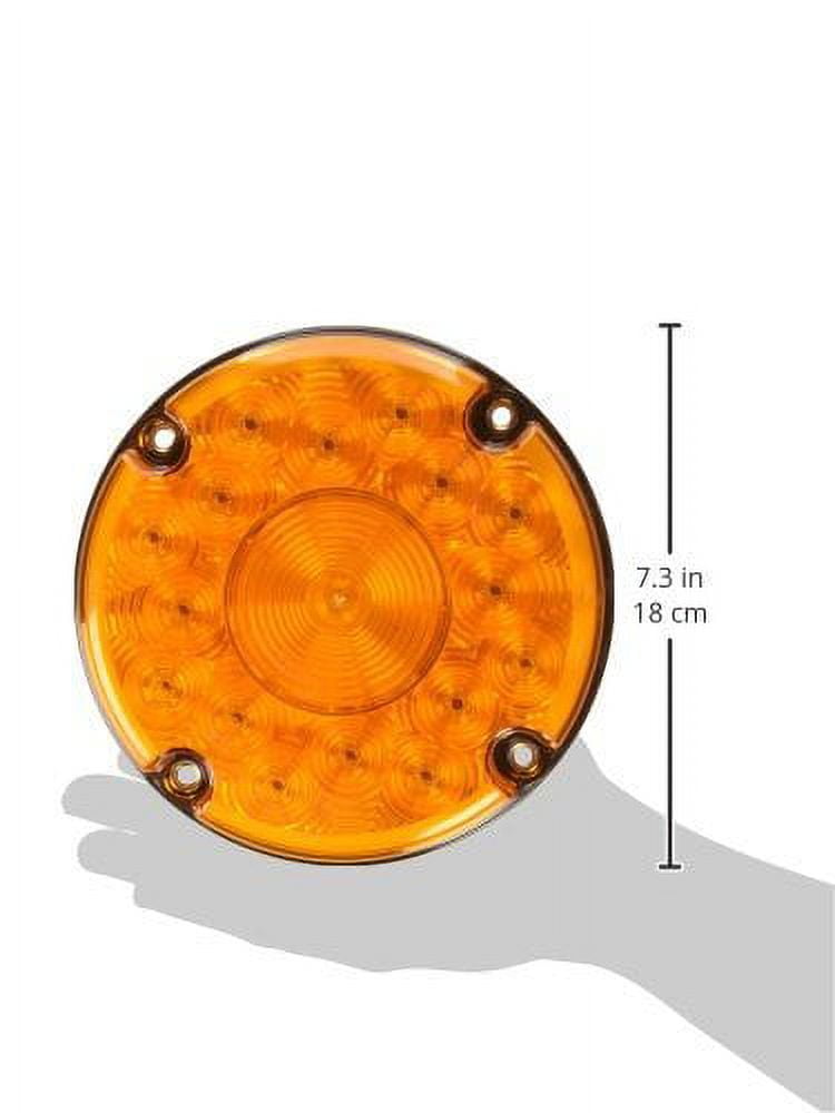 Stop-Turn-Tail Lamp, Diameter 7 In., Depth 1-3/8 In., Yellow, Shape Round, Lamp Type LED, 12 Volt Bulb, Material Polycarbonate, Current Rating .39A, Termination Type Hardwired w/ .180 bullet termination Features Manufacturer Warranty – Vehicle Lighting: 2 Year Warranty Lighting Technology – Vehicle Lighting: LED Number of LEDs: 16 Wiring Connection – Vehicle Lighting: Pigtail Mounting – Vehicle Lighting: Permanent Lens Shape – Vehicle Lighting: Round Standards: A, I Width – Vehicle Lighting: 1 3/8 in Sub-Category: Stop-Turn-Tail Lights Item: Stop/Turn/Tail Light Diameter – Vehicle Lighting: 7 in Lamp Type: Led Lens Color – Vehicle Lighting: Yellow