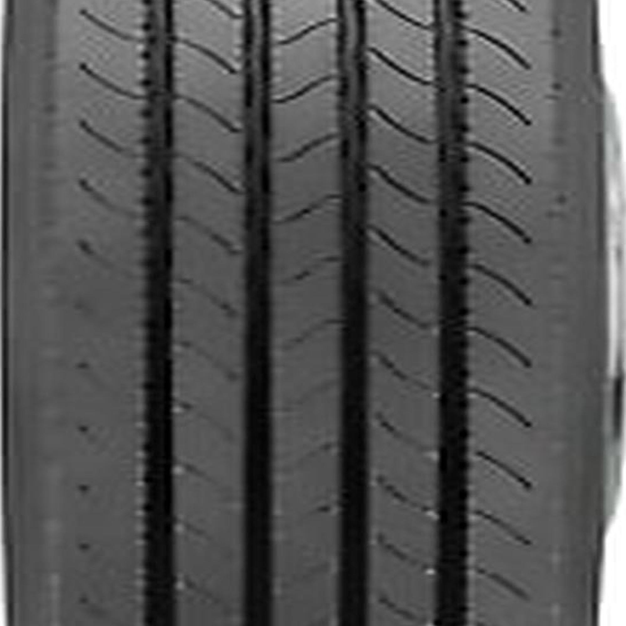 Designed for use on all positions of semi-trucks in on-highway applications Reinforced rubber compound guards the tire against cuts, chips, and abrasions Closed shoulders fend off uneven wear for a longer tread life High ply rating increases strength and durability for a higher load carrying capacity Four wide grooves drain water out of the tread to reduce the risk of hydroplaning on wet and slippery roads Size: 255/70R22.5 Load Range: H Product May Vary From Picture Wheel/Rim Not Included